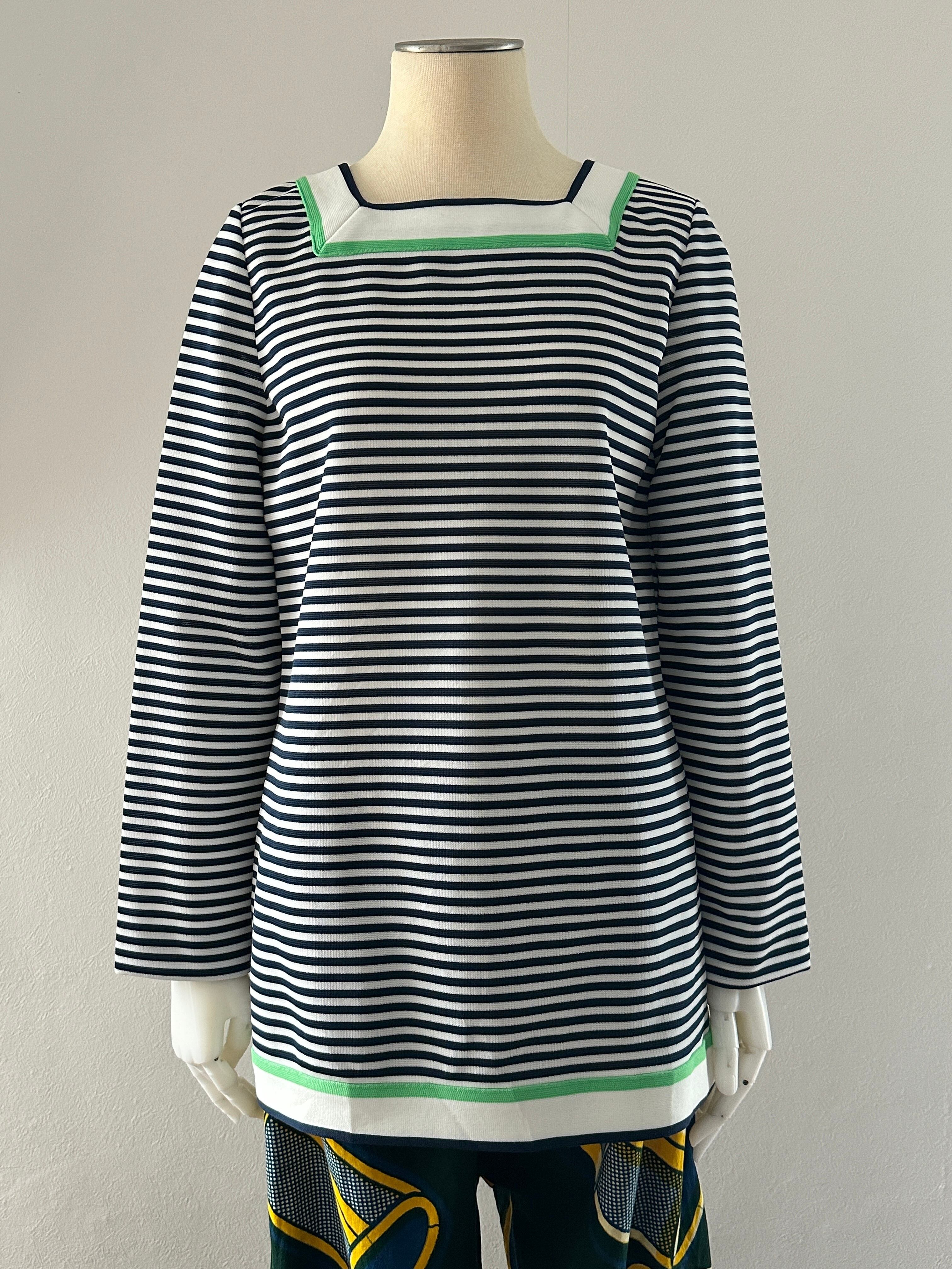 70's stripe polyester L/S tops