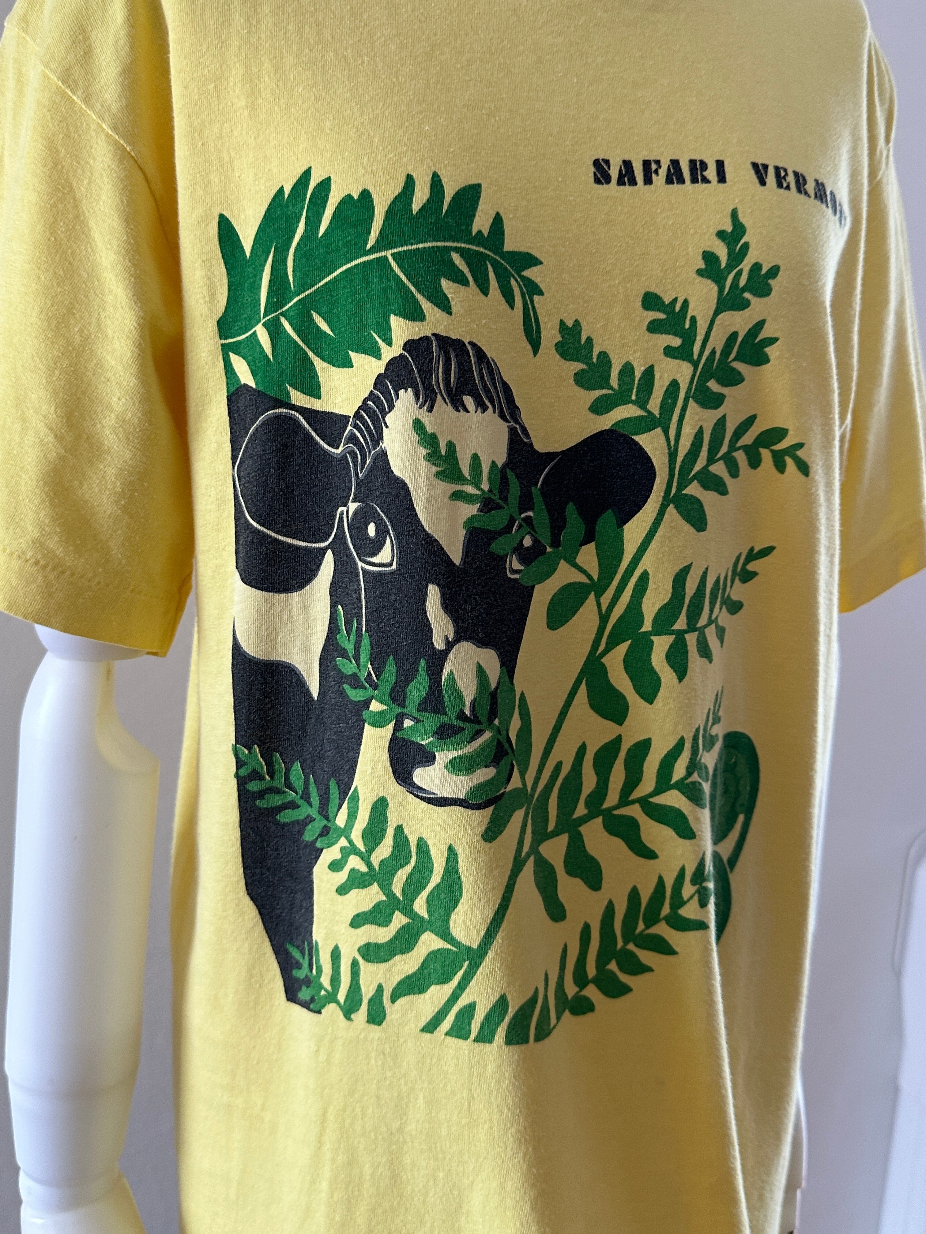 のんびり過ごしていそうな牛のプリントTシャツ。