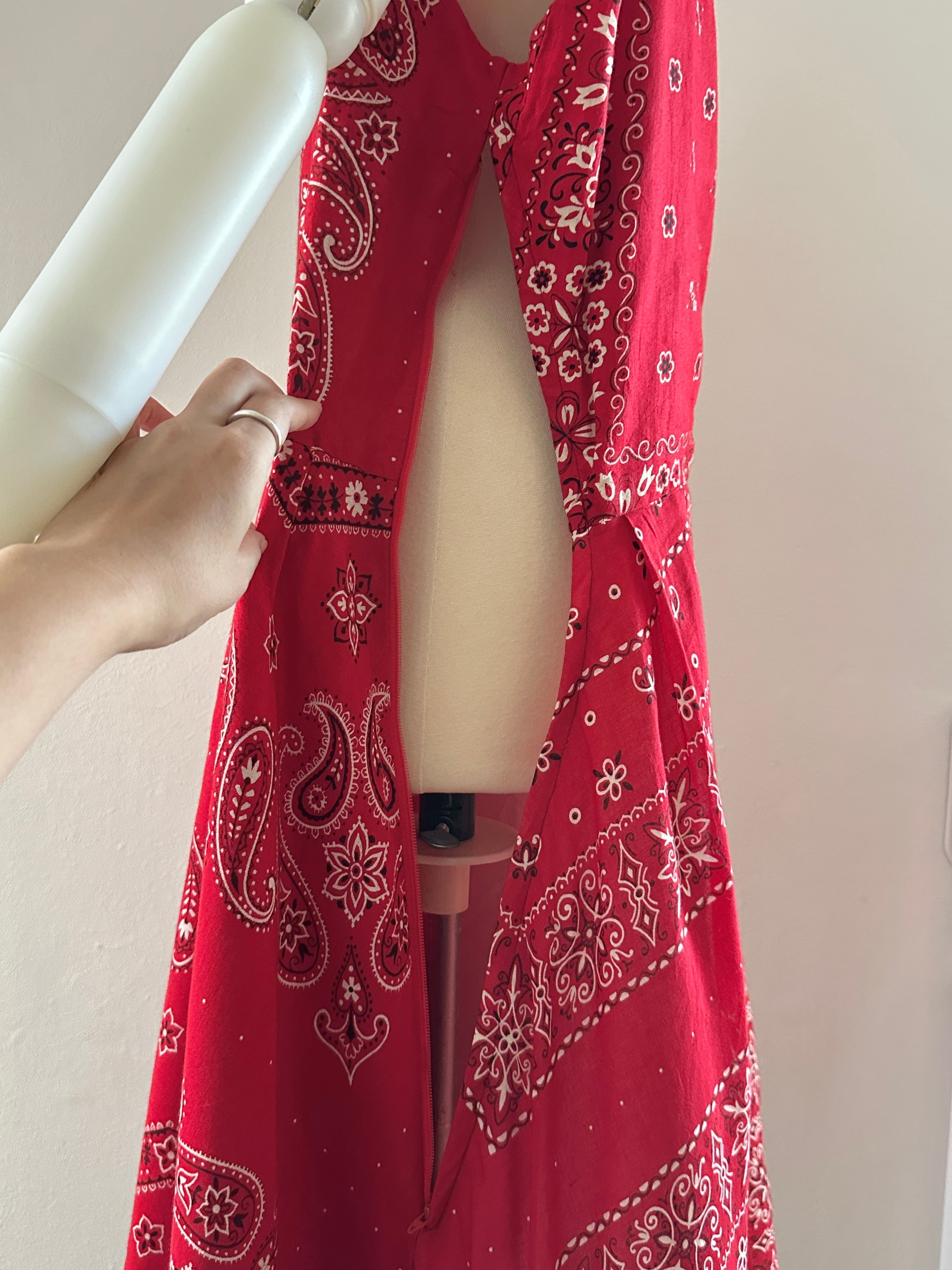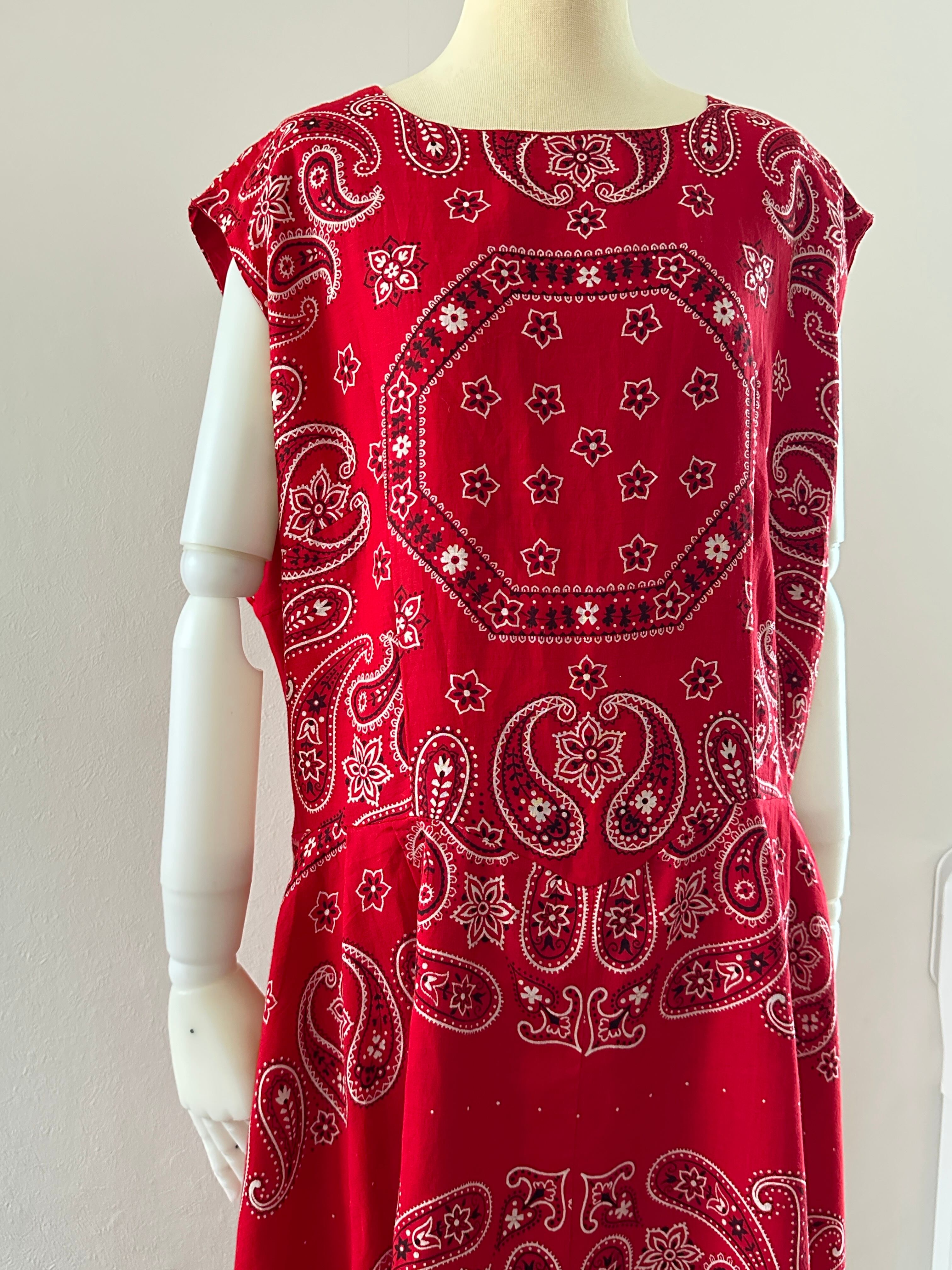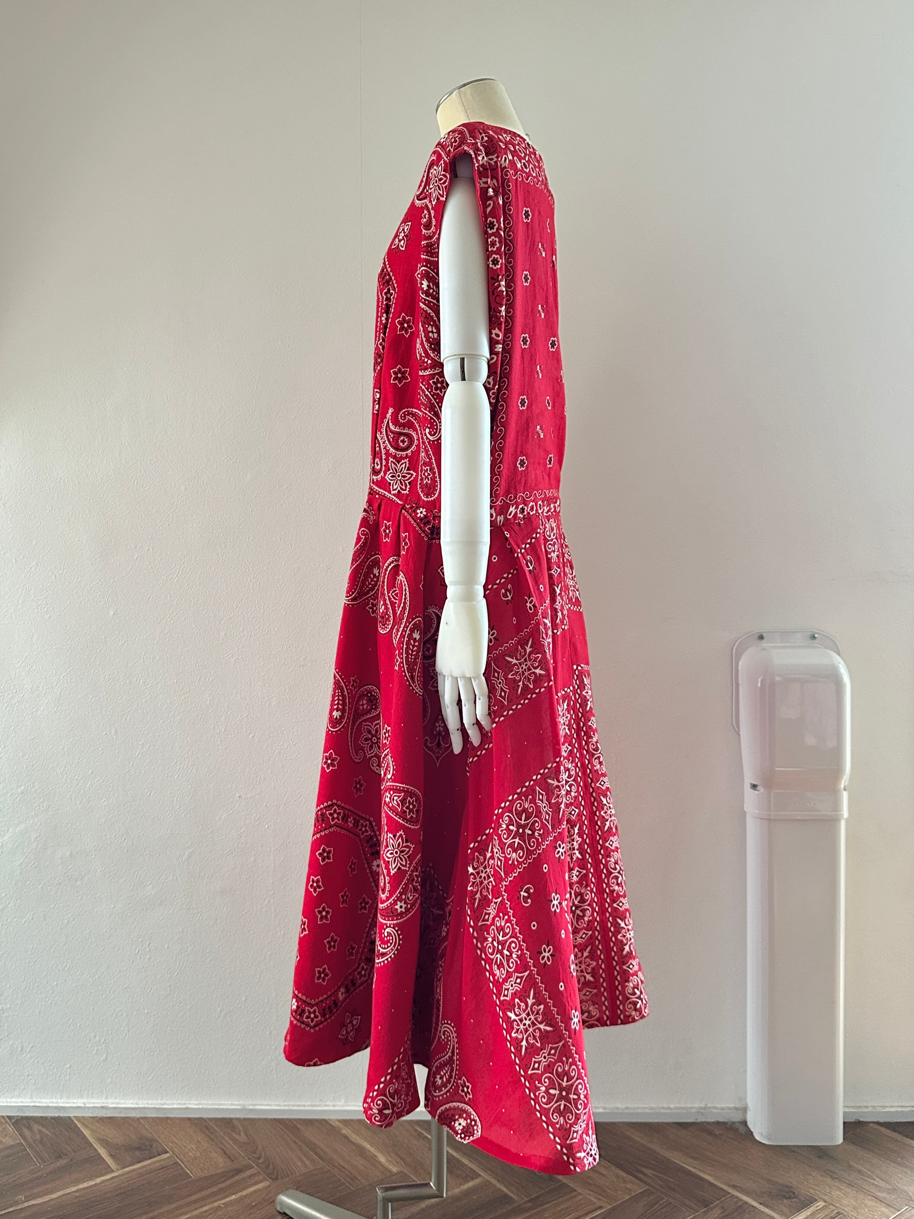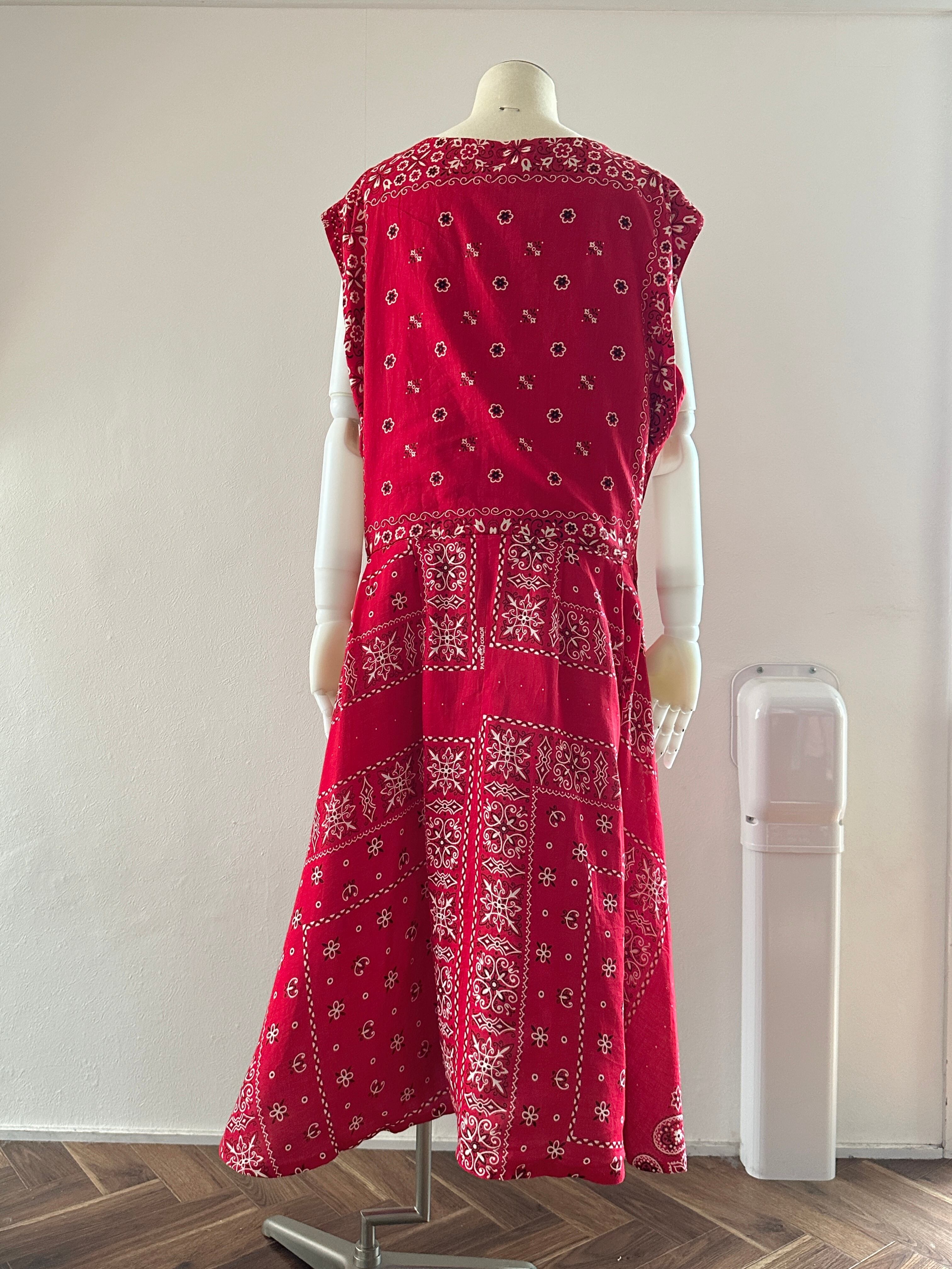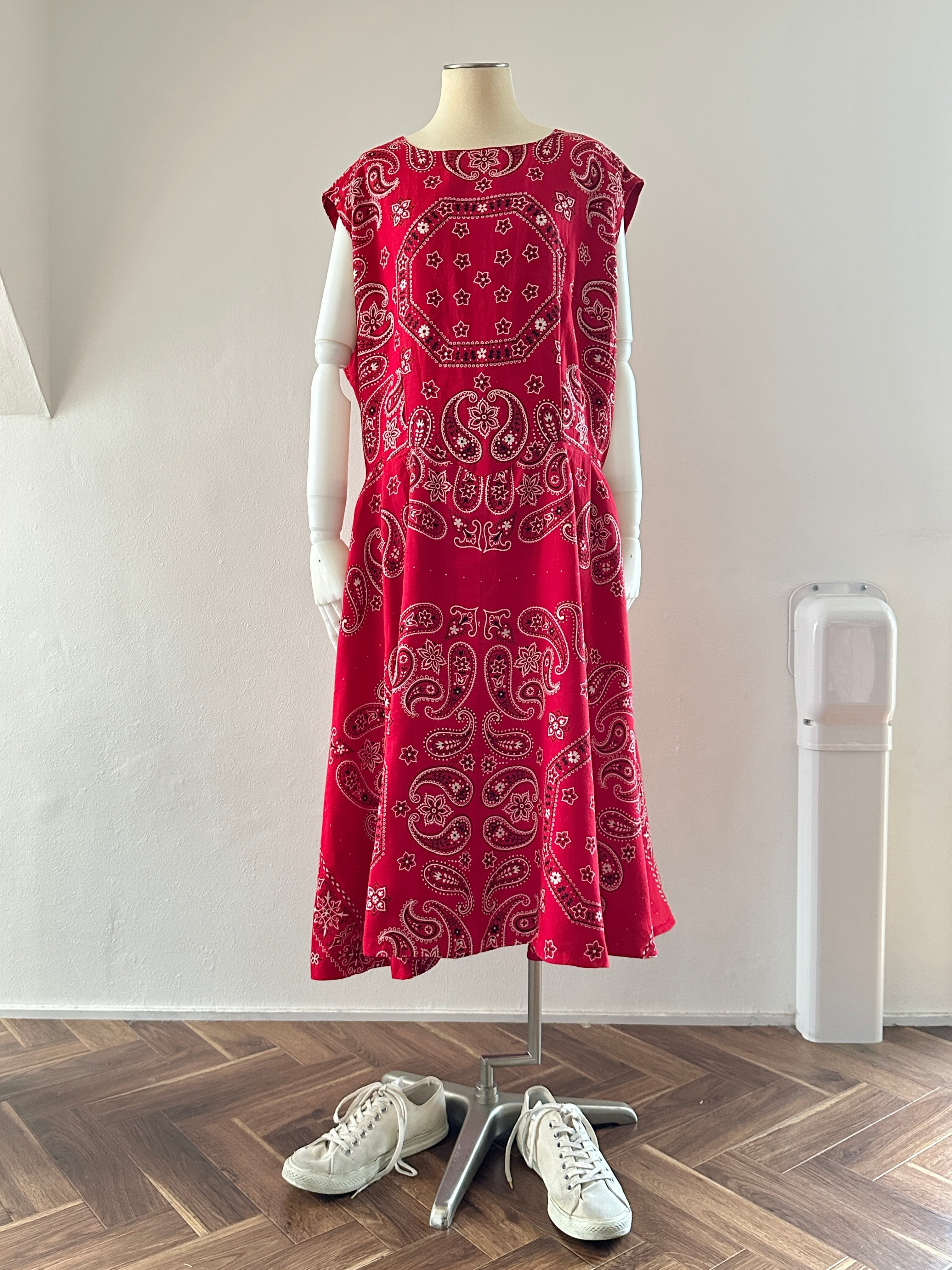 50-80年代のバンダナ生地を使ってハンドメイドで作られたノースリーブワンピース。