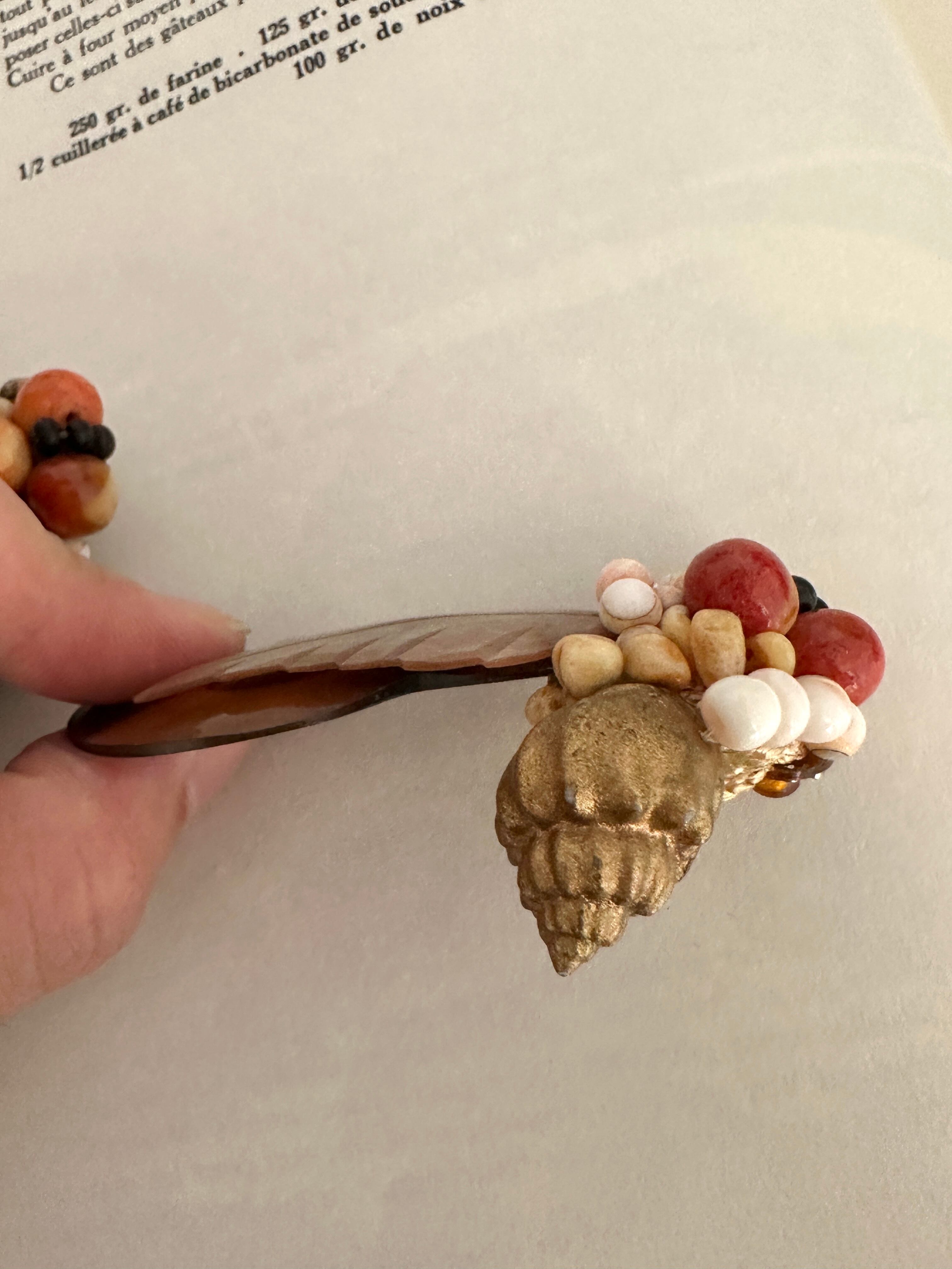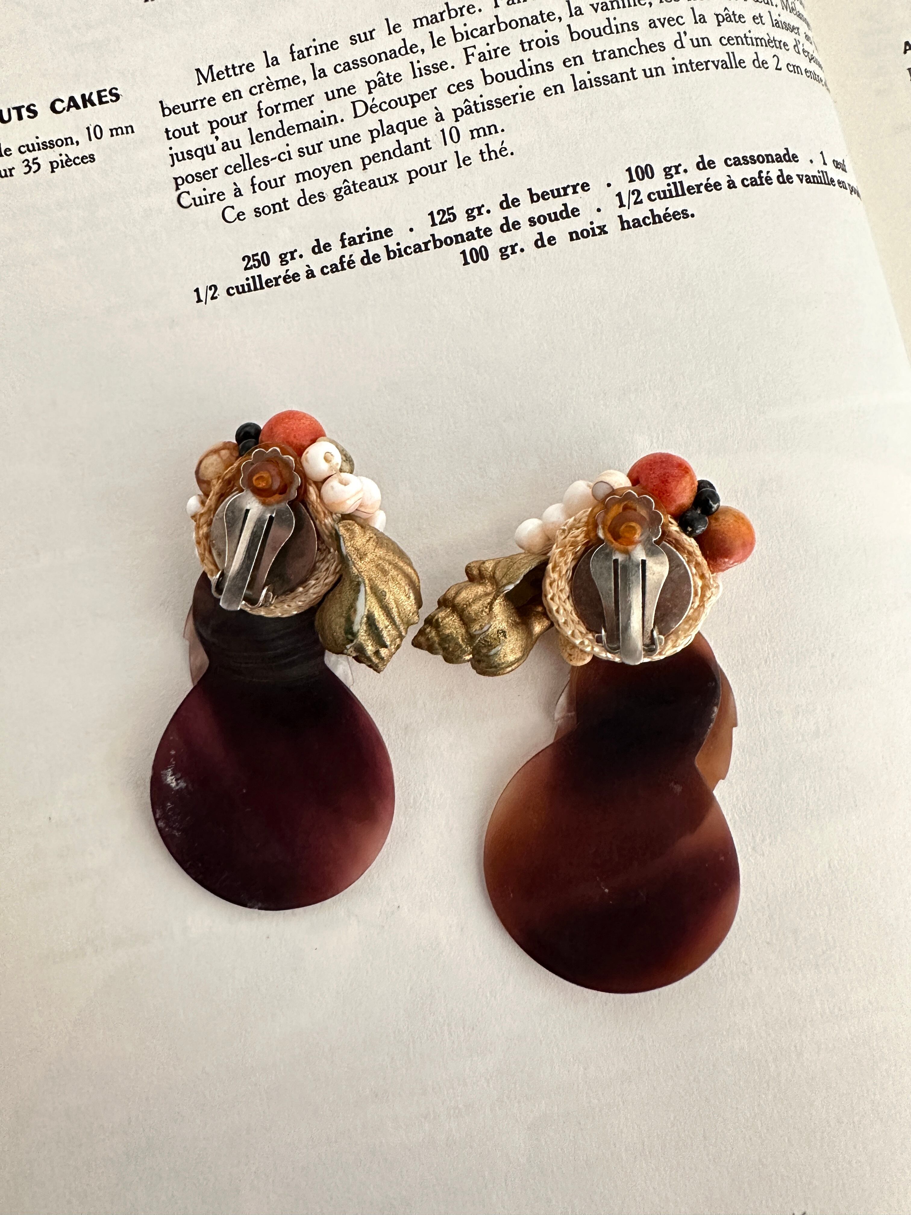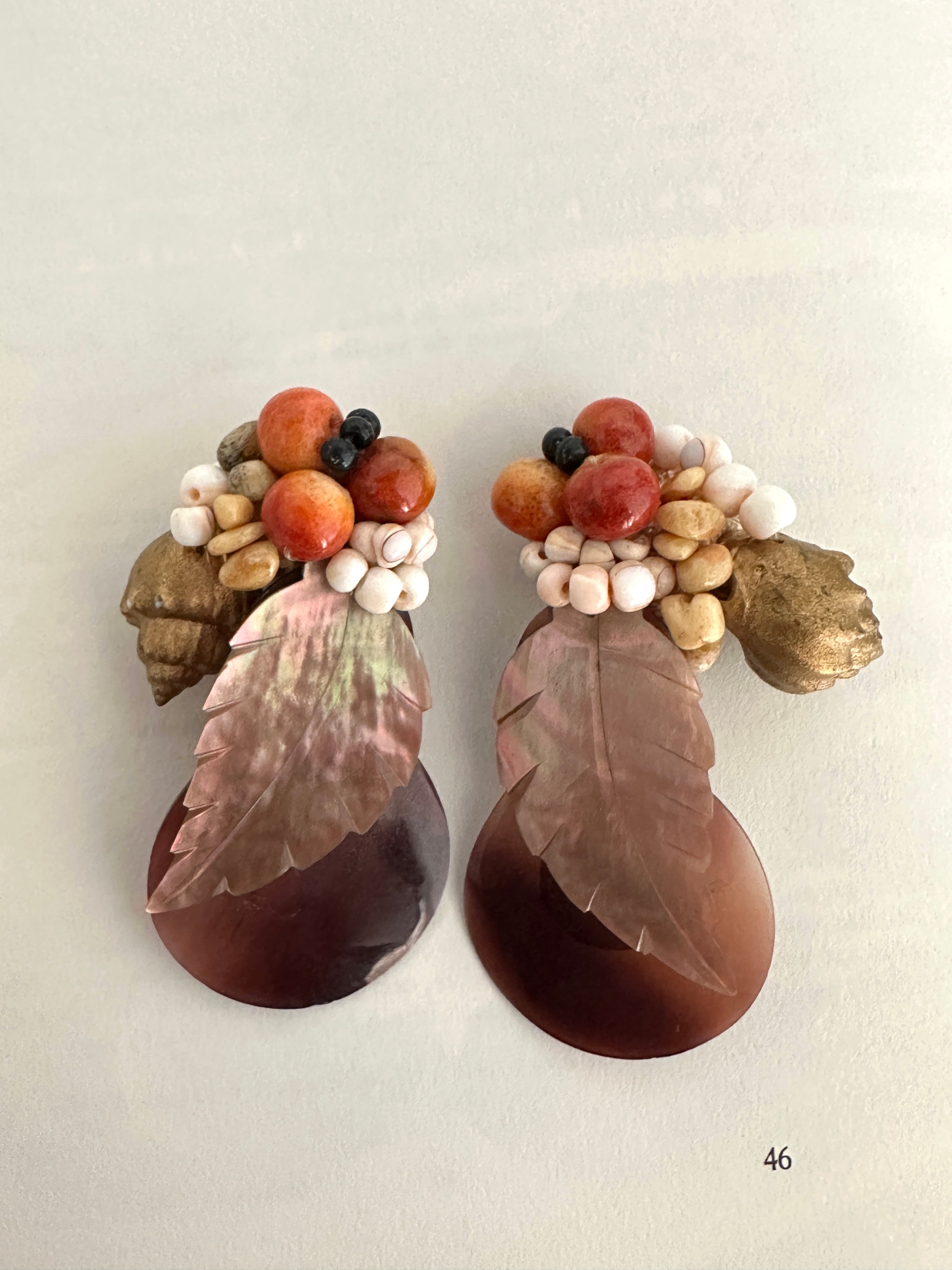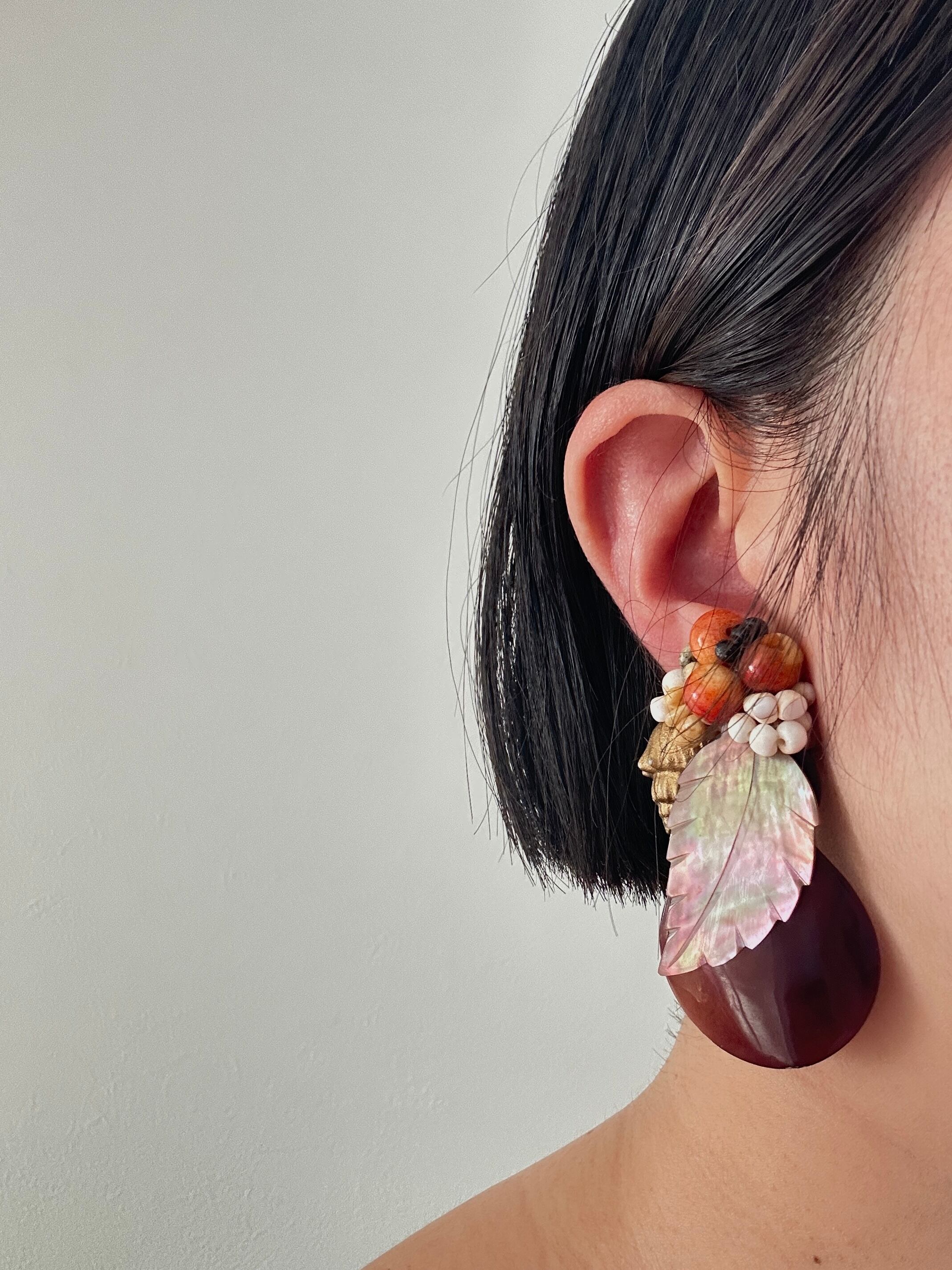 シェルパーツやビーズが組み合わさって出来たイヤリング。