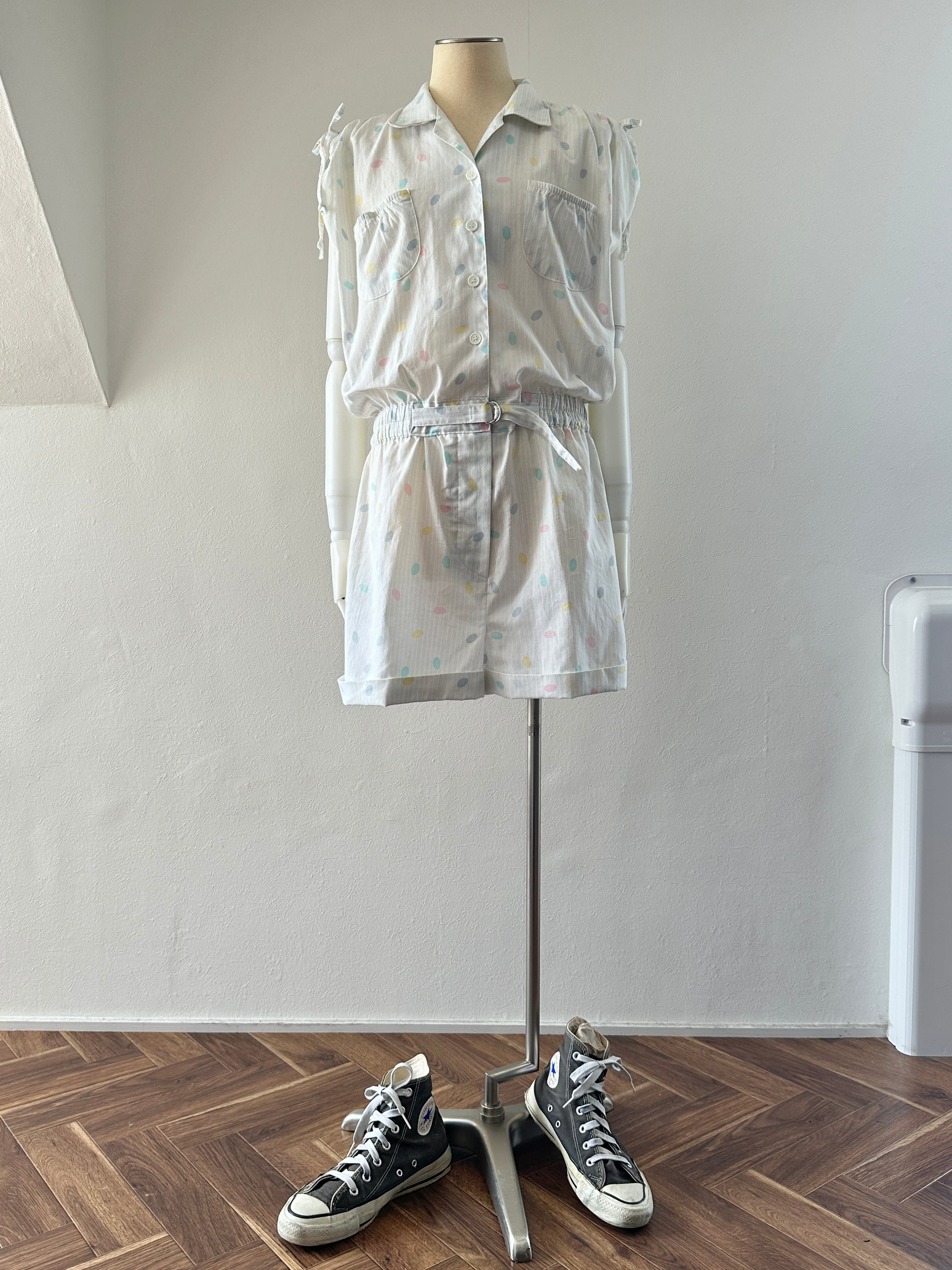 80-90年代ノースリーブのショート丈ジャンプスーツ。