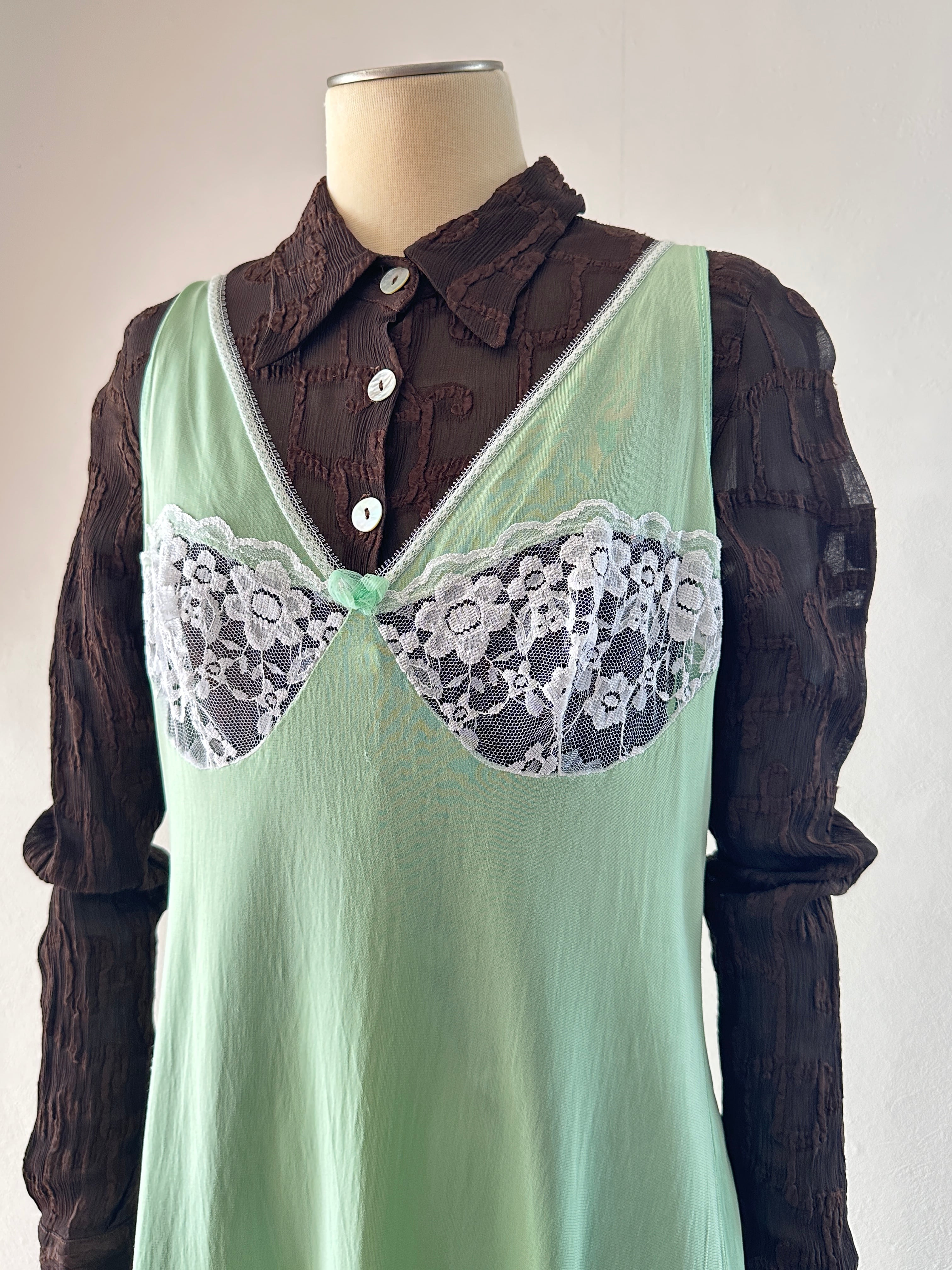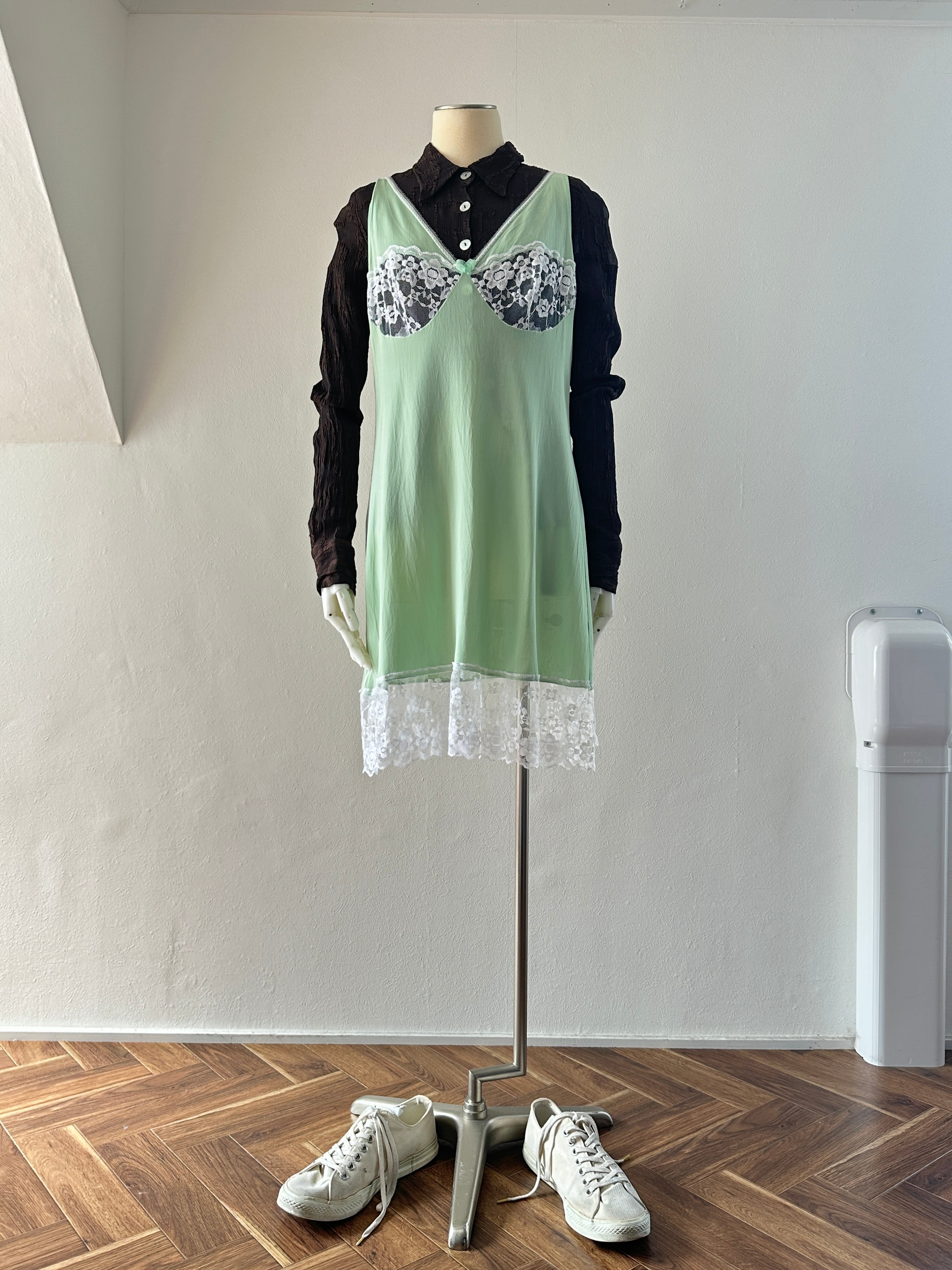 ミントグリーンのランジェリーキャミソール。