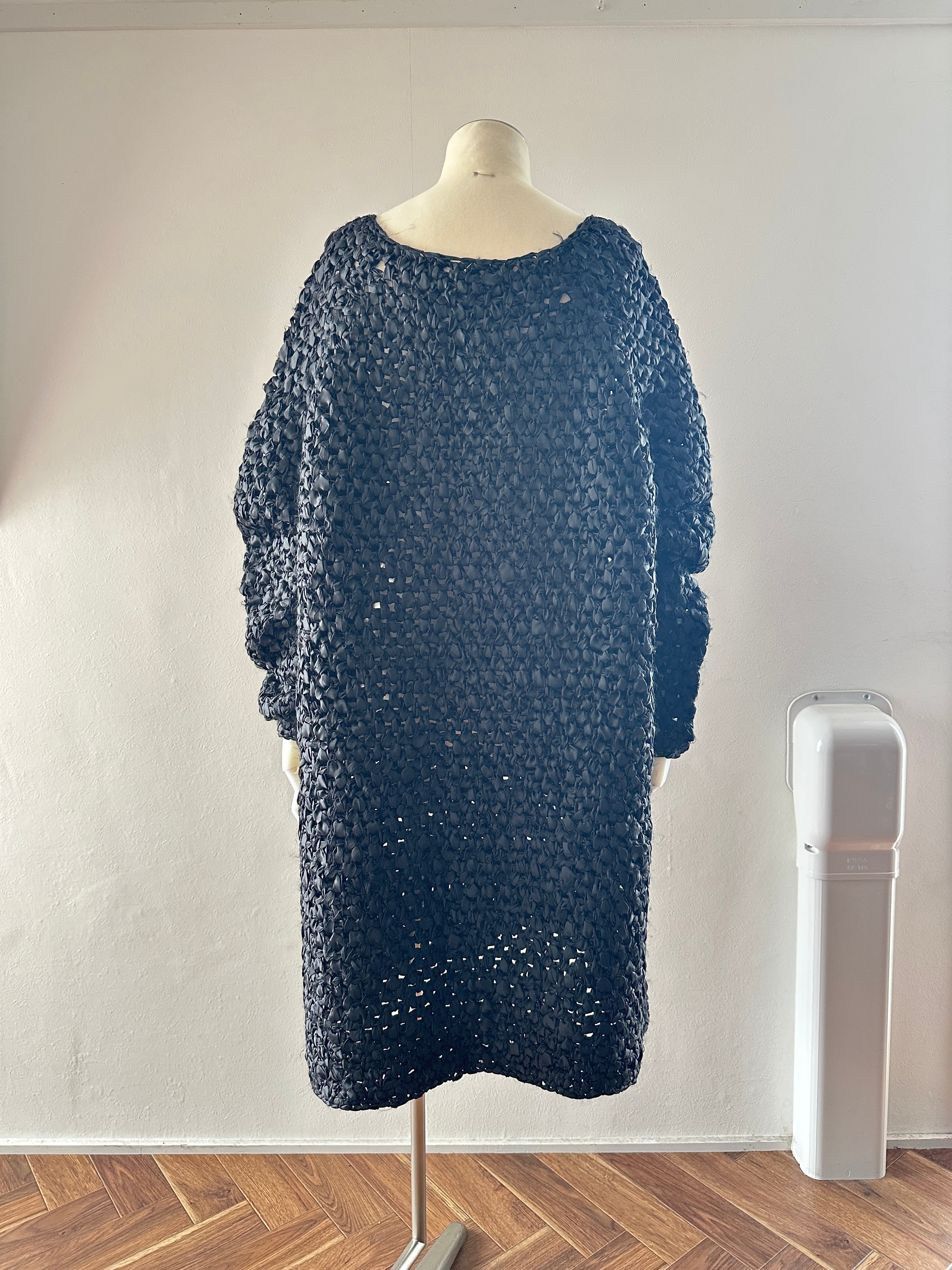 ribbon knitting L/S dress (black)