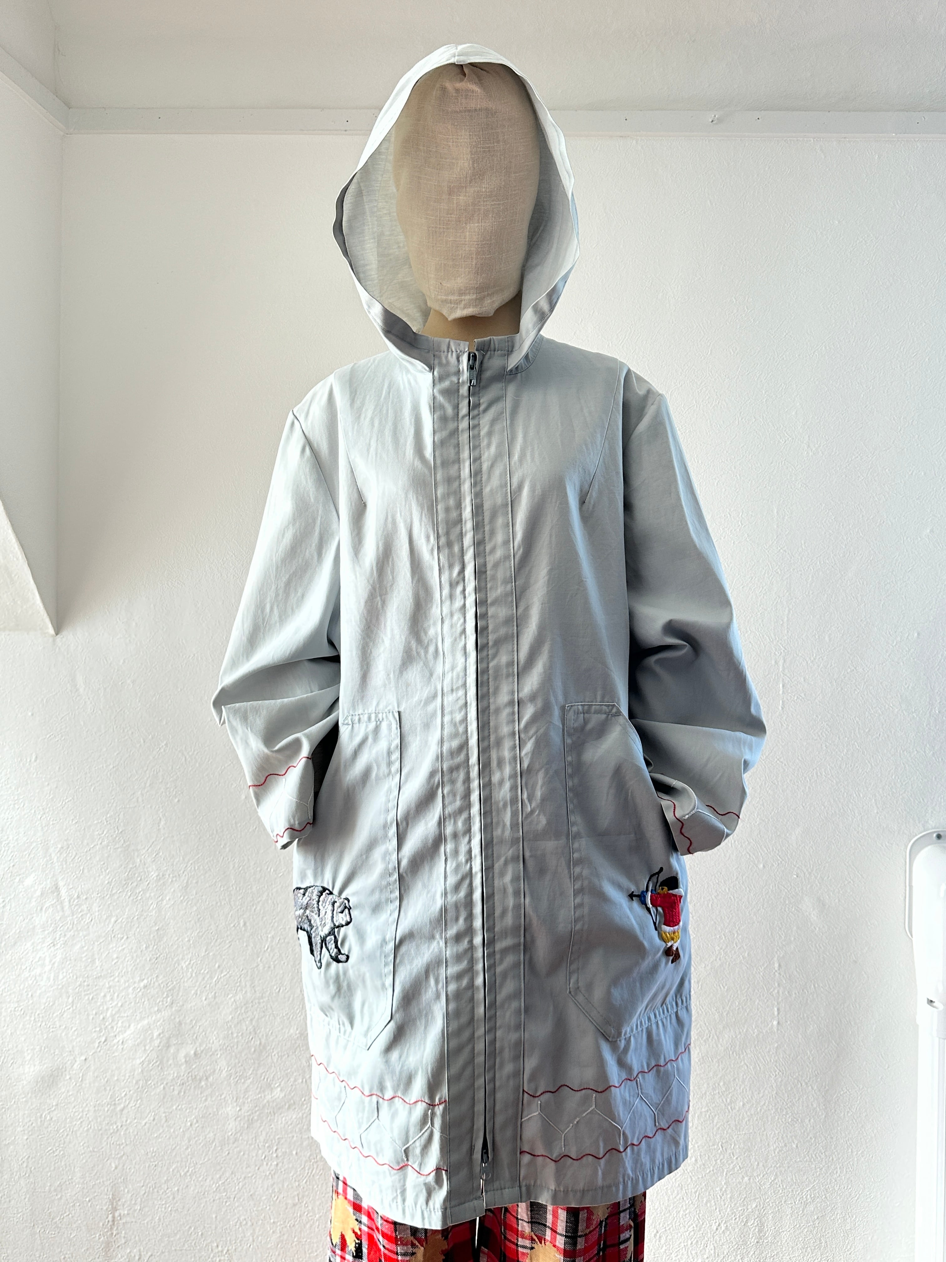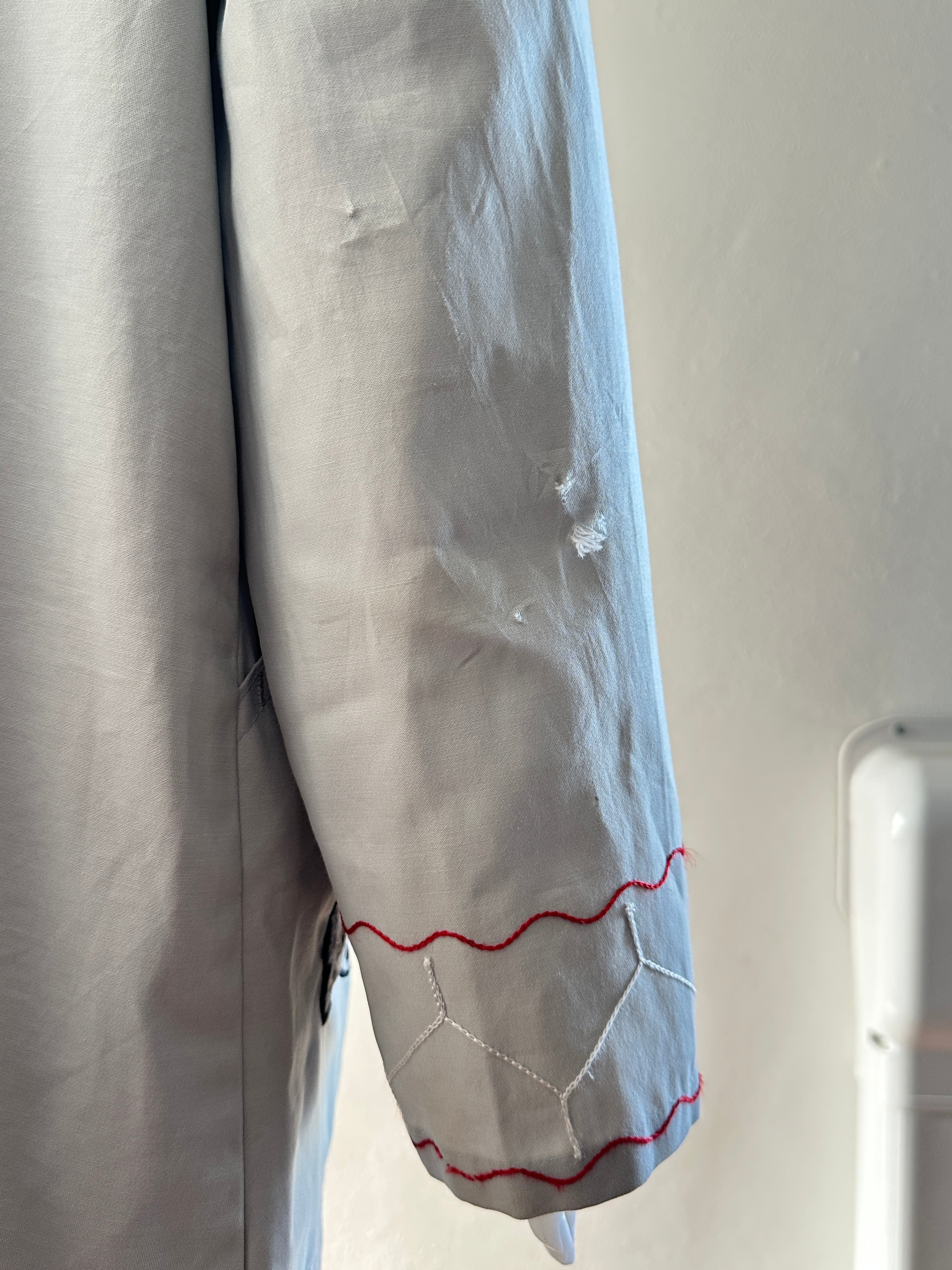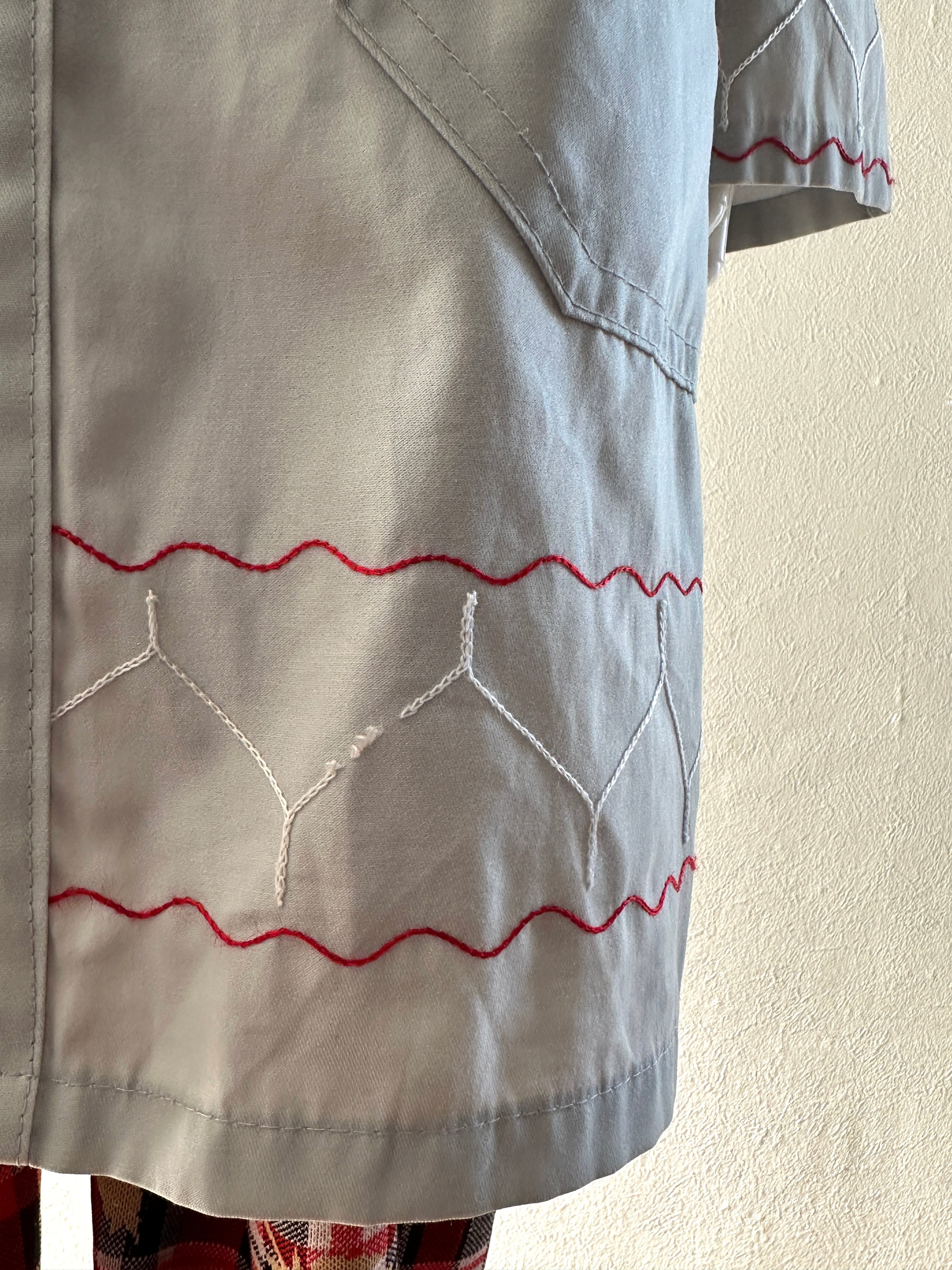 ※後ろ裾、左裾に刺繍の解れ、右袖に小さな破れ、右肩に薄いピンクの跡有り。(写真10〜13枚目)
