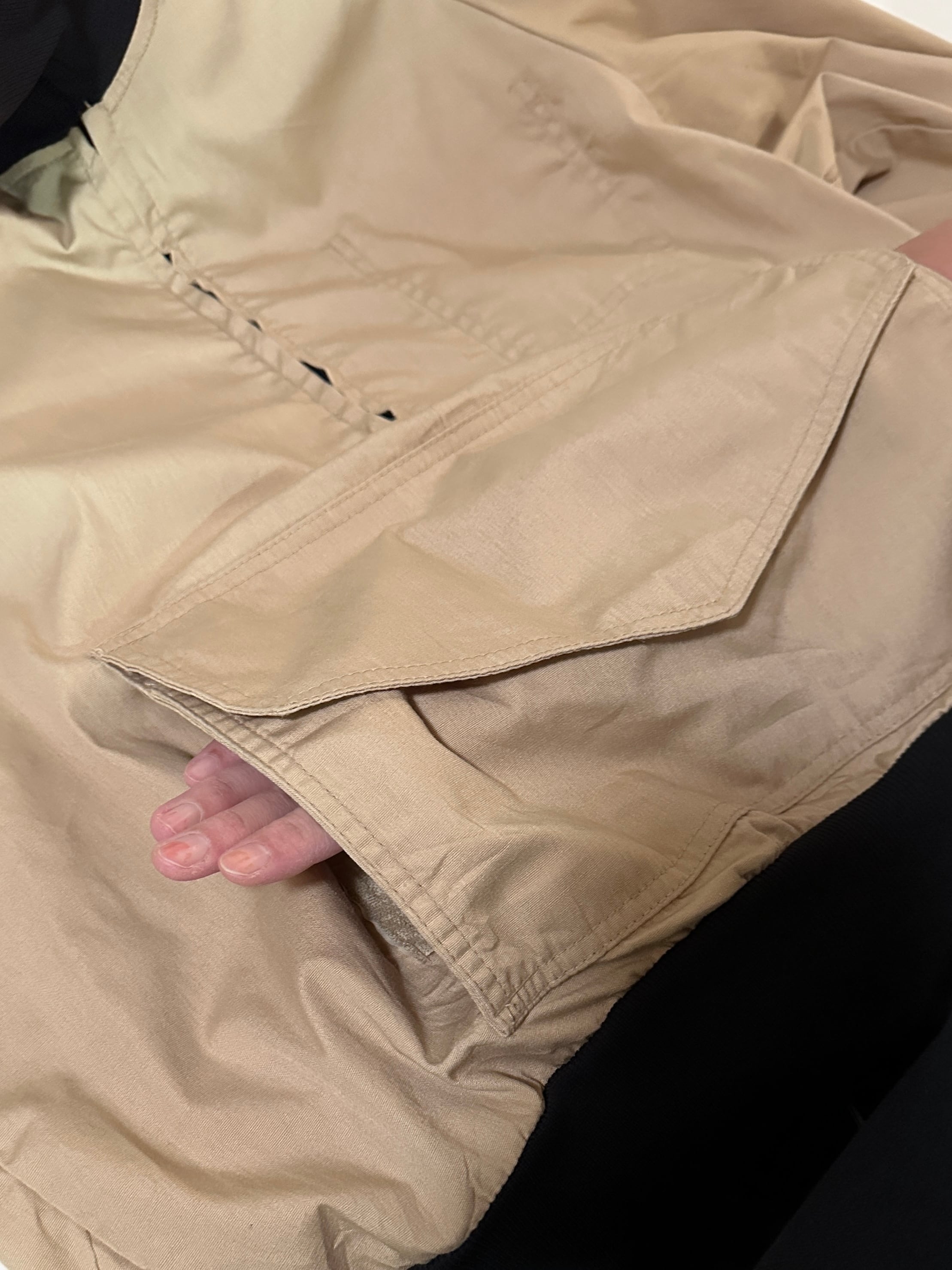 大きなフラップ付きポケットの後ろはハンドウォーマーになってて実用性◎