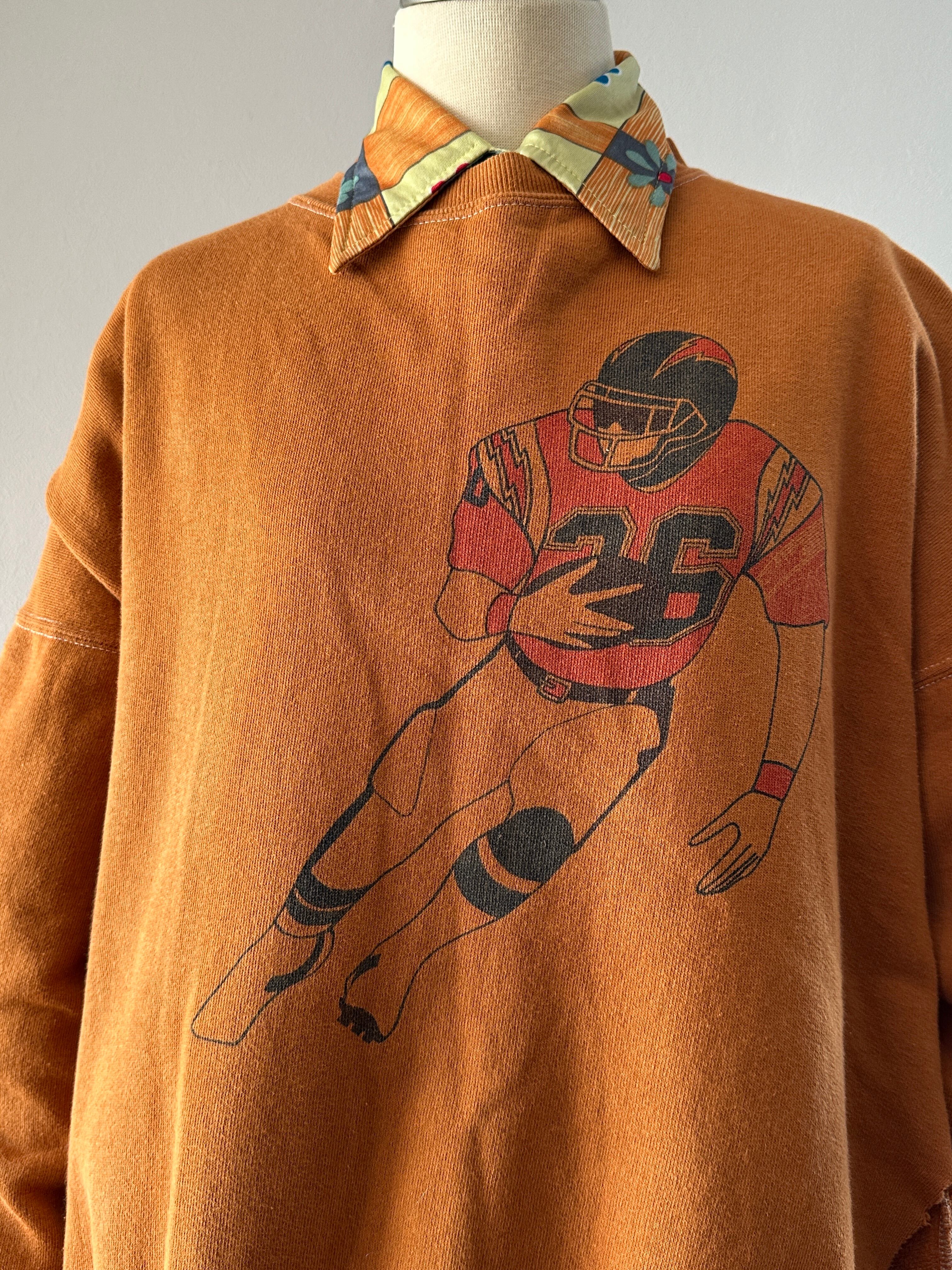 フットボール選手のプリントがされたロングスリーブスウェット。