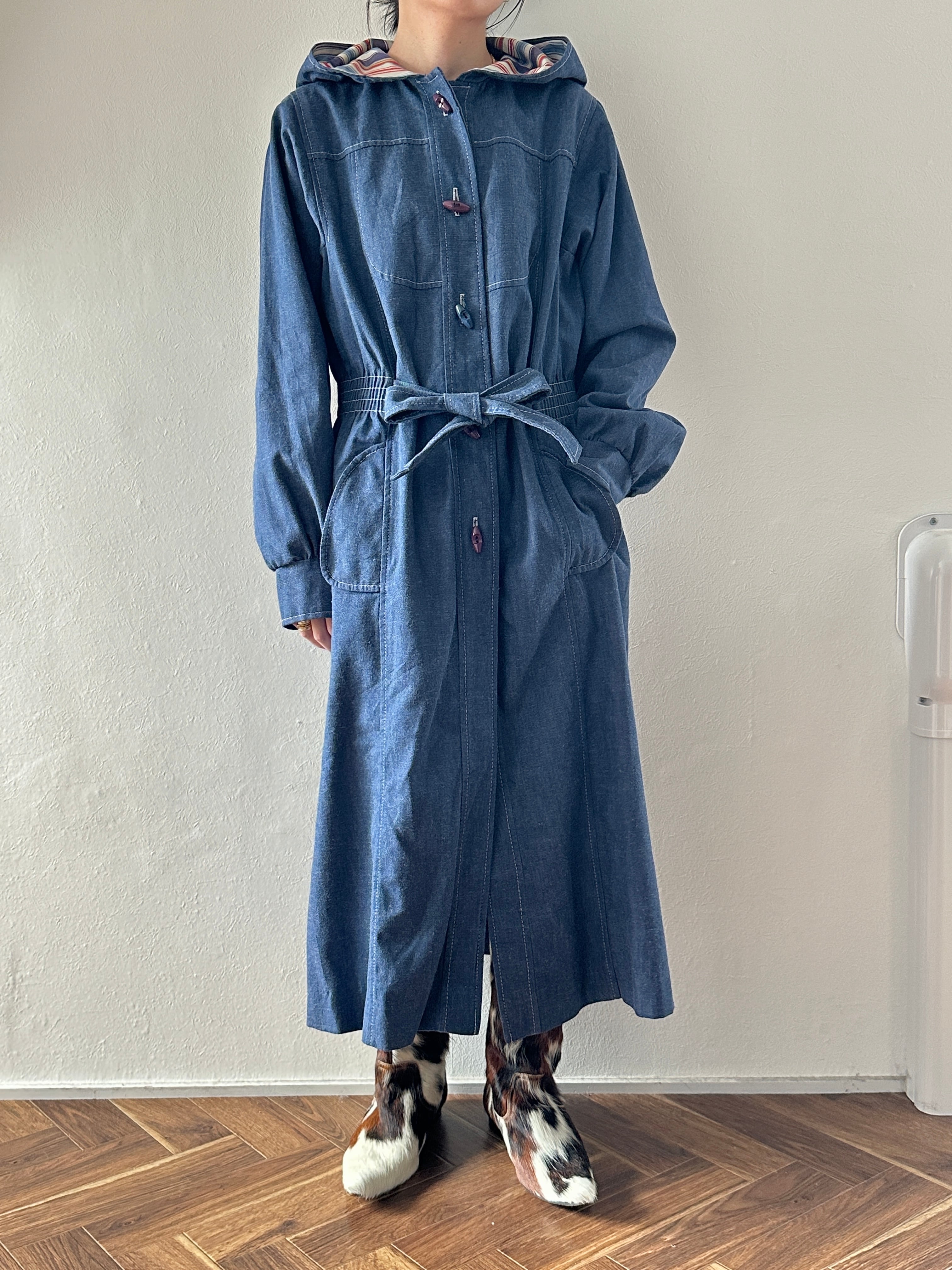 70年代のフード付きデニムコート。