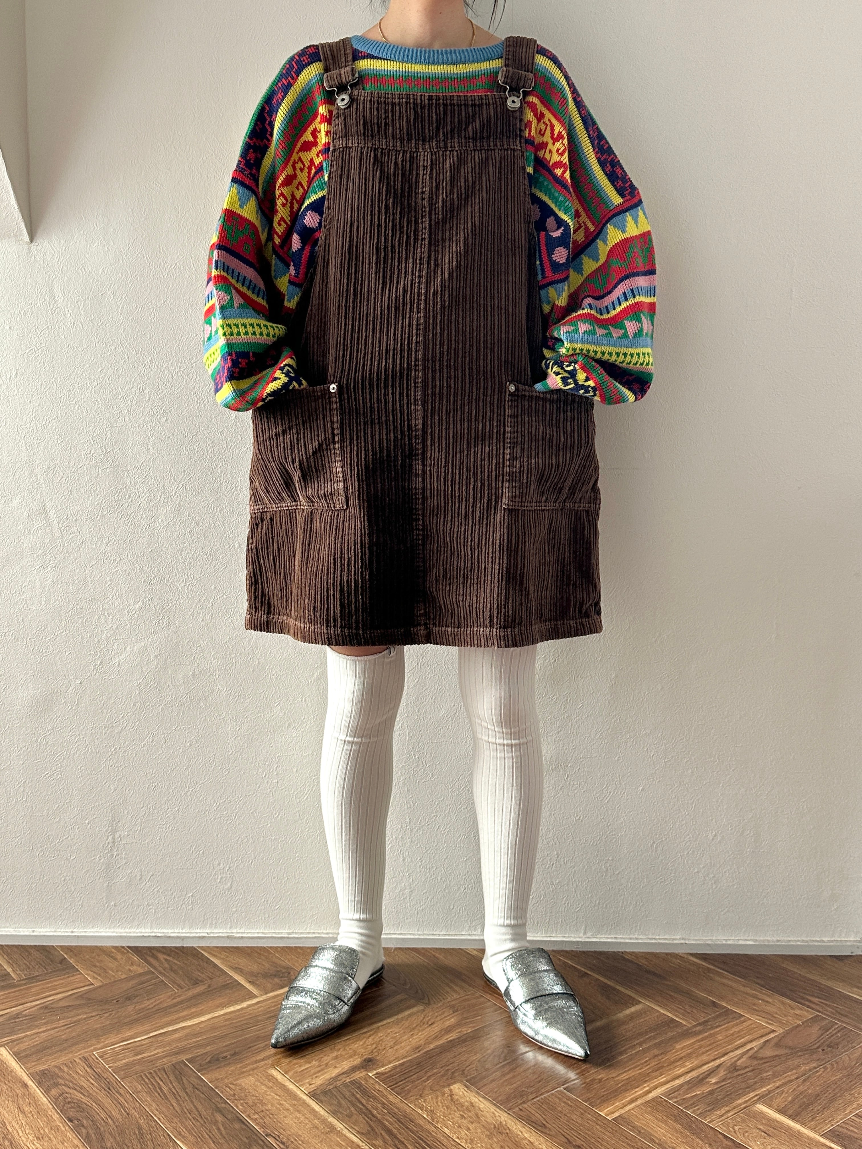 子供っぽくなりがちなオーバーオールですが、ブラウンで大人の女性でも合わせやすい1着かと思います。