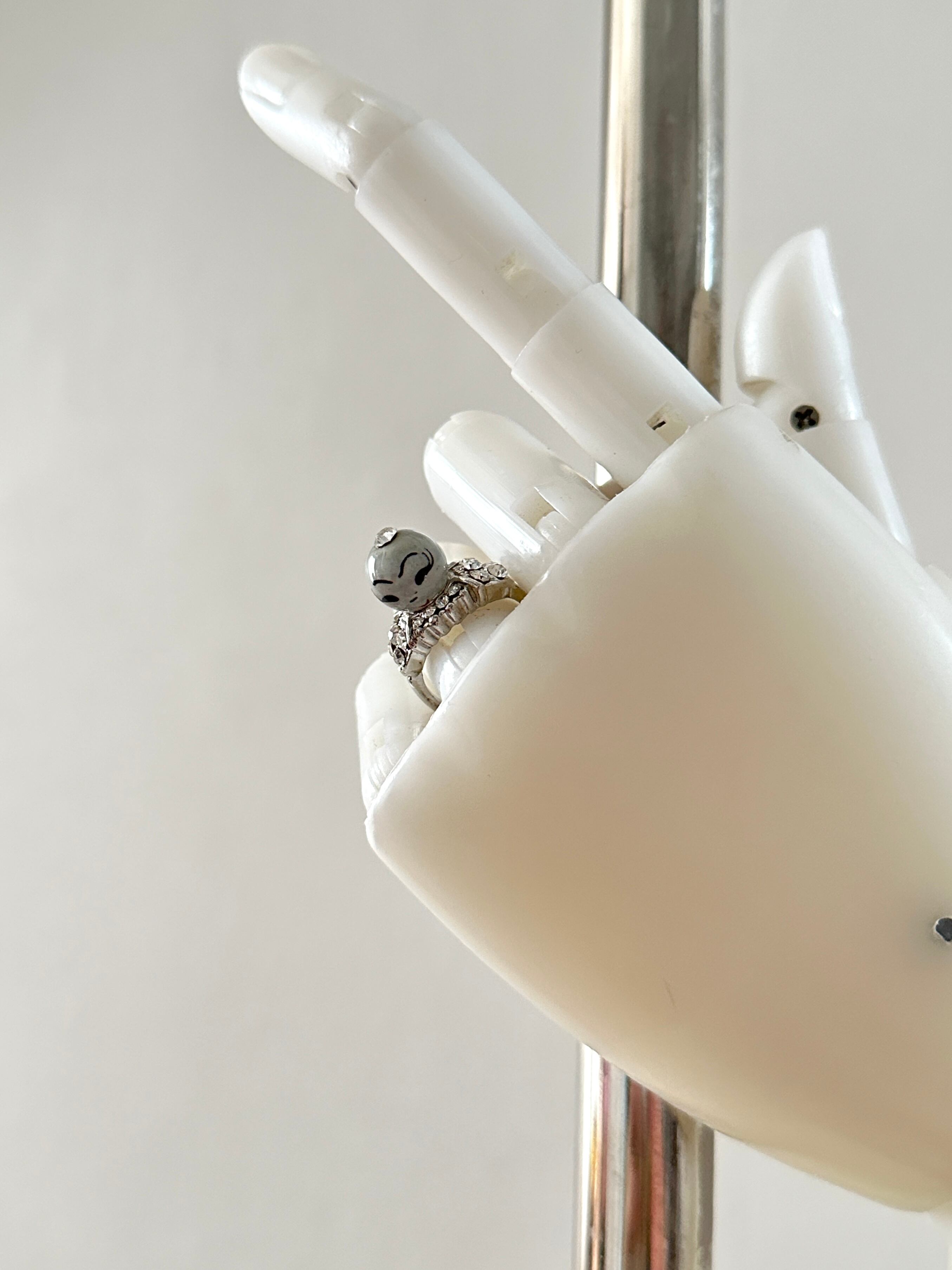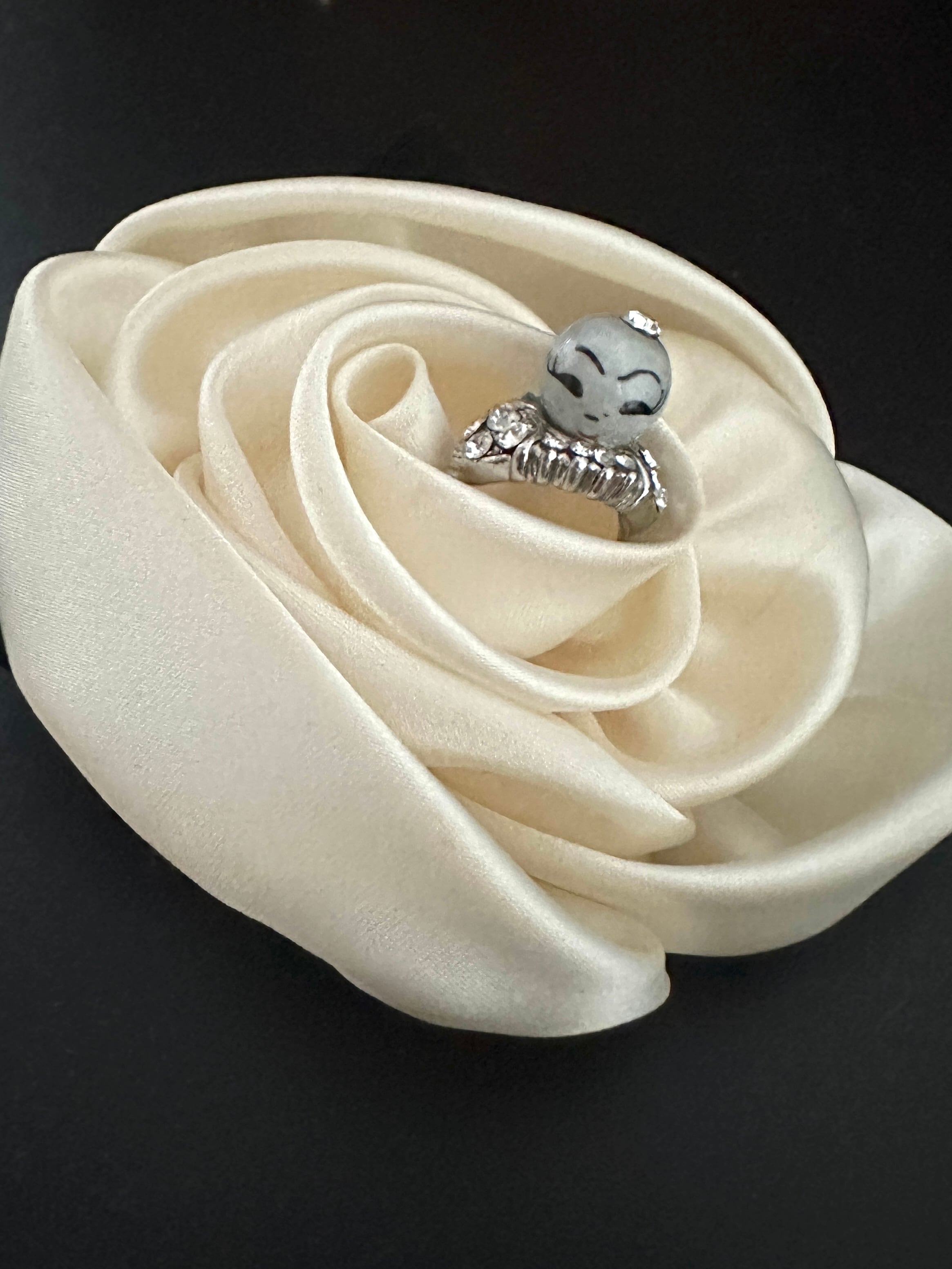 イミテーションのビジューが付いていて、ギャップのある組み合わせがとても可愛い◎