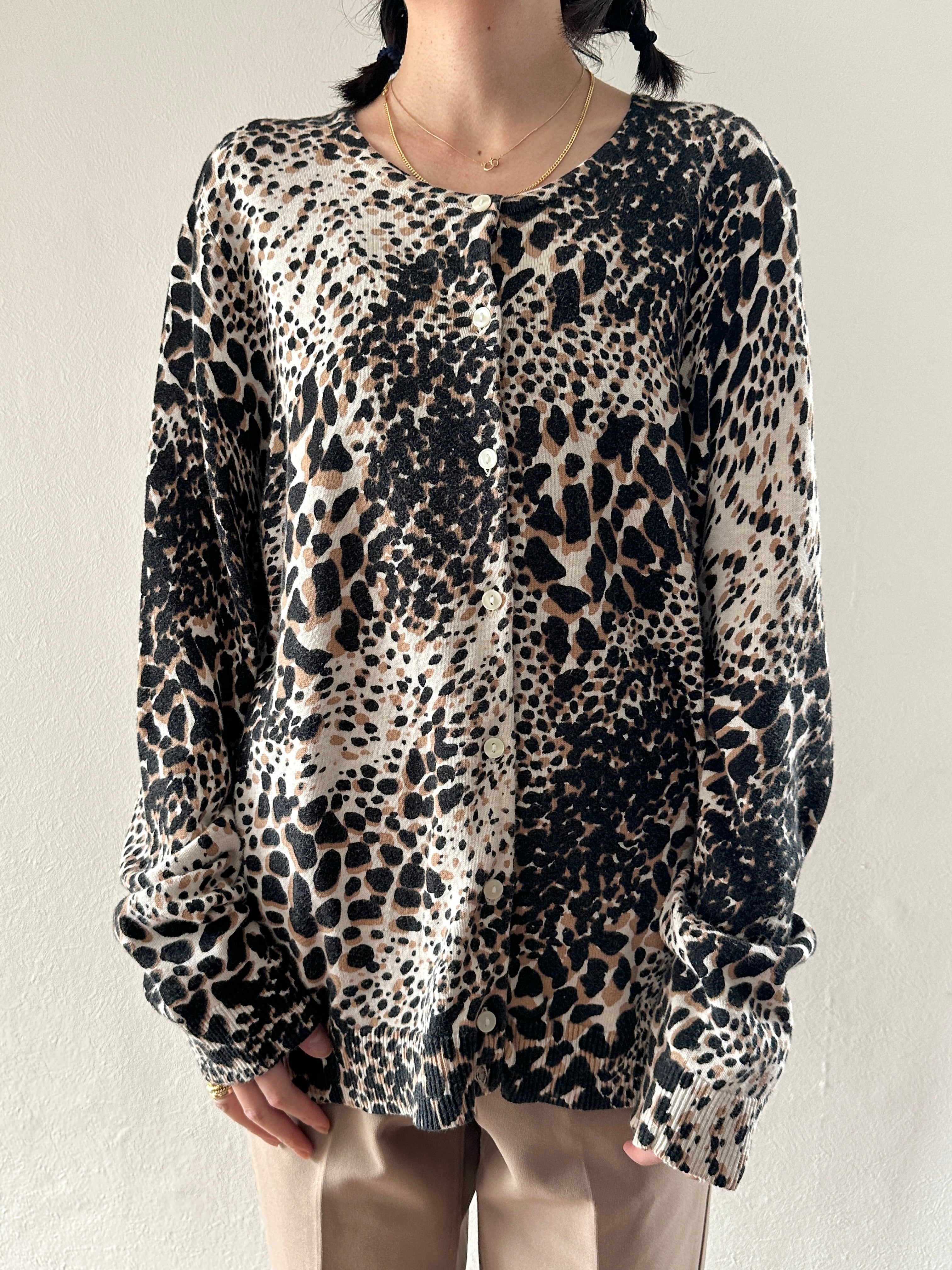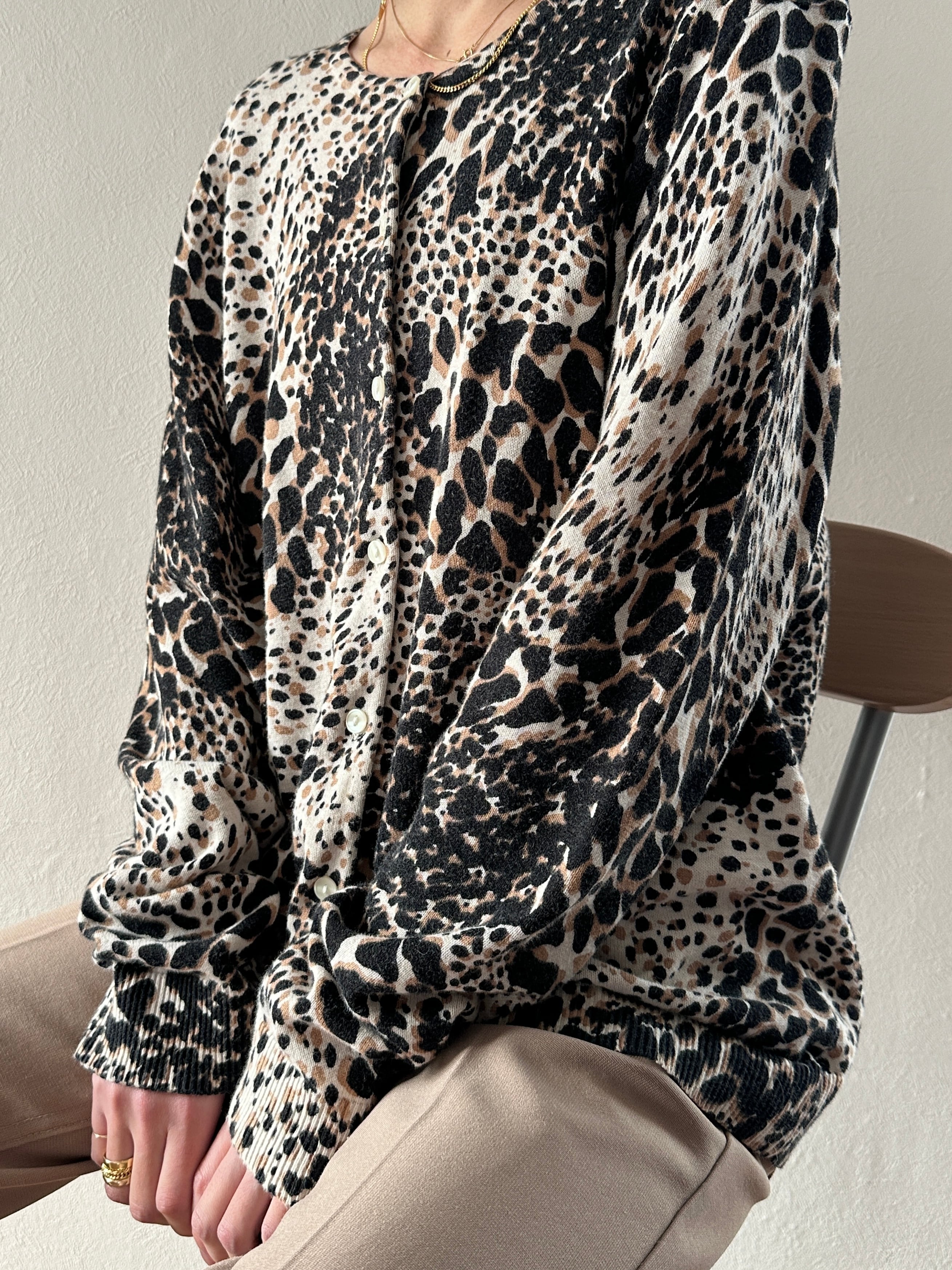 Croft & Barrowの豹柄の薄手ニットカーディガン。