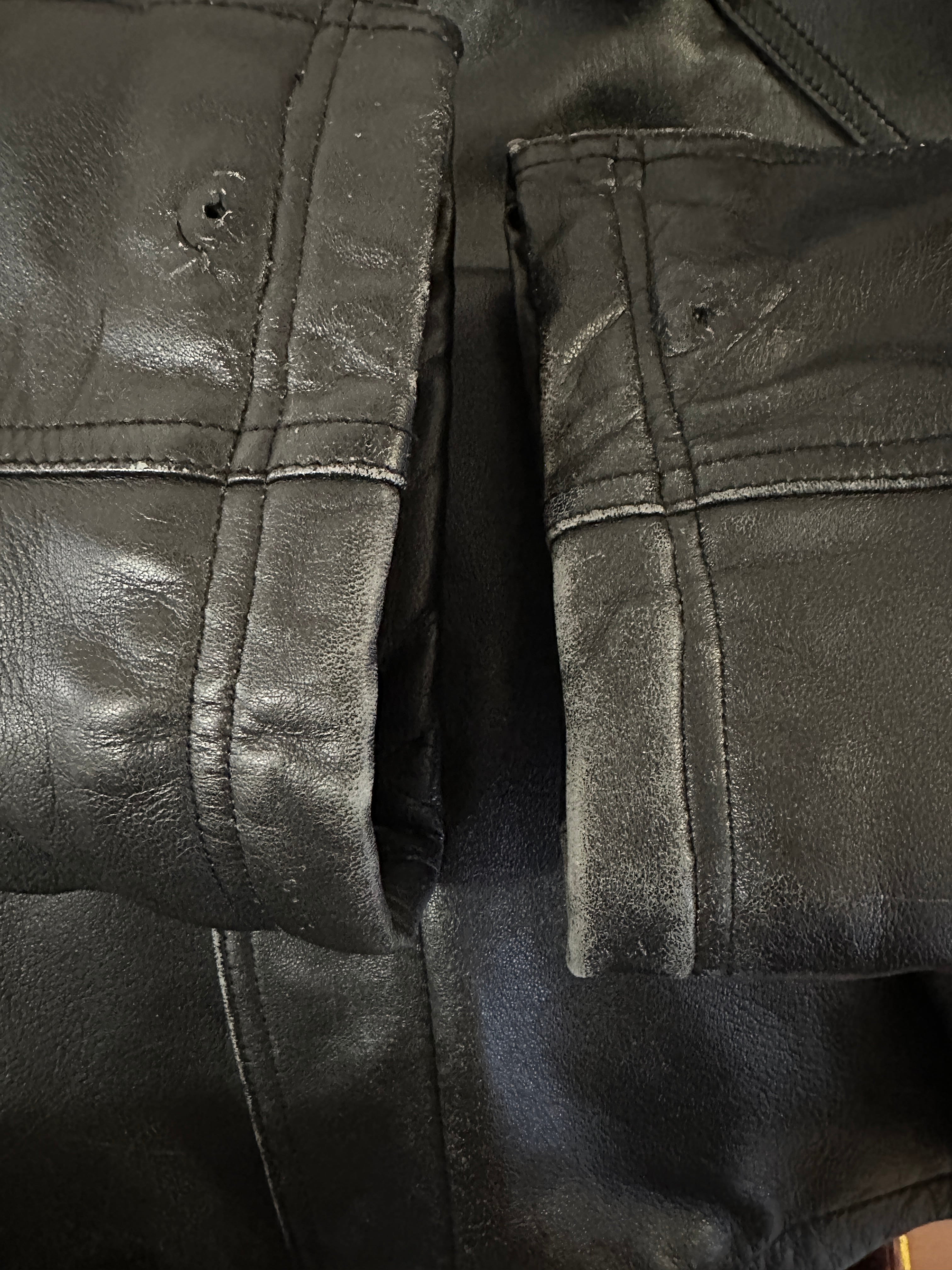 ※裾、袖口にスレによるダメージ有り。袖口にカシメが付いていたような跡有り(写真11-13枚目)