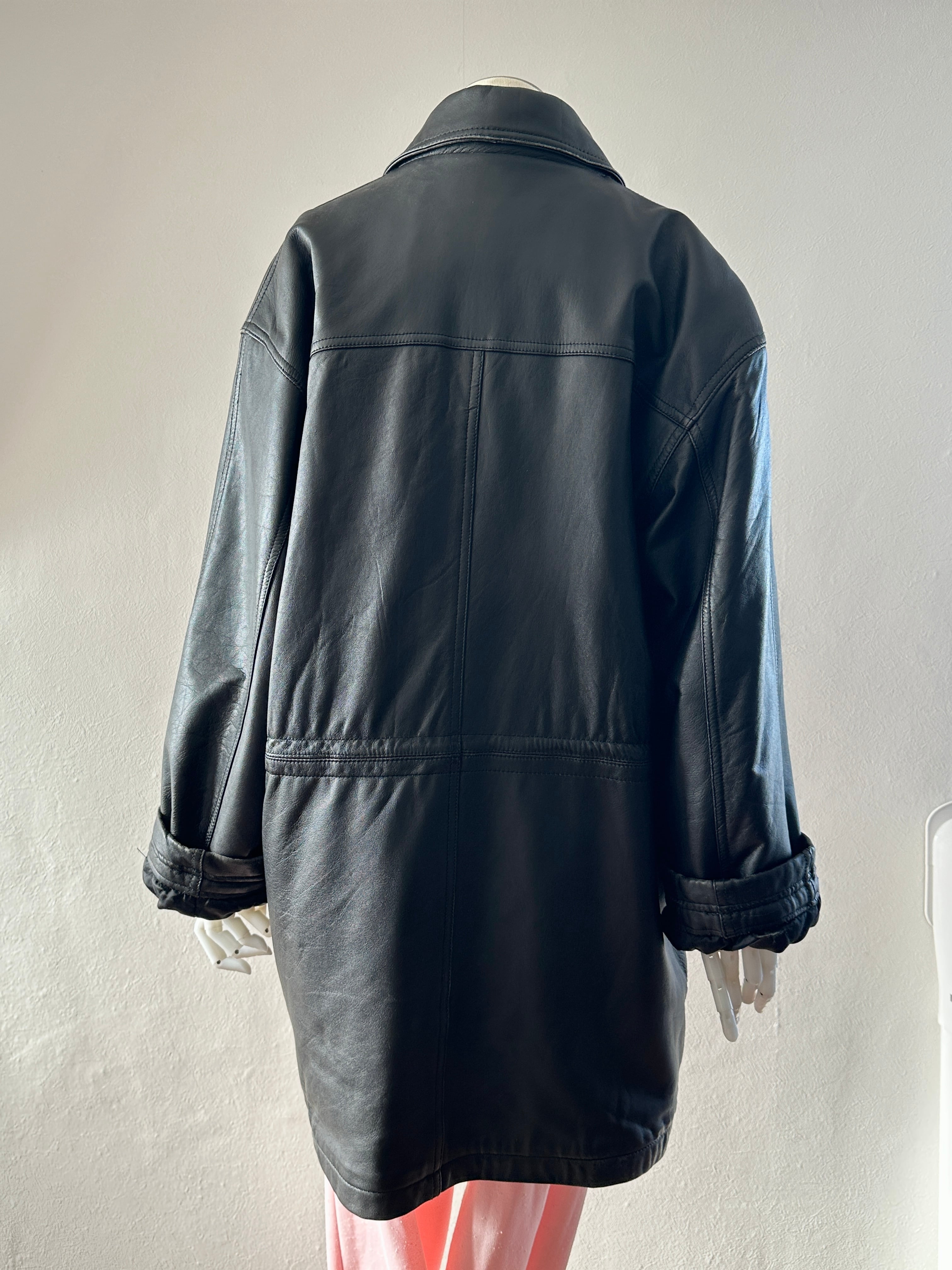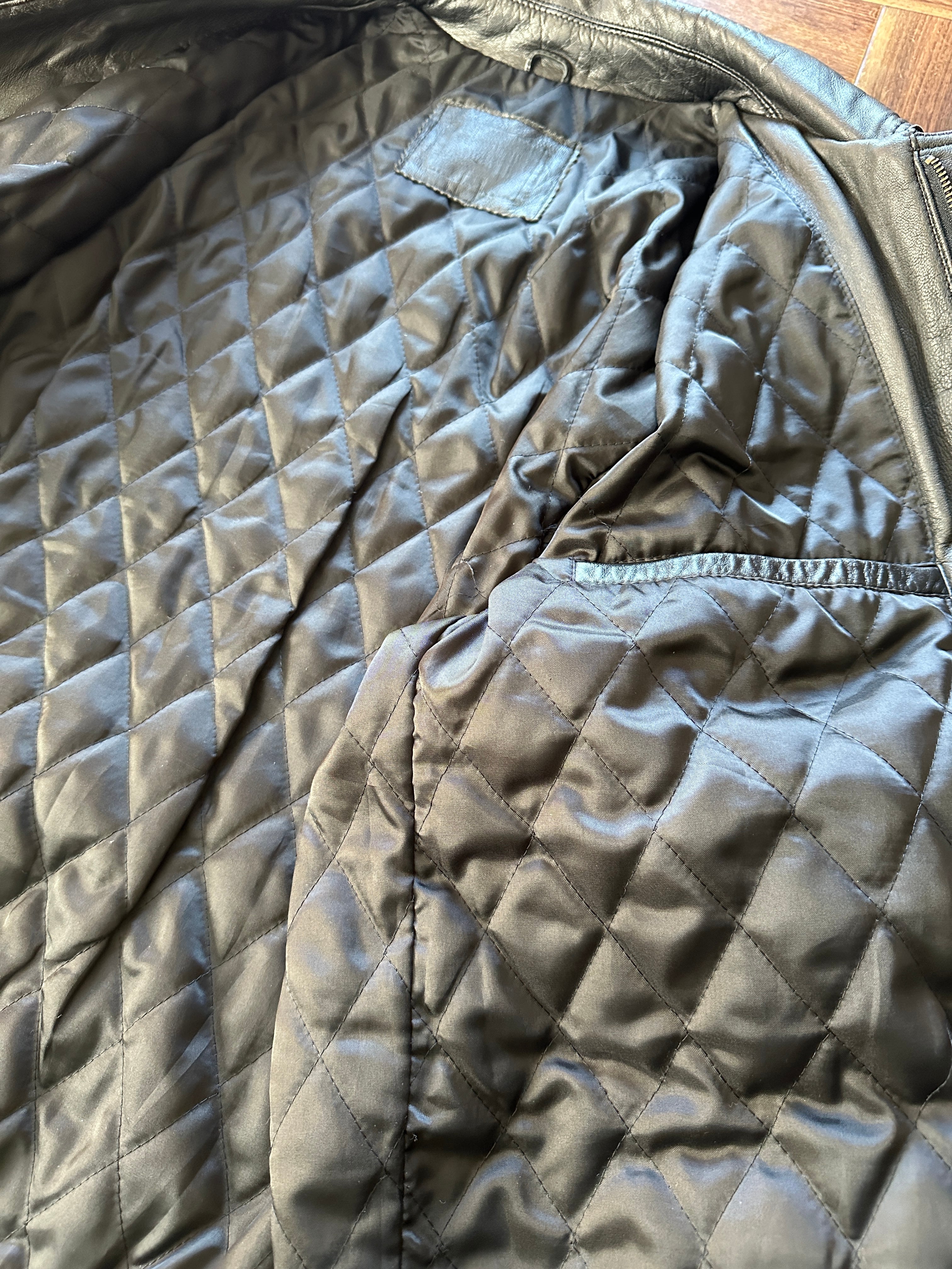 レザーで風も通しにくく、裏地がキルティングのタイプなので暖かく重宝する1着◎