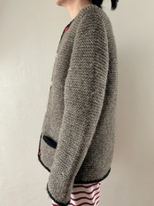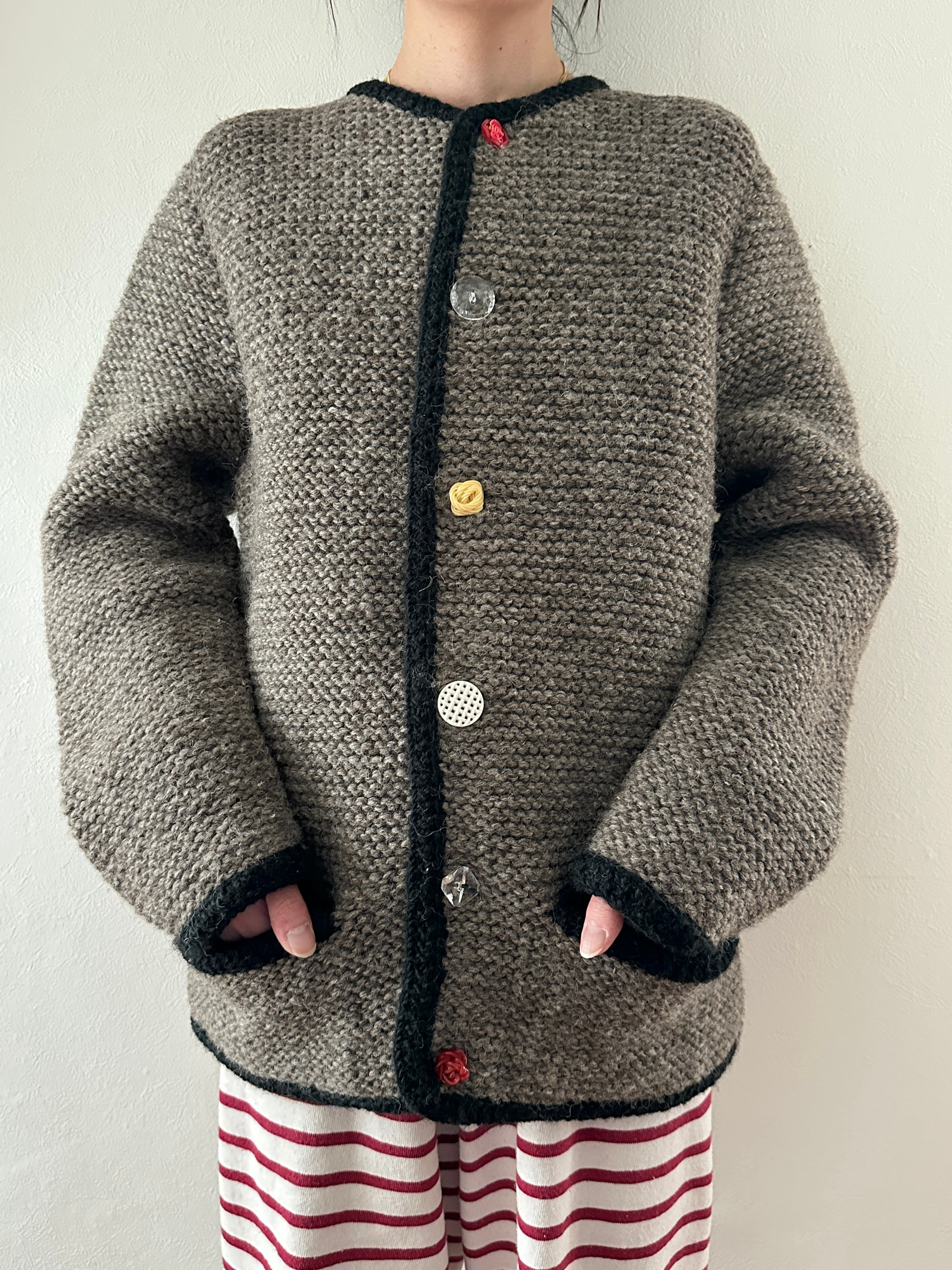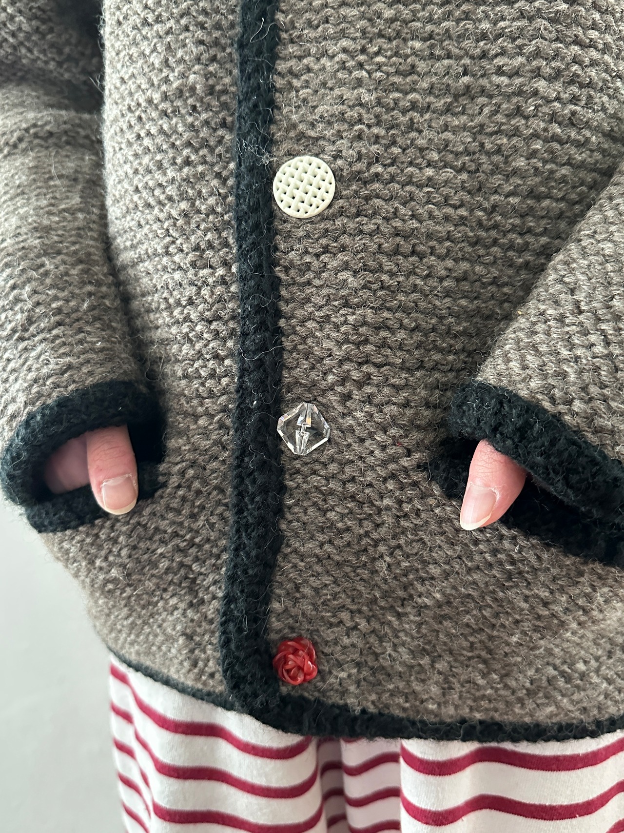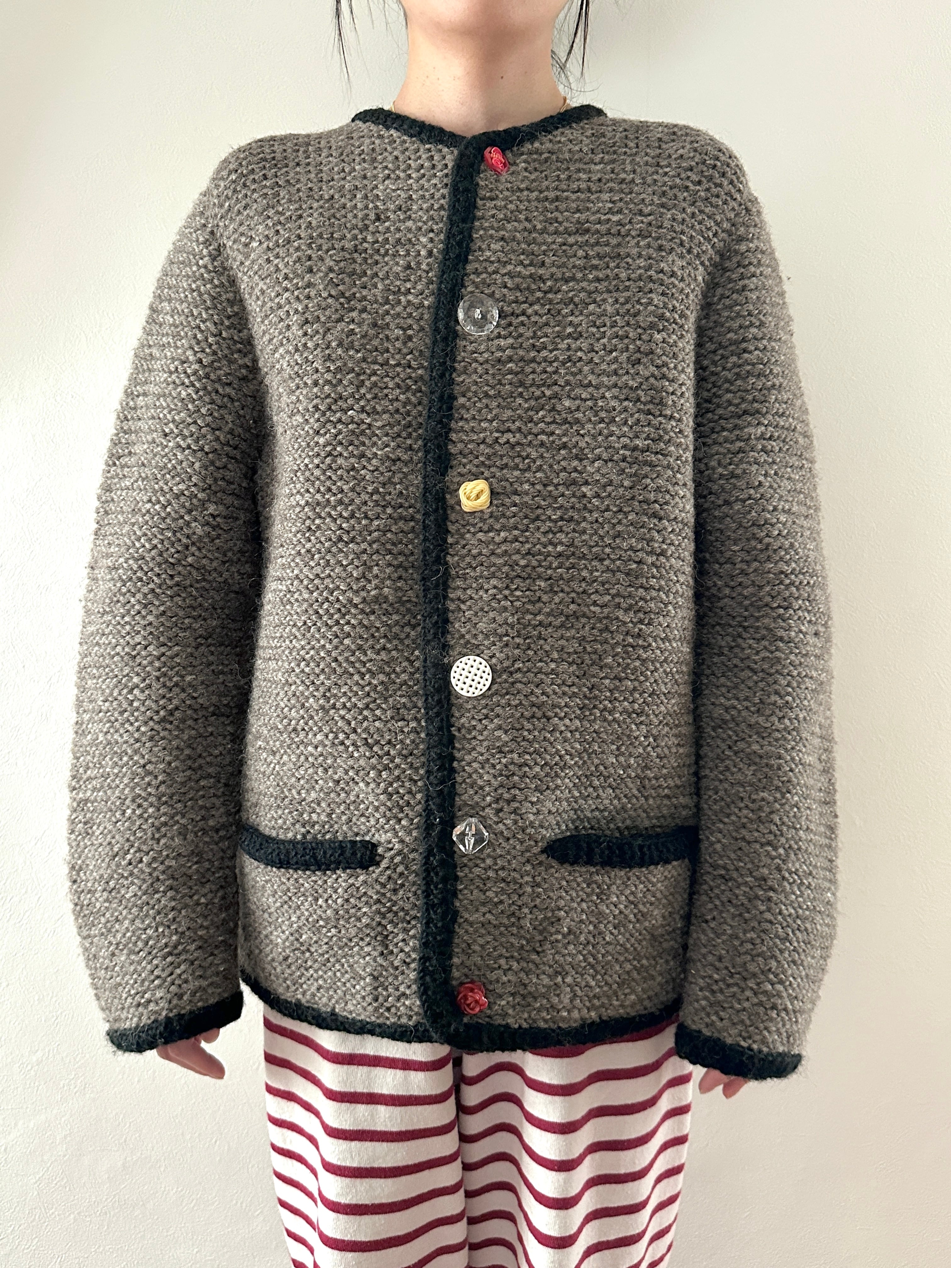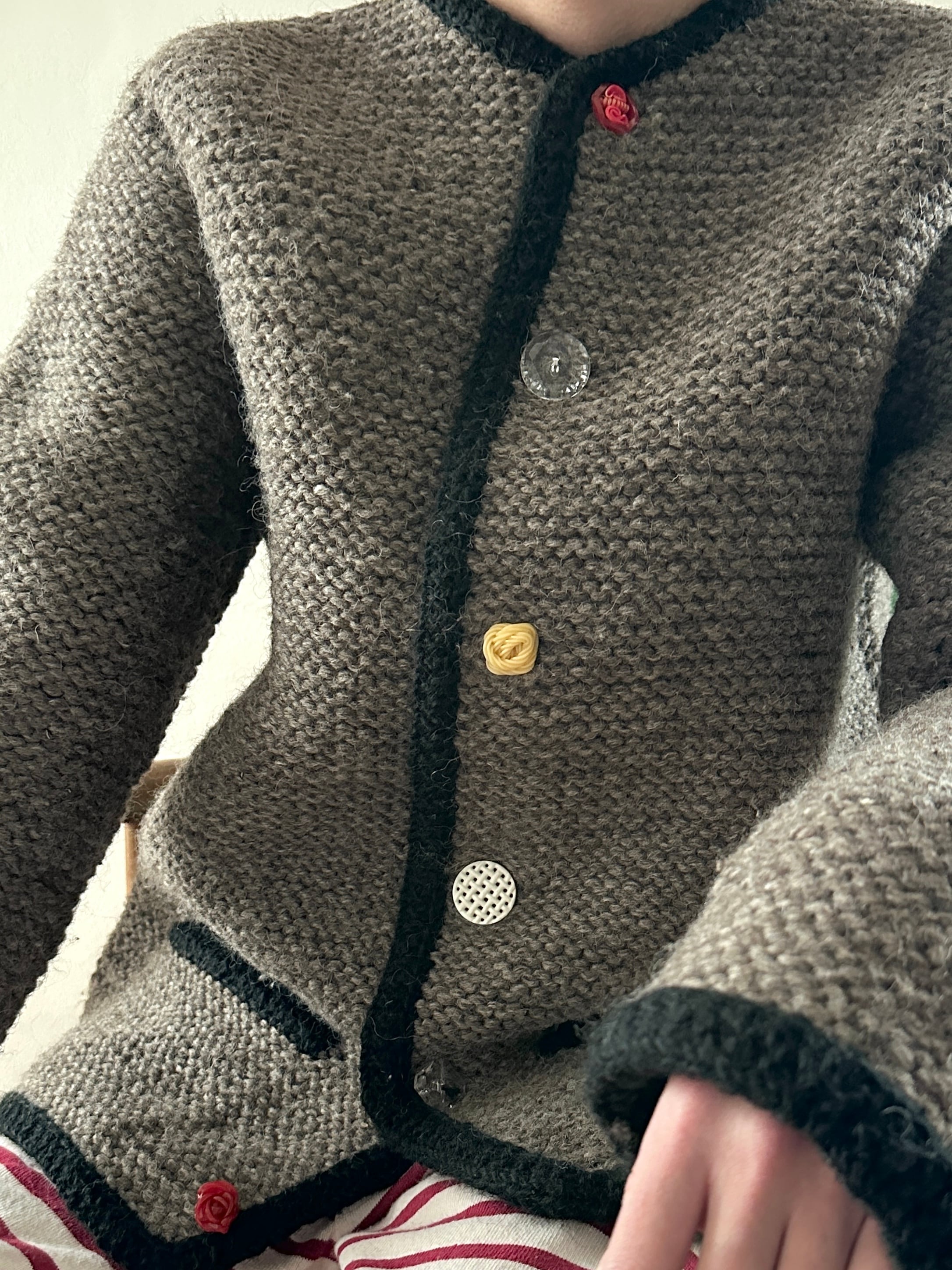 ビンテージセルロイドのボタンと模造クリスタルボタンが付いたウールニットジャケット。