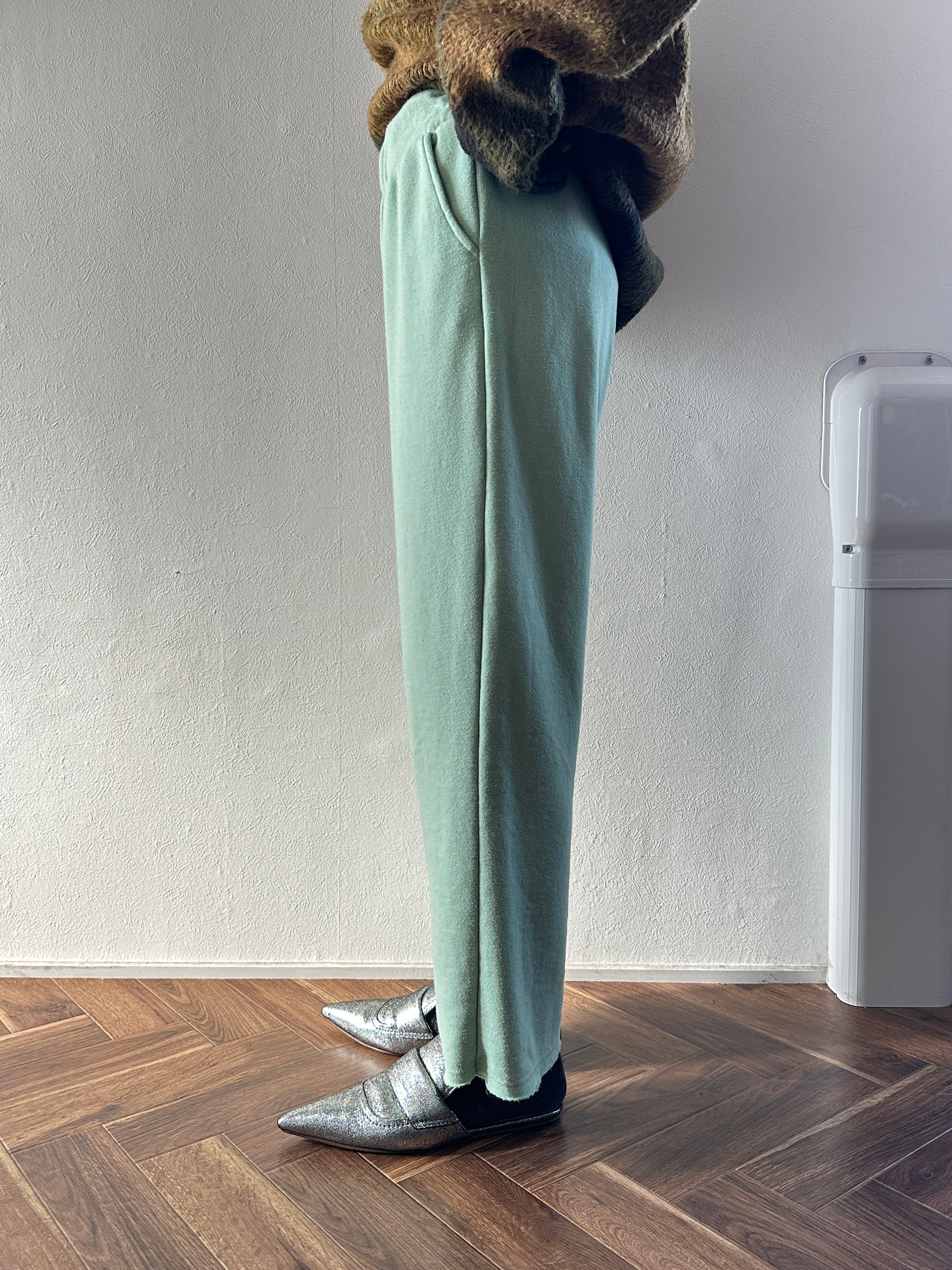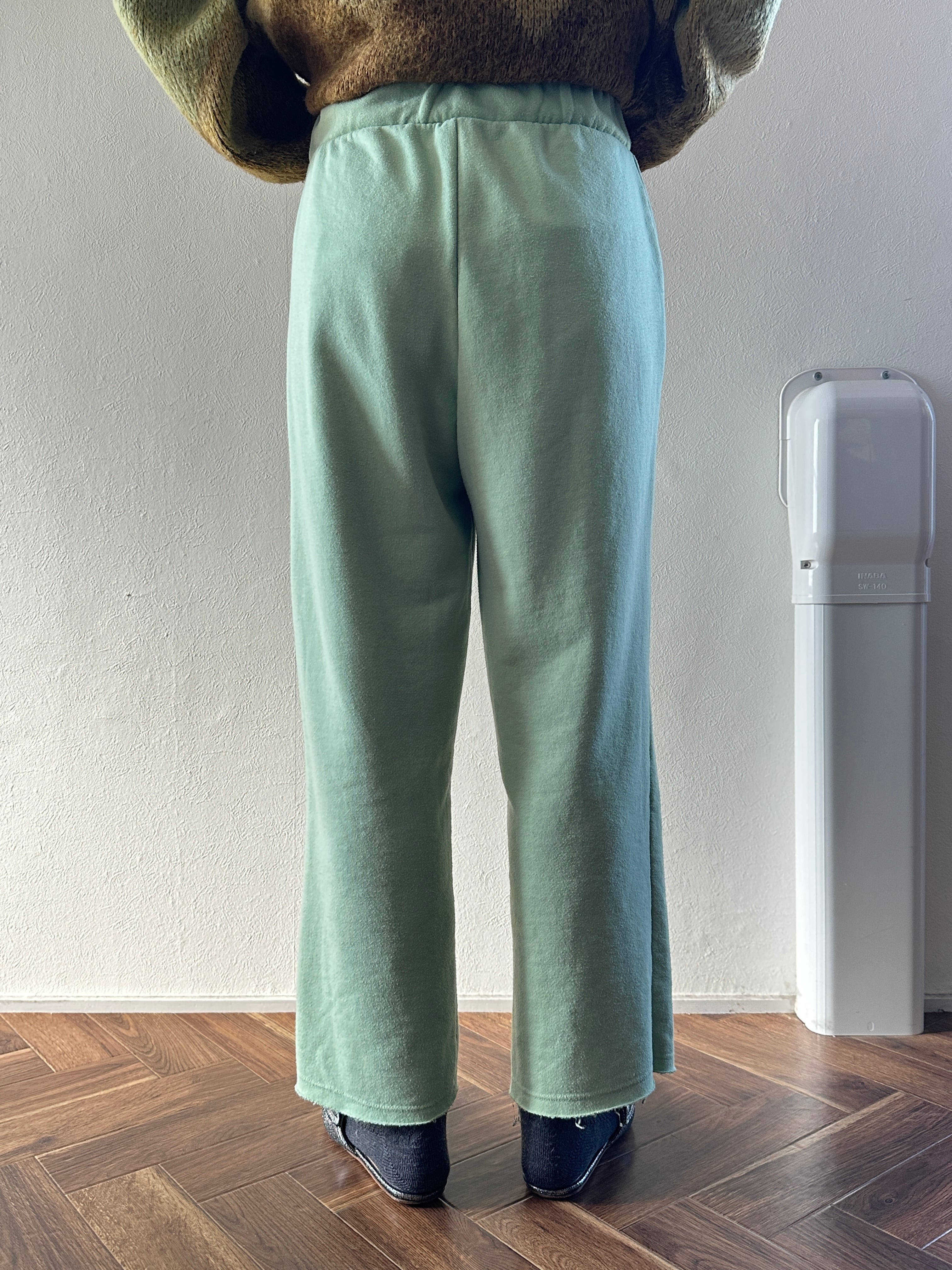 裾がカットオフデザインのスウェットパンツ。