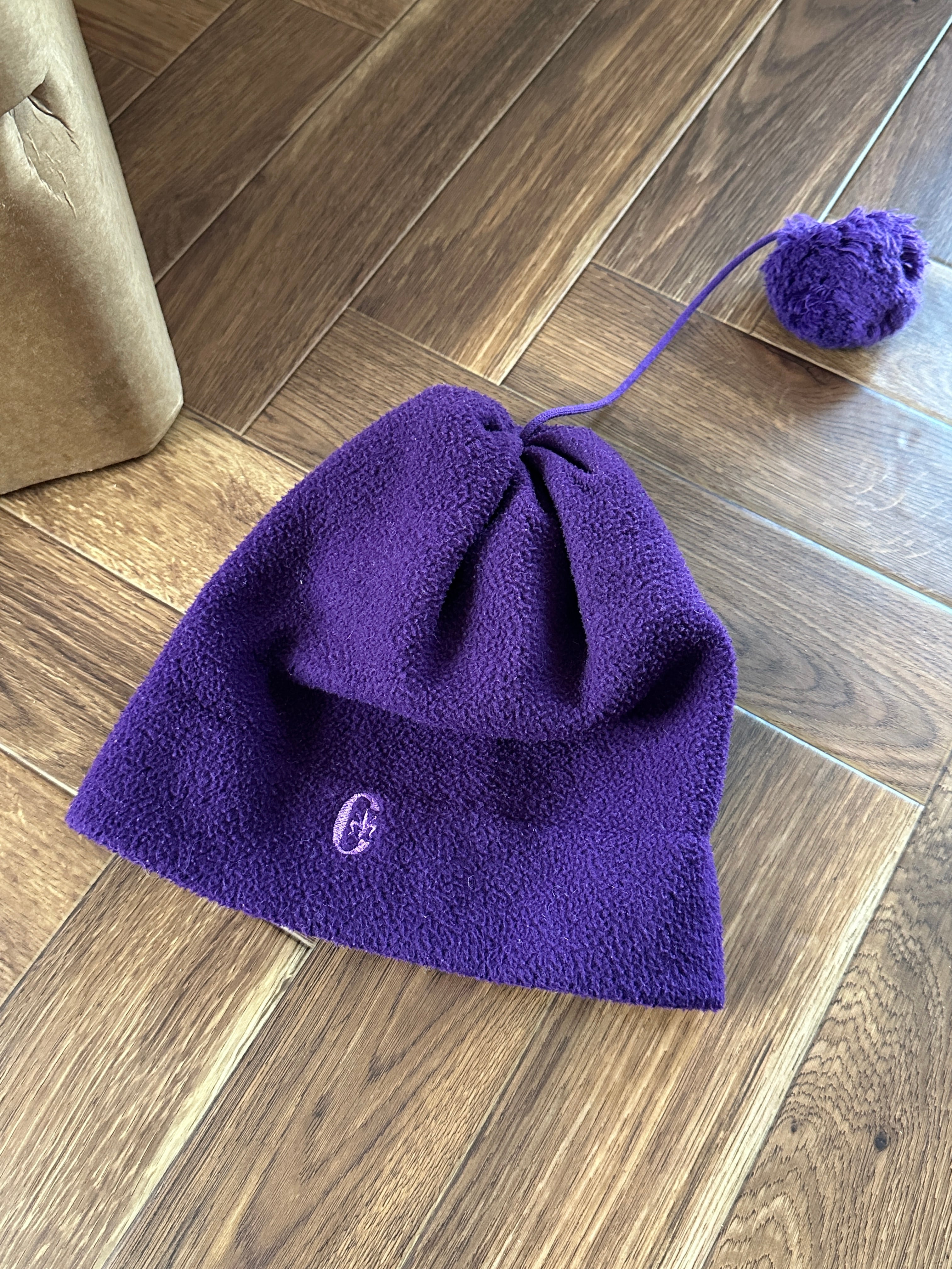 フリース素材のポンポンが付いたキャップ。