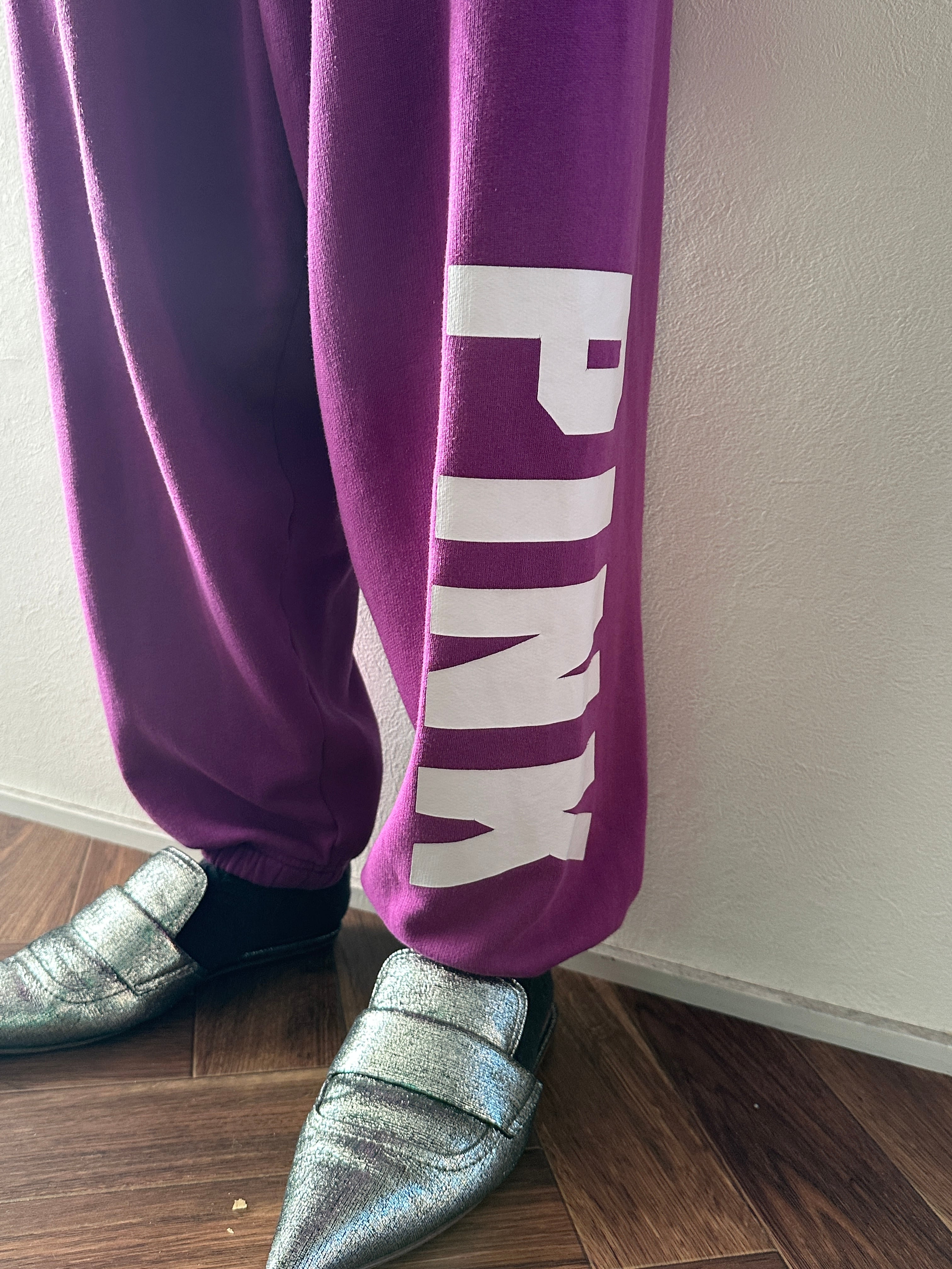 紫色なのに『PINK』なスウェットパンツ。