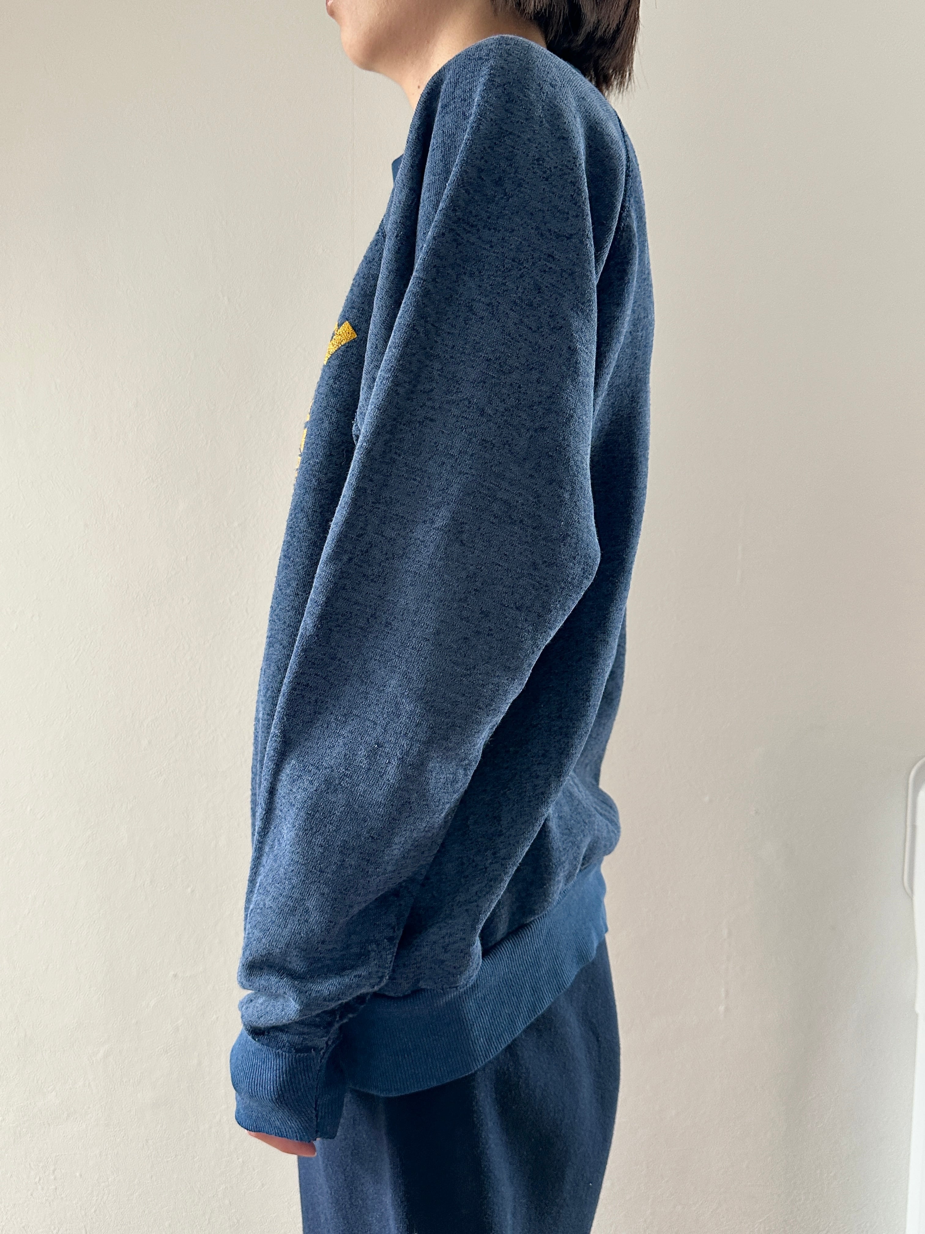 ネイビー地に黄色のバスデザインスウェット。