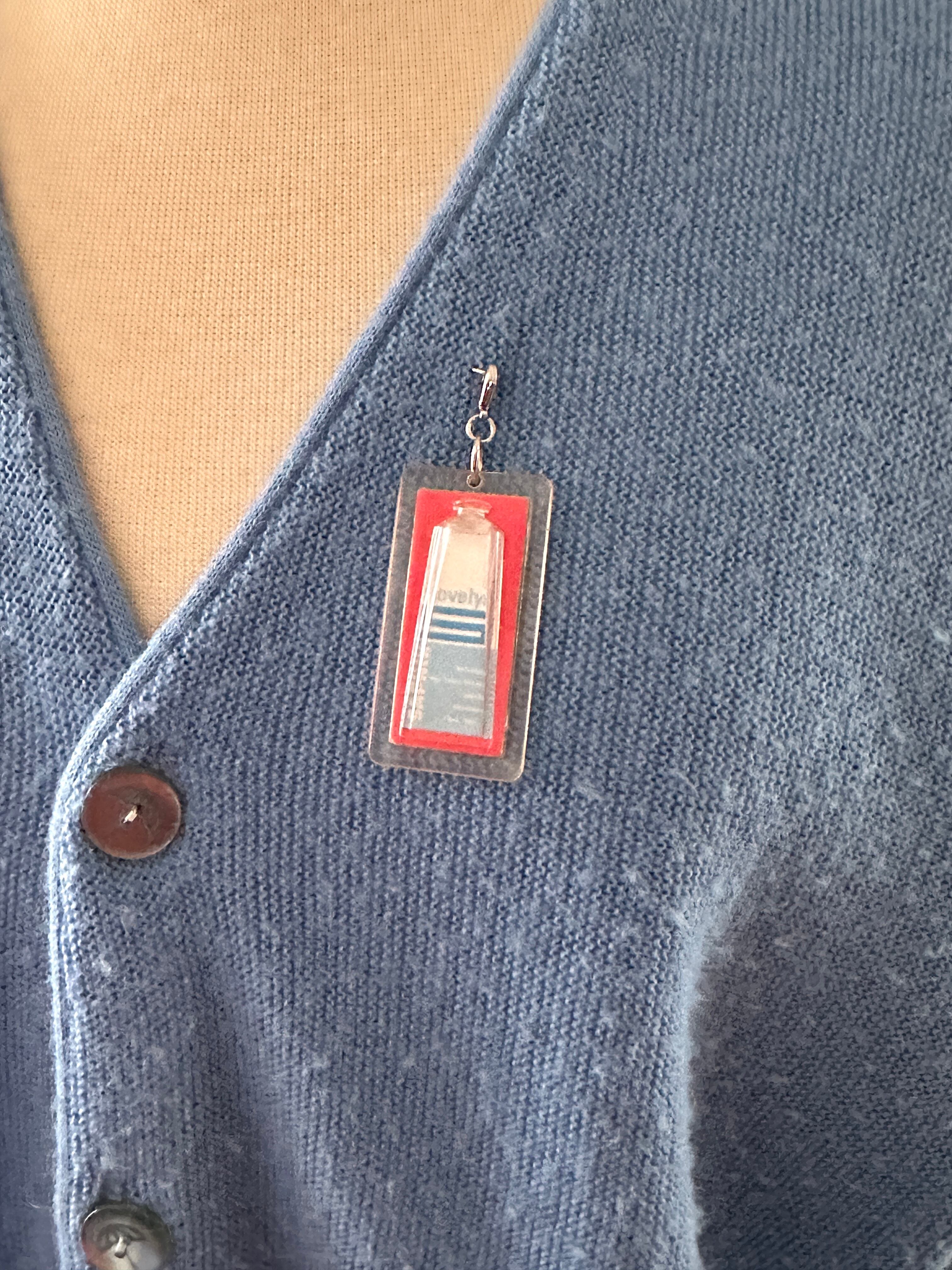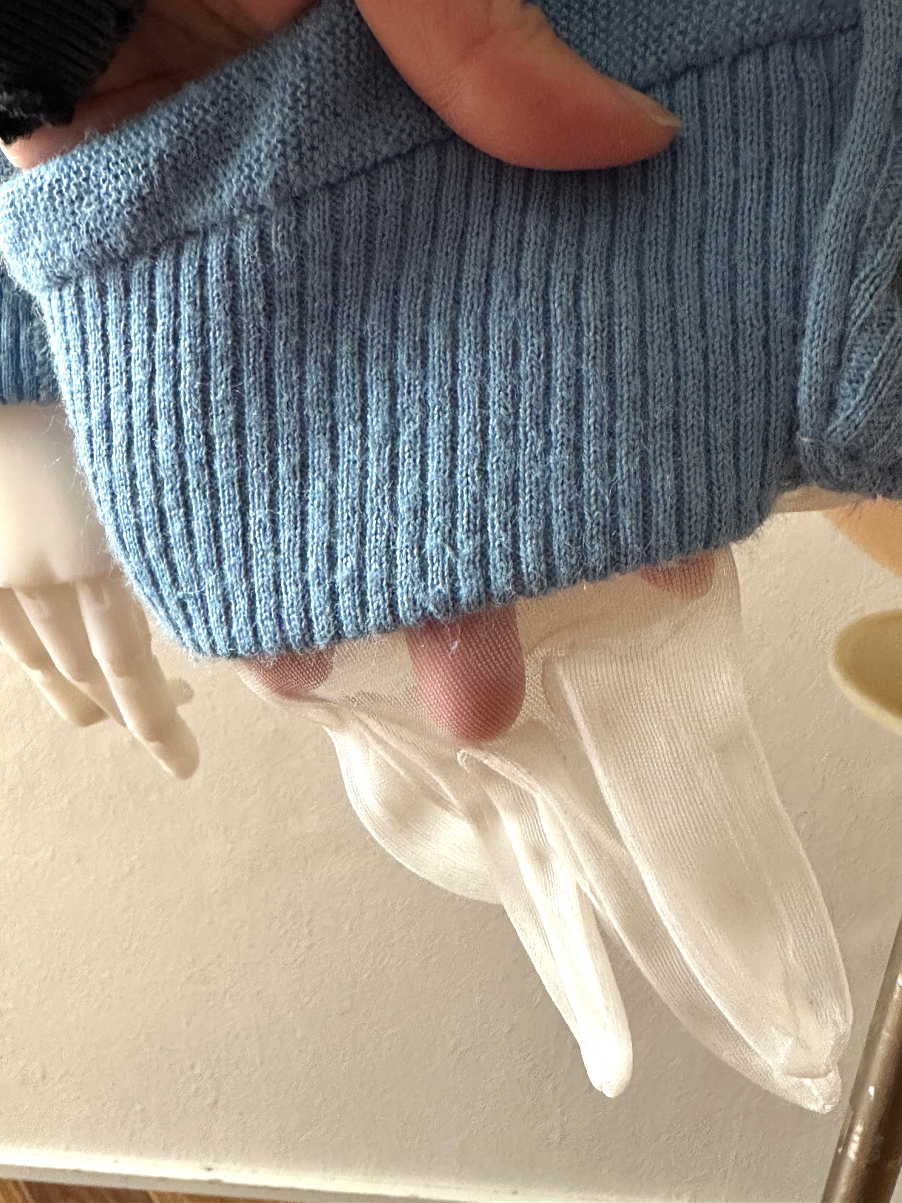 シースルーのグローブをポケットにした古着のカーディガンリメイクとなります。