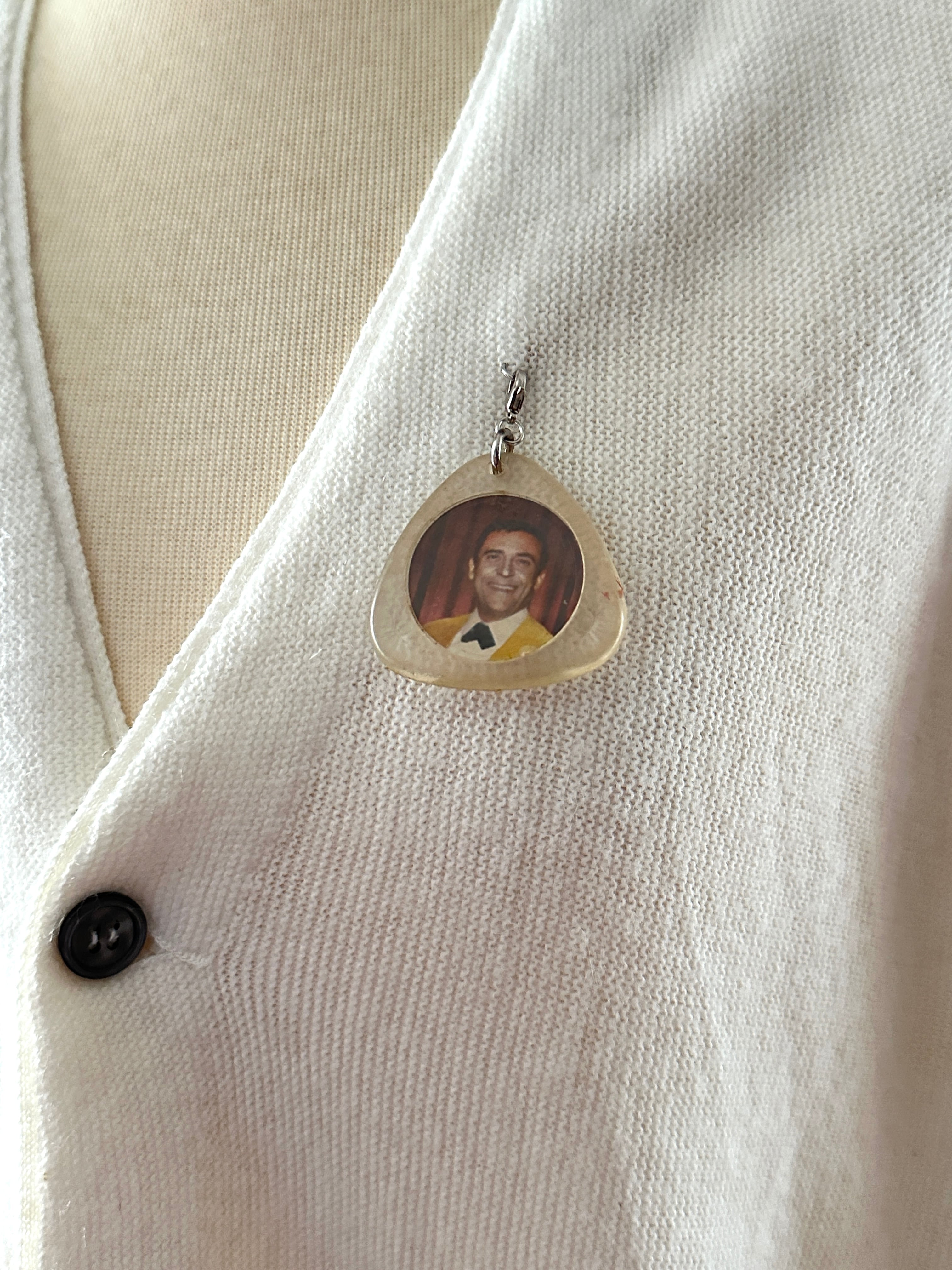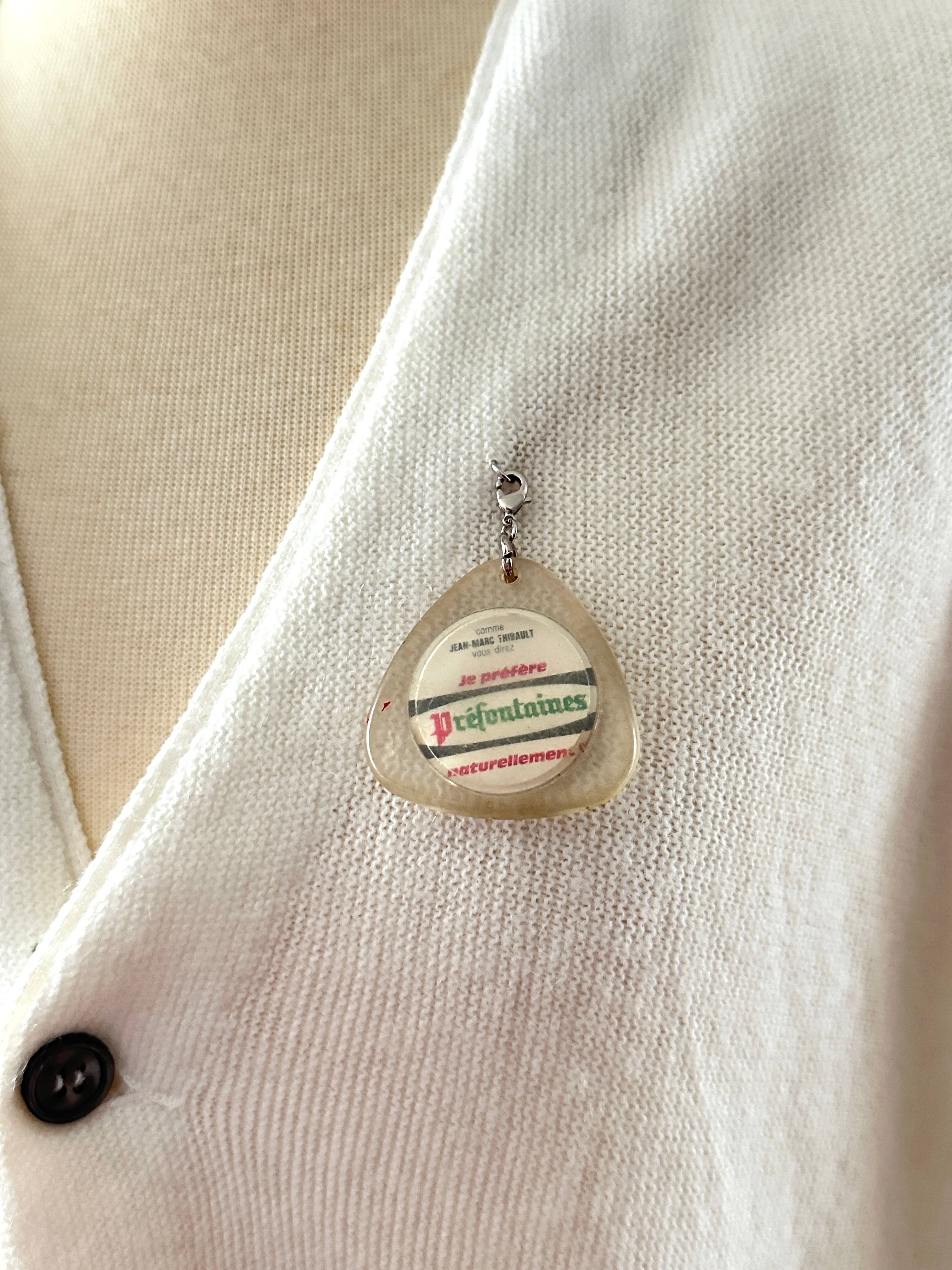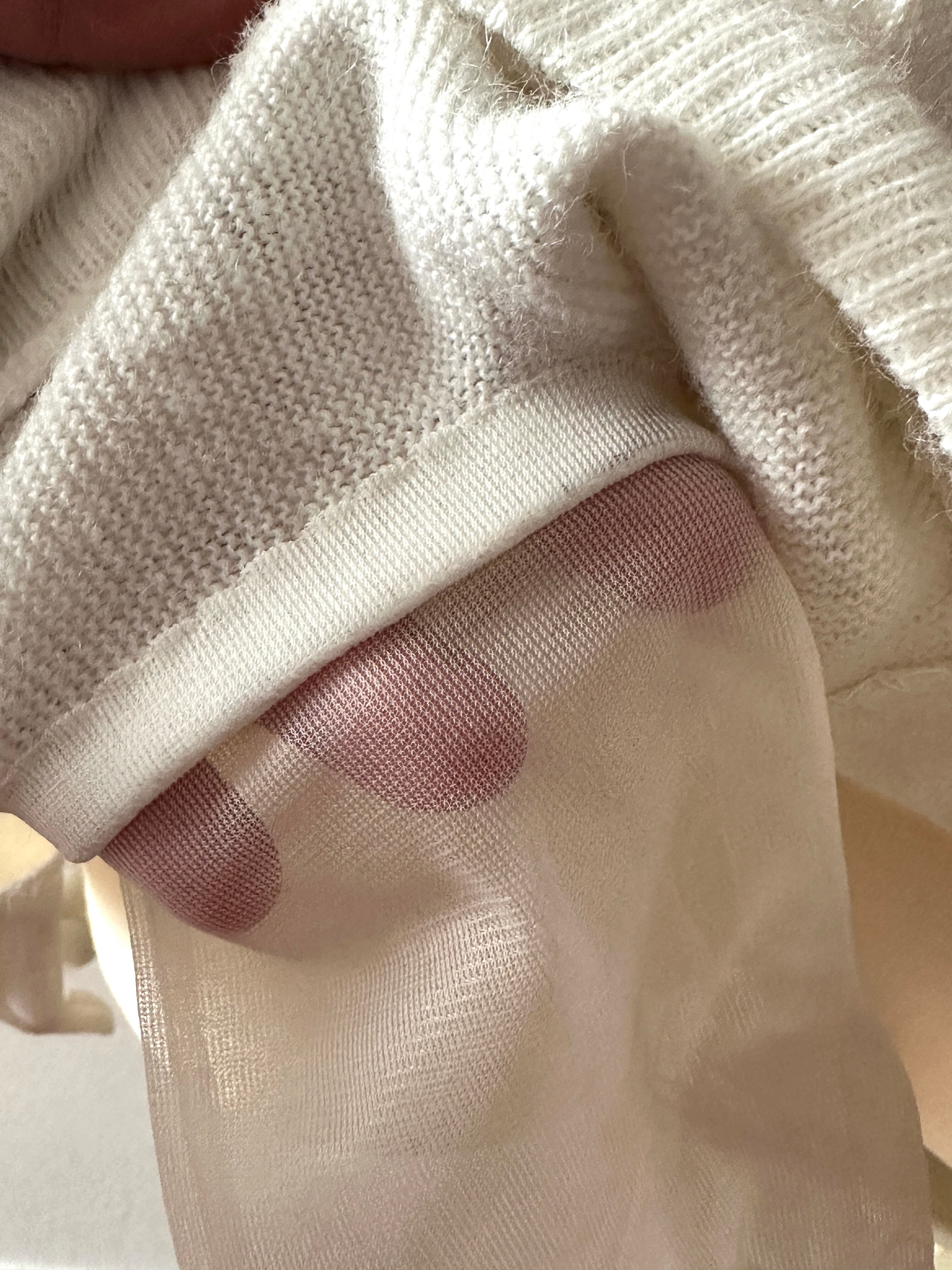 シースルーのグローブをポケットにした古着のカーディガンリメイクとなります。