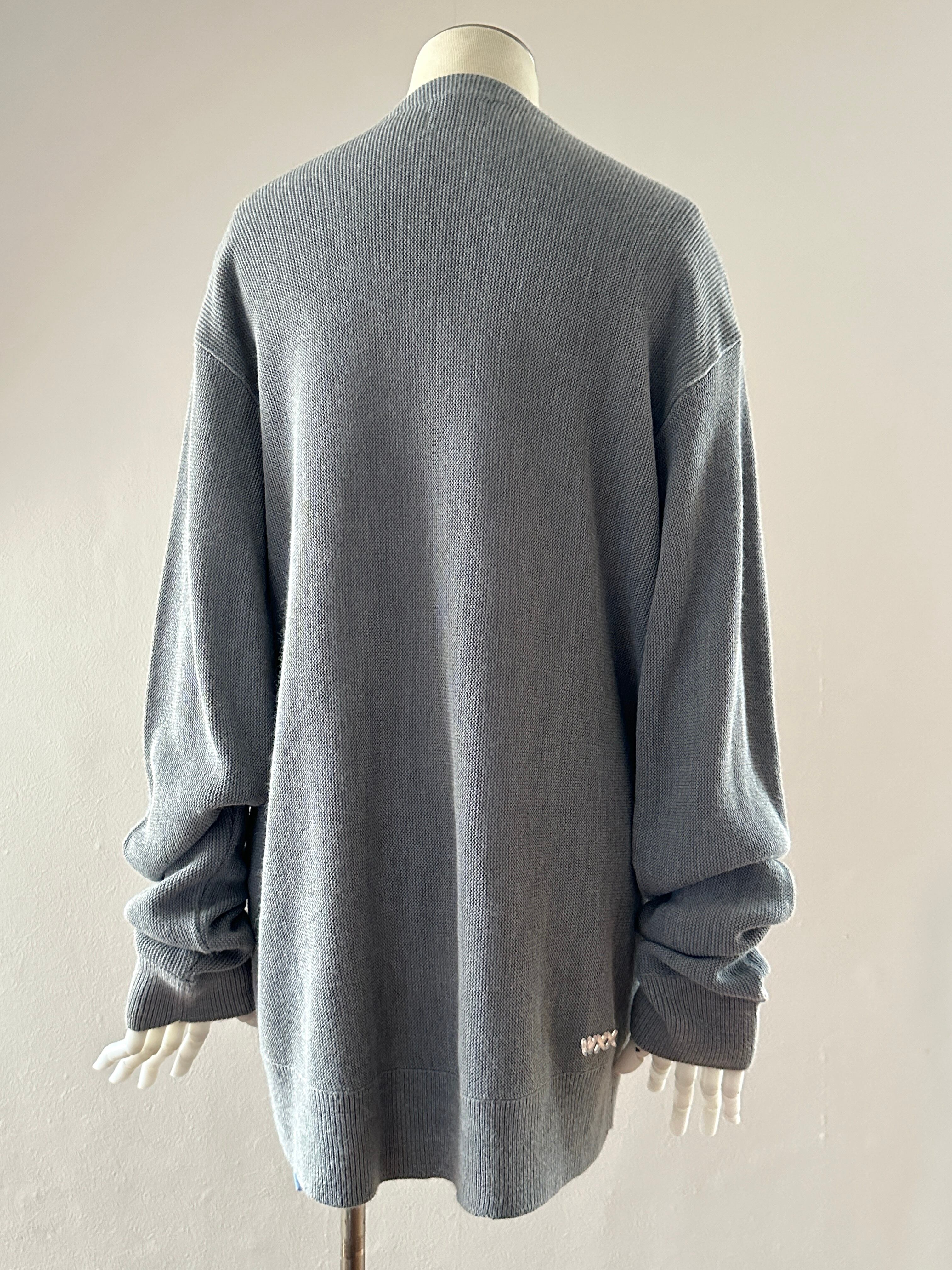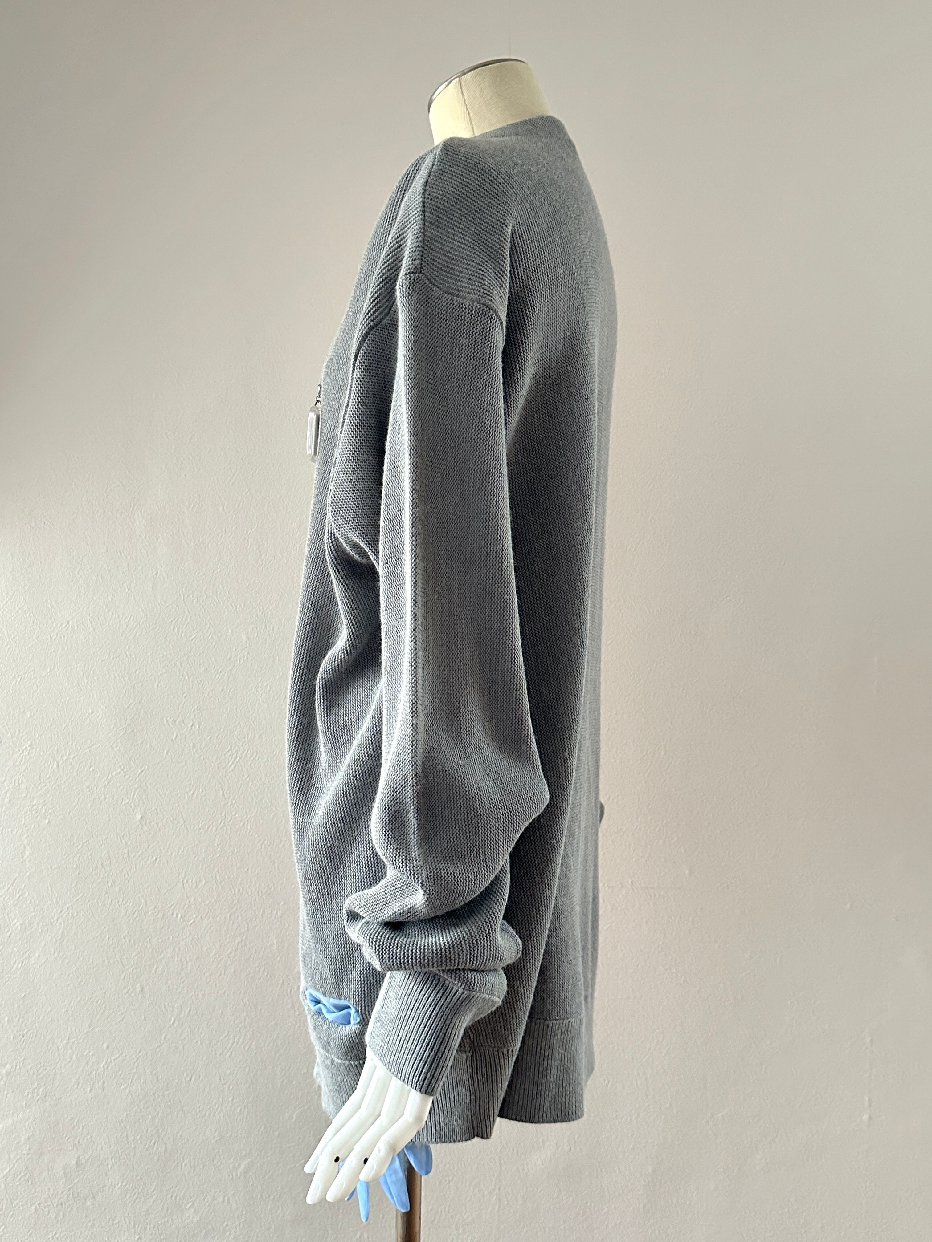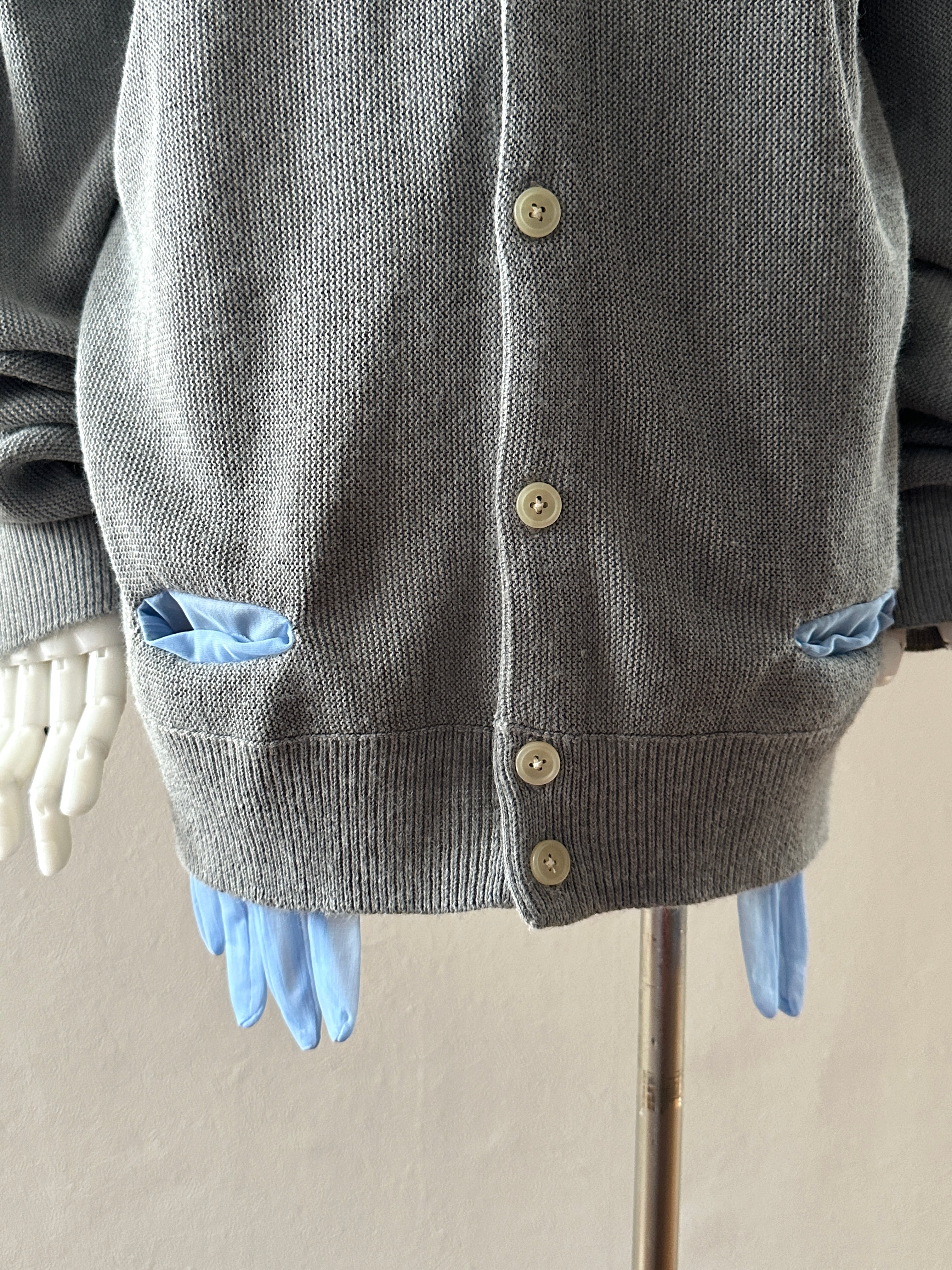 【WXX】globe pocket cardigan (light gray× blue)L ※シミ有り