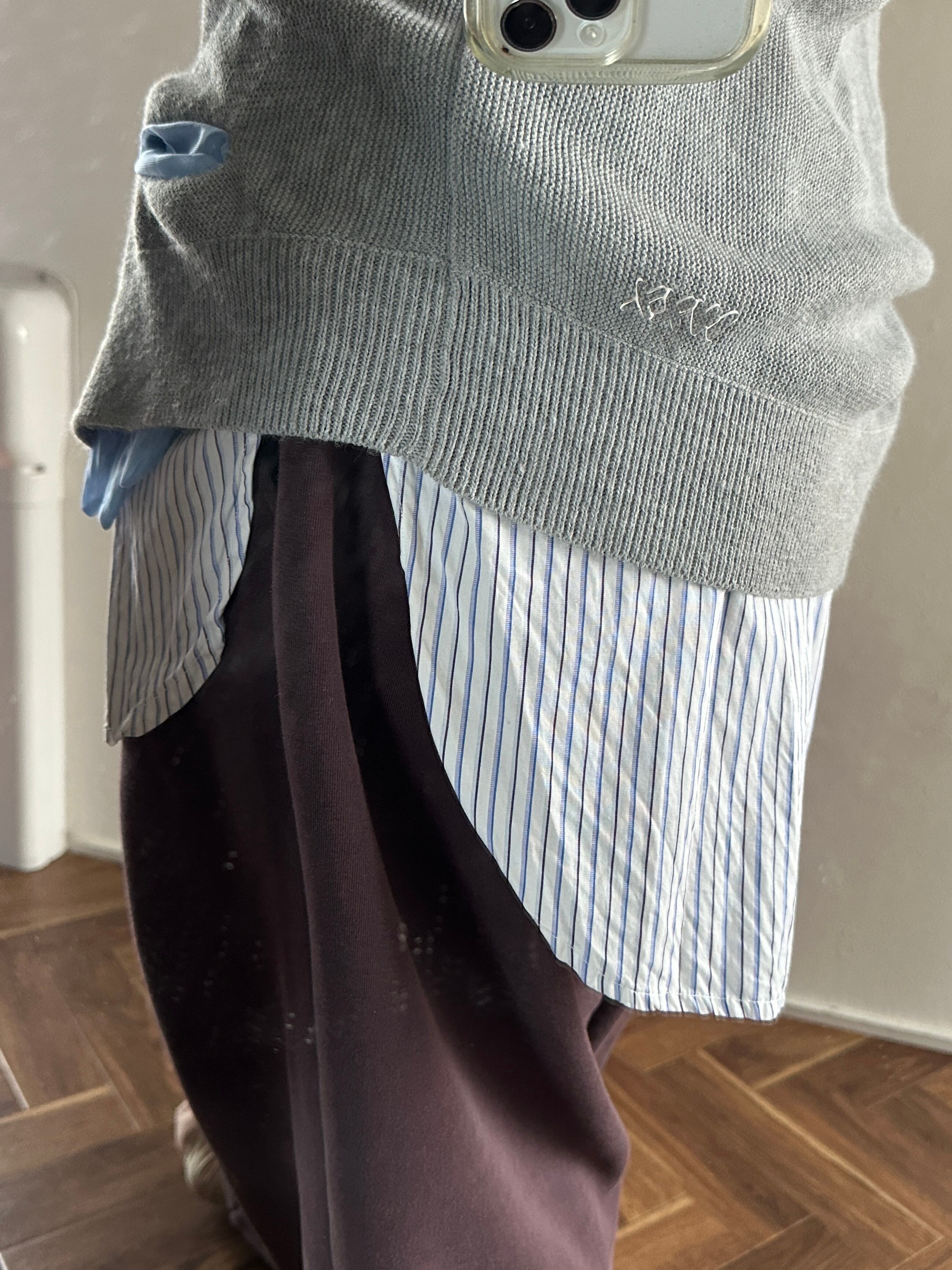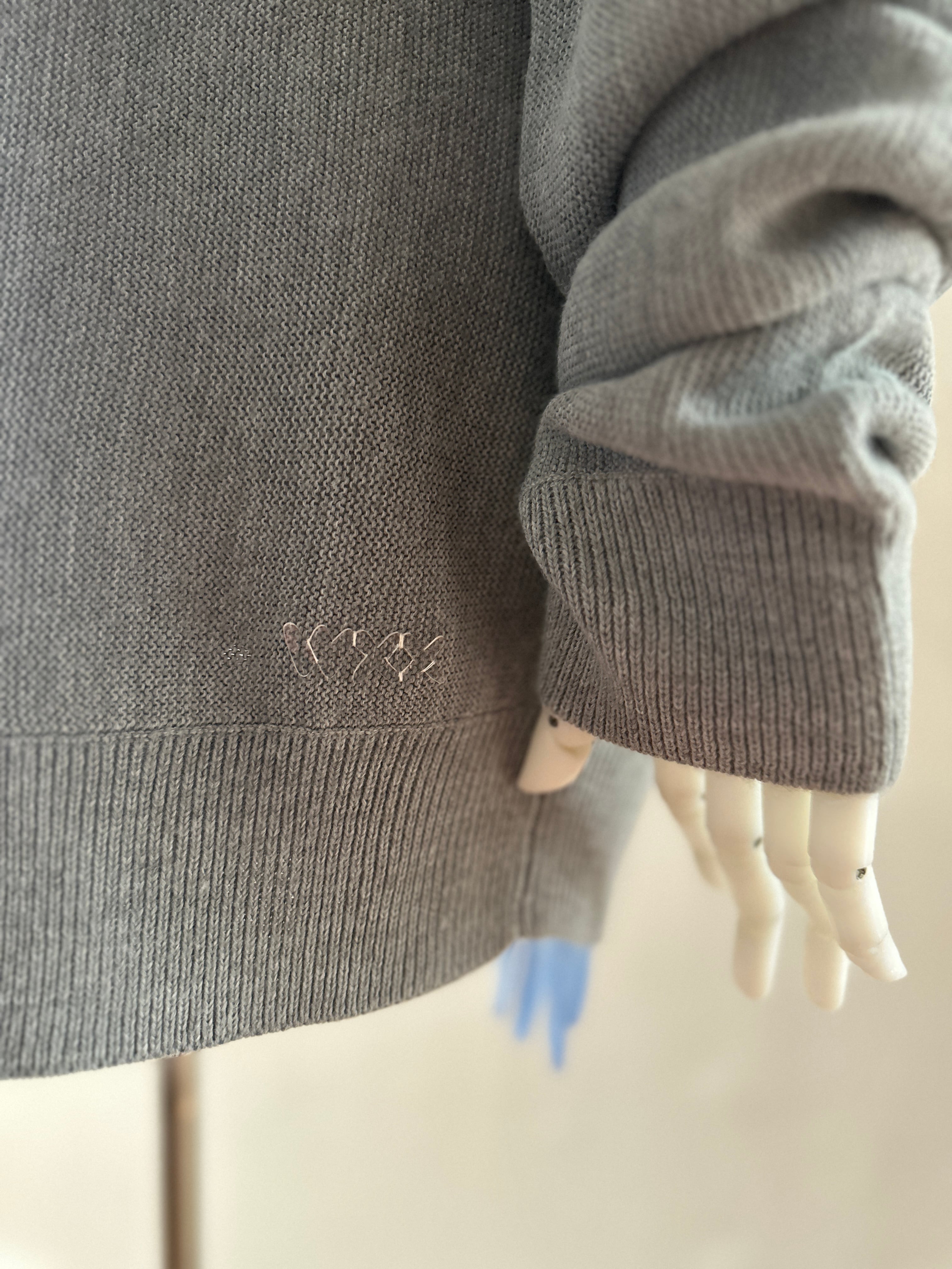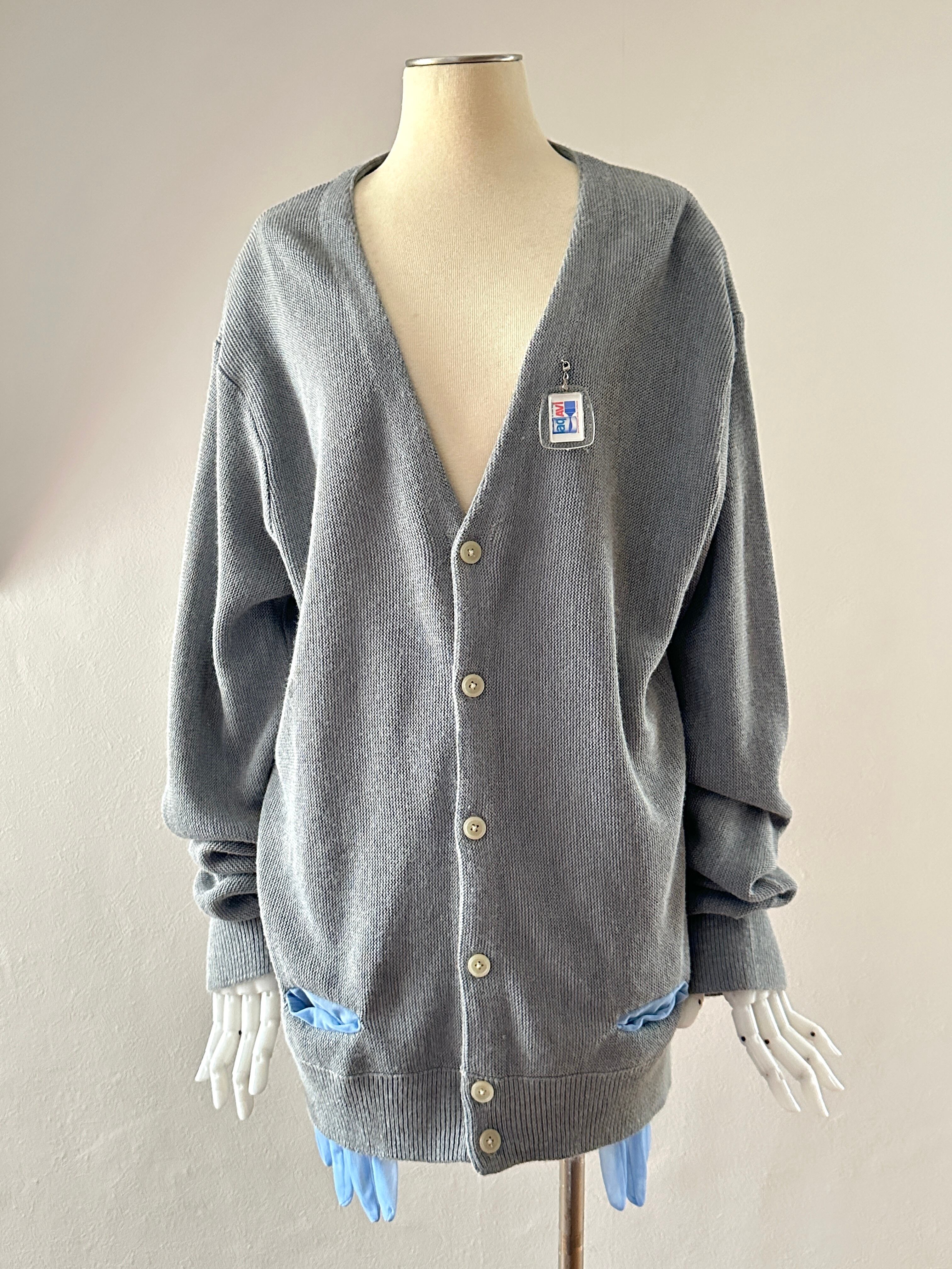 【WXX】globe pocket cardigan (light gray× blue)L ※シミ有り