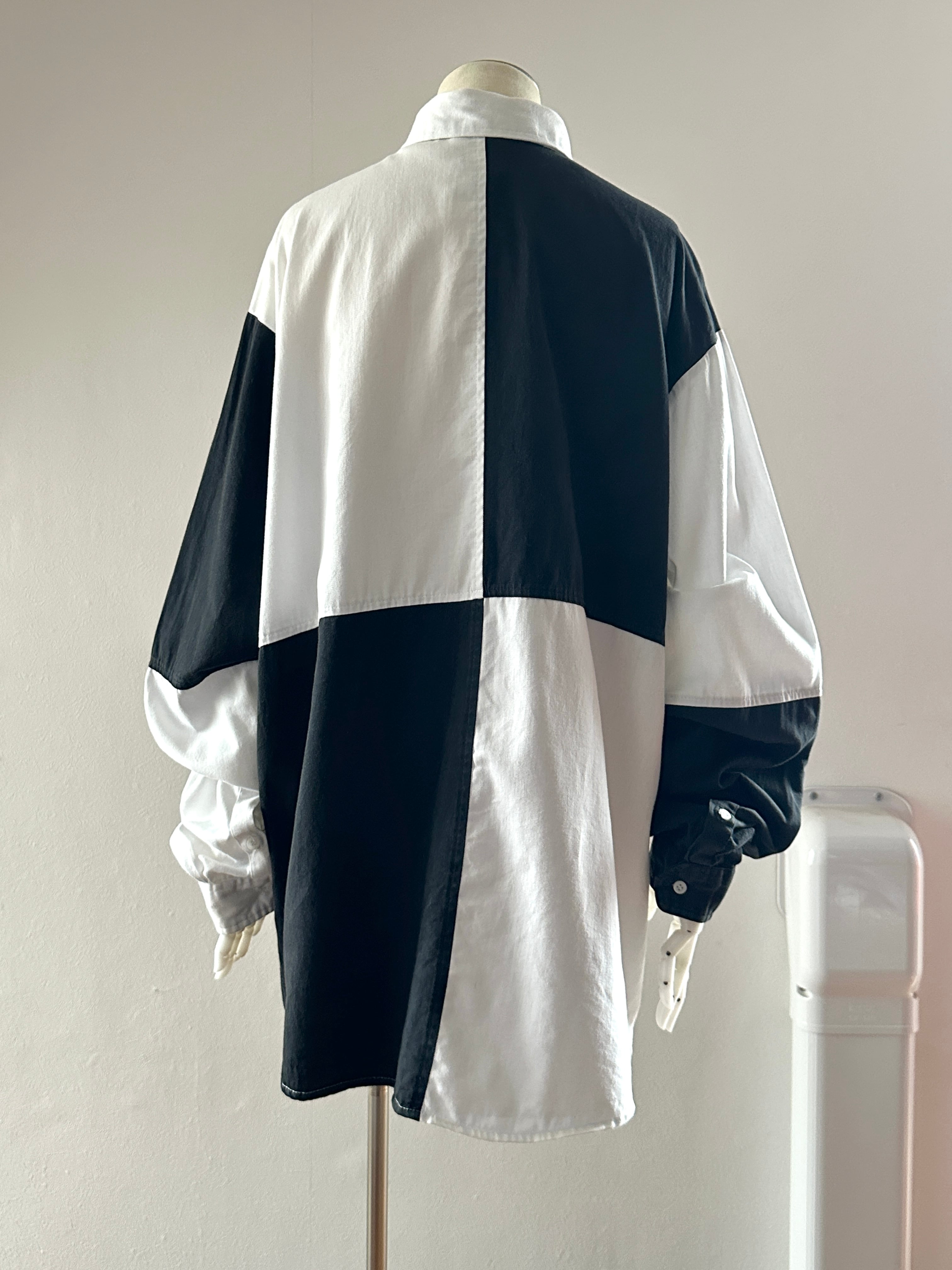 80-90's 白黒のバイカラー ロングスリーブ シャツ。