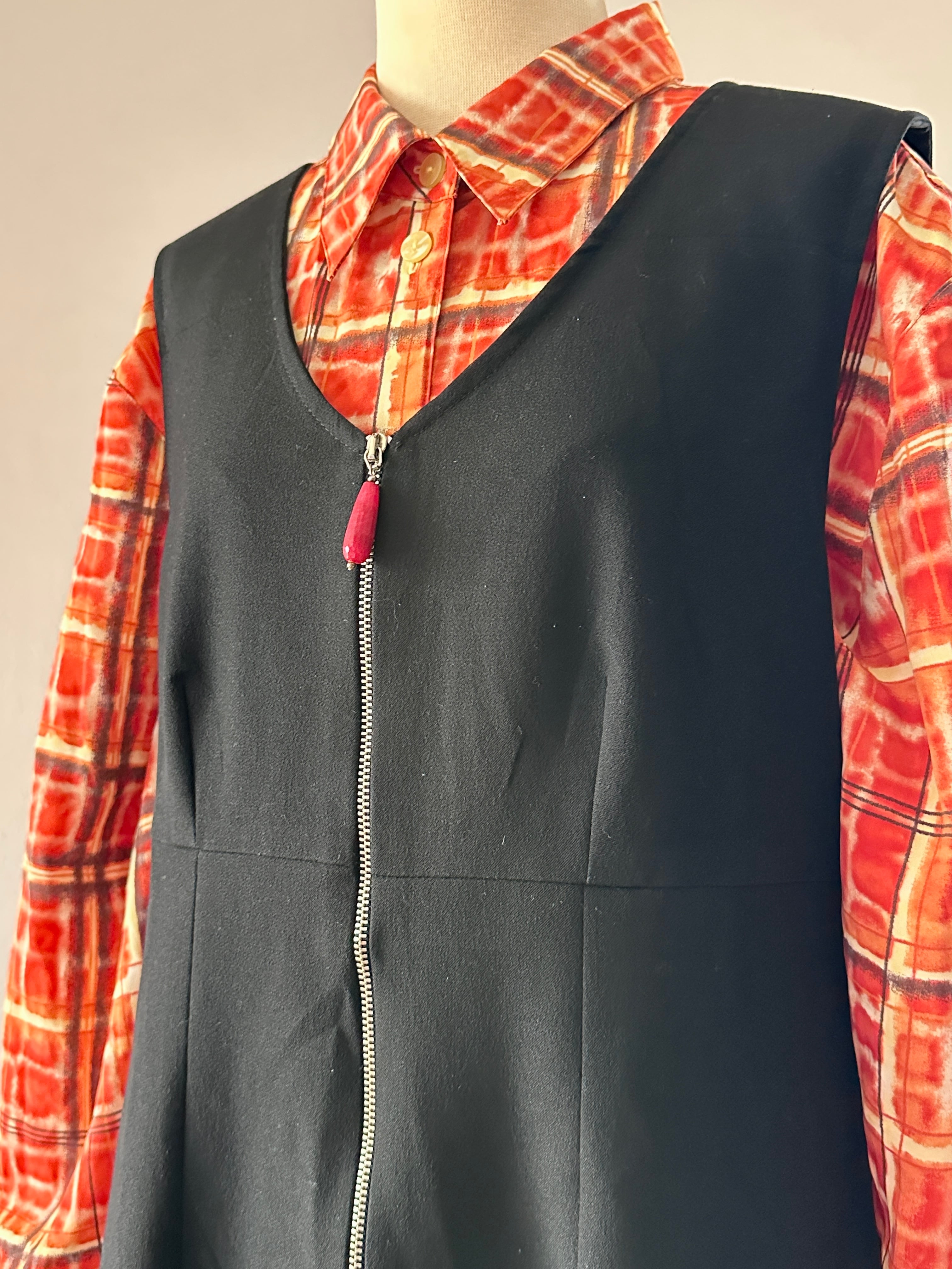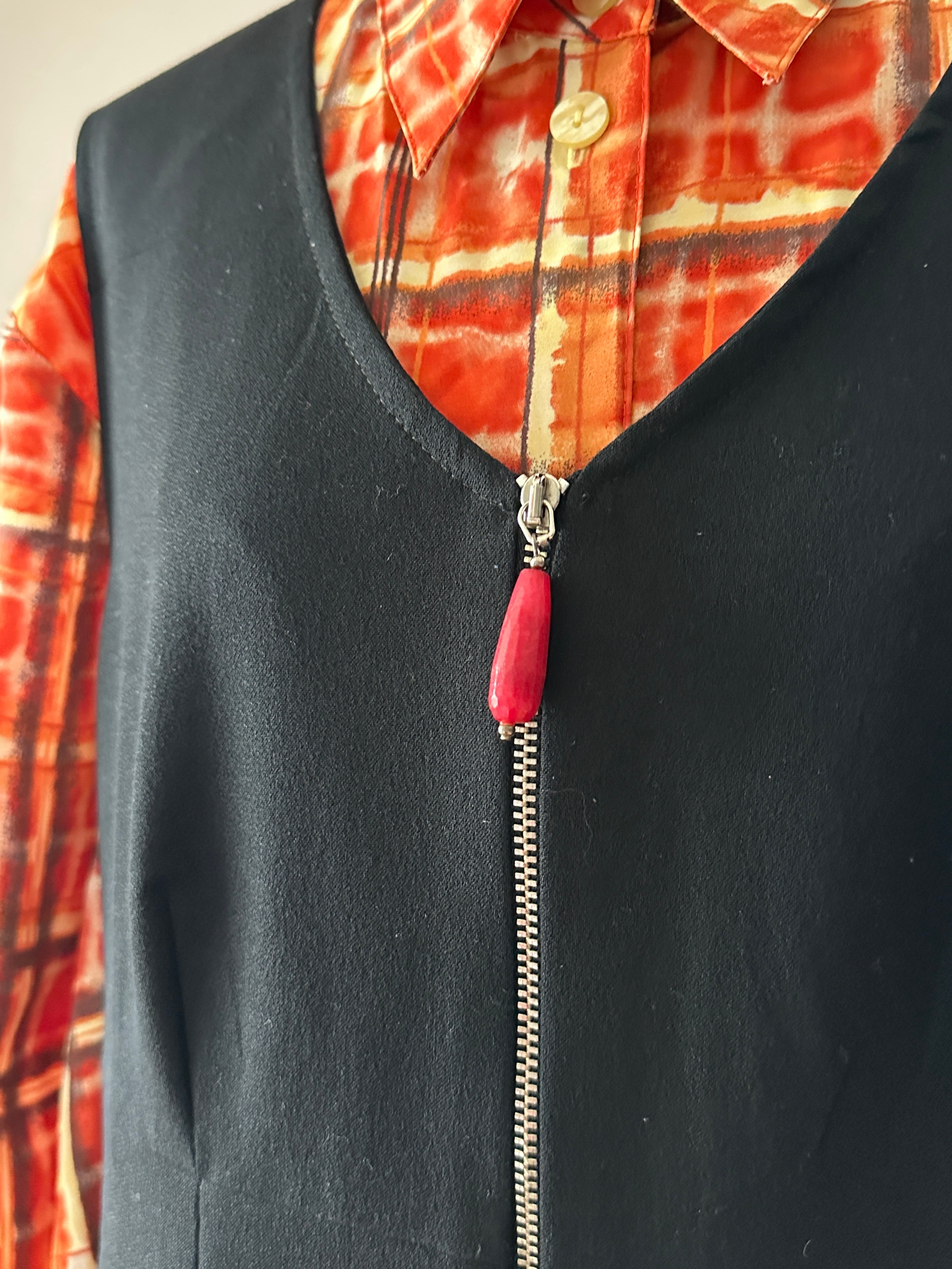 フロントのジッパーに付いた赤いビーズのチャームがアクセント◎