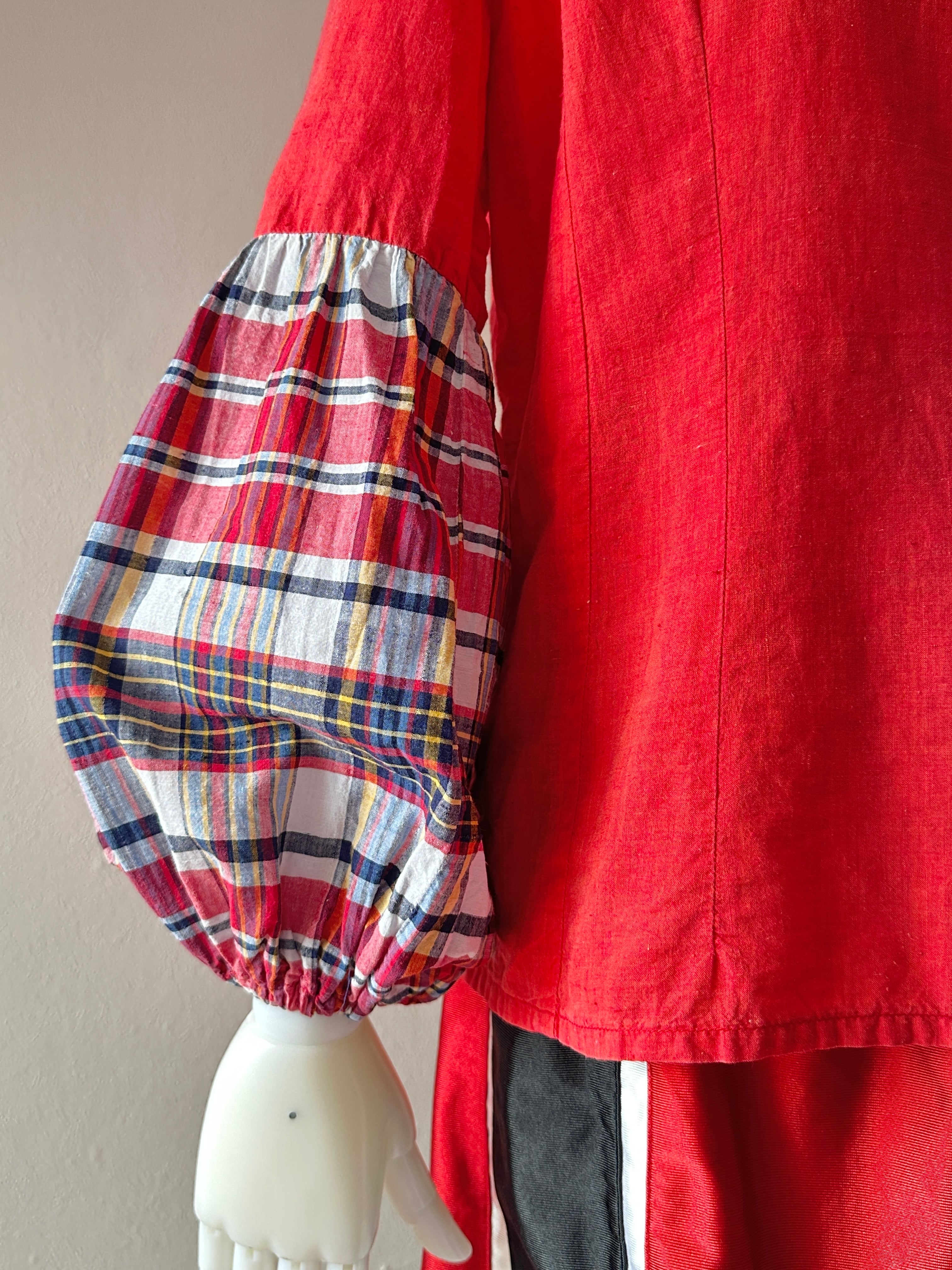 袖と襟のチェック生地の切り替えが可愛い◎