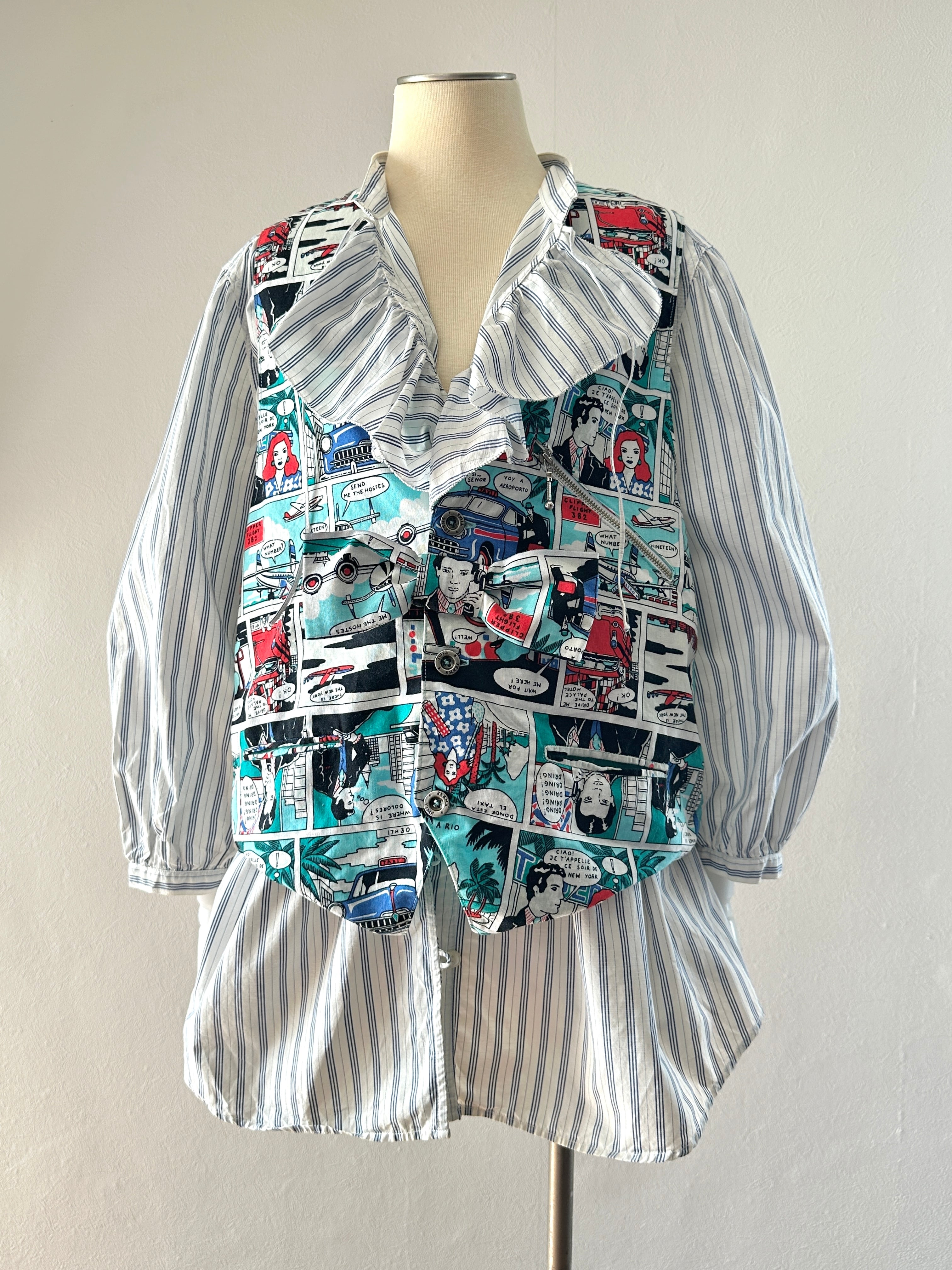 アメコミ柄のスーツベスト。