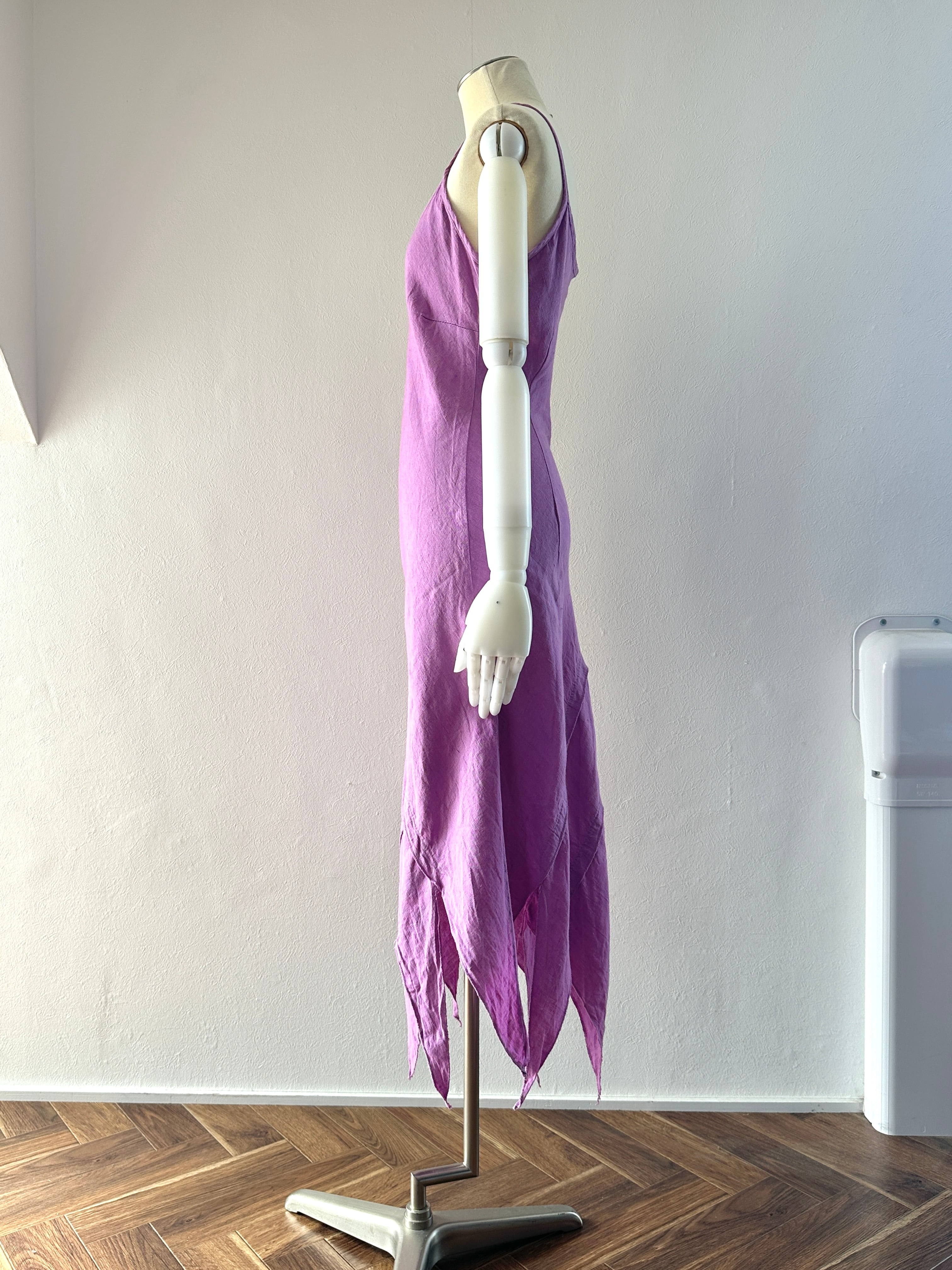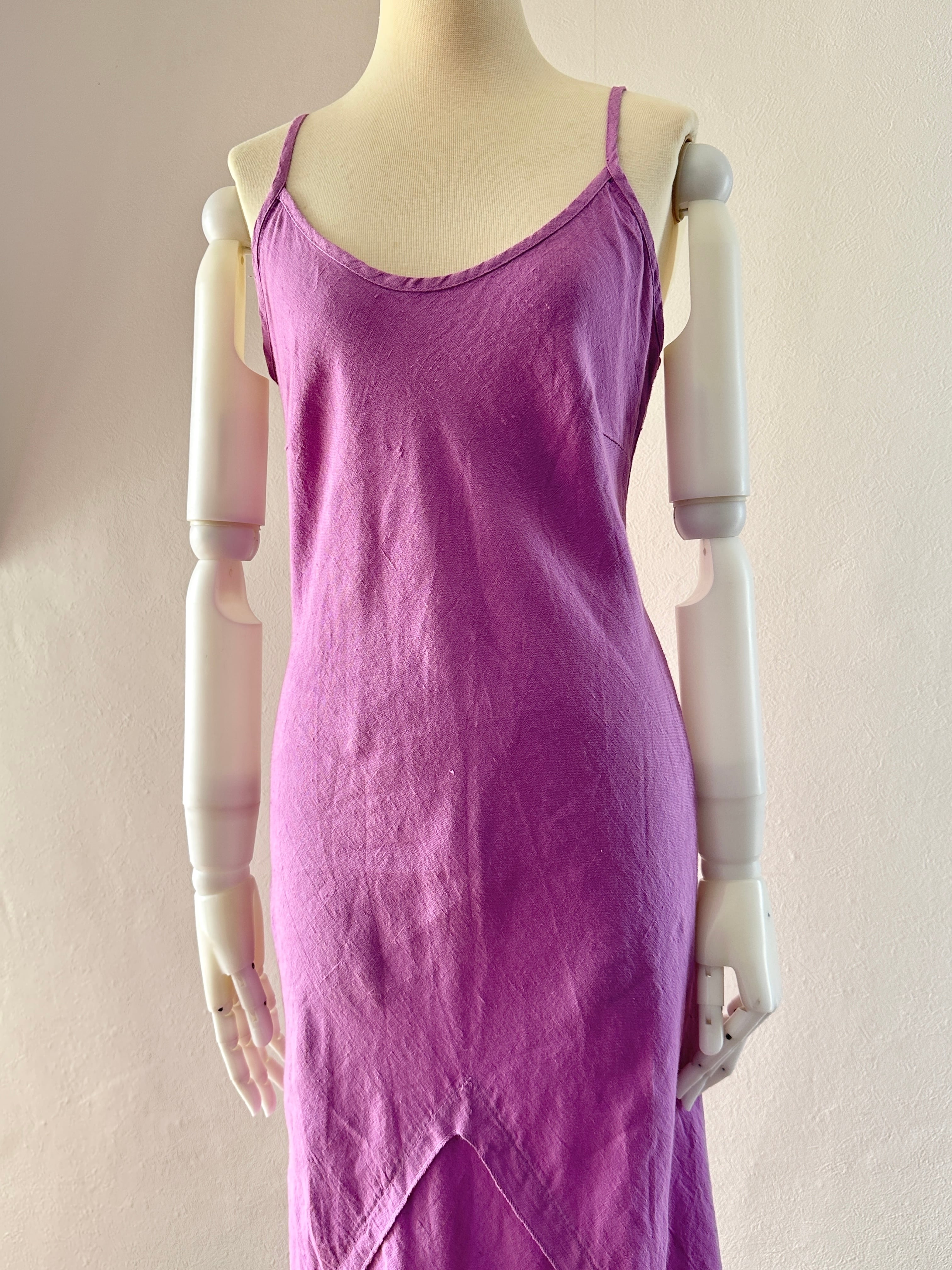 ランダムスリット リネン キャミソールワンピース。