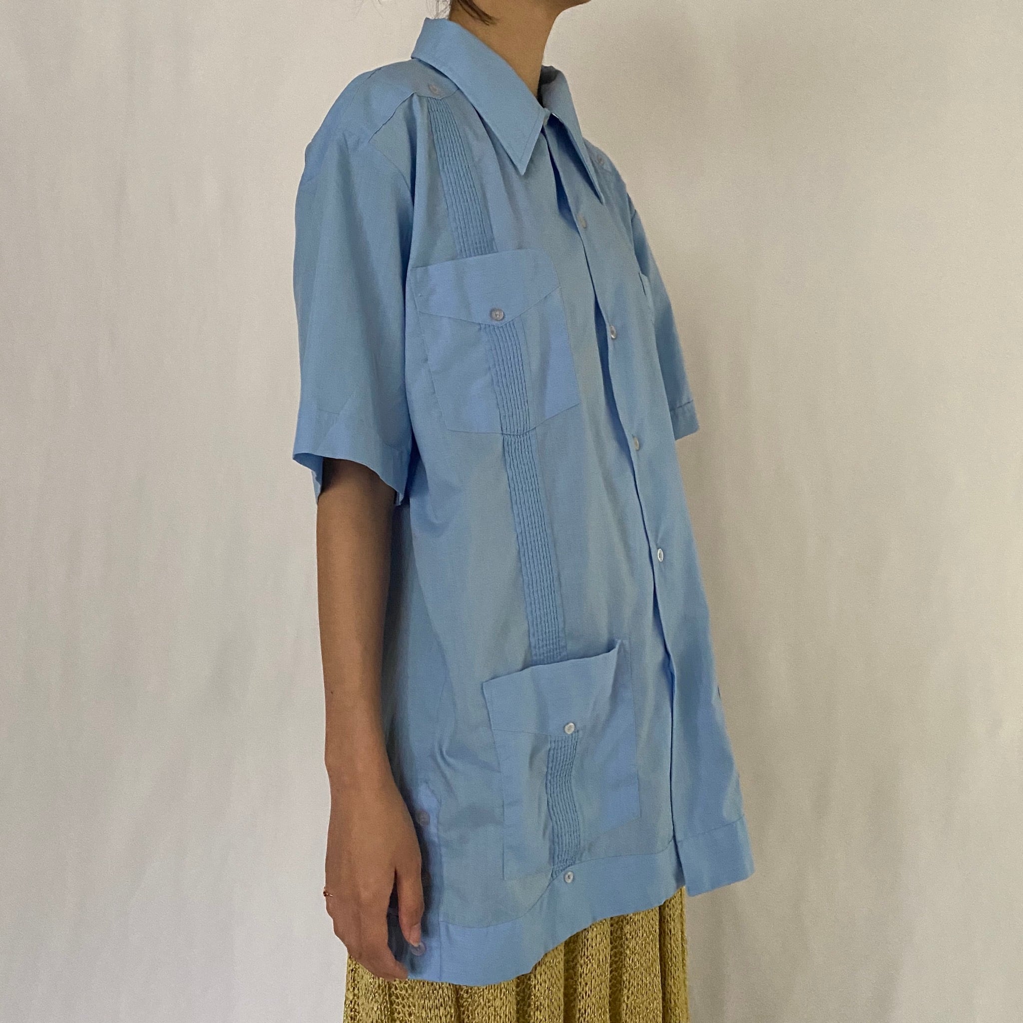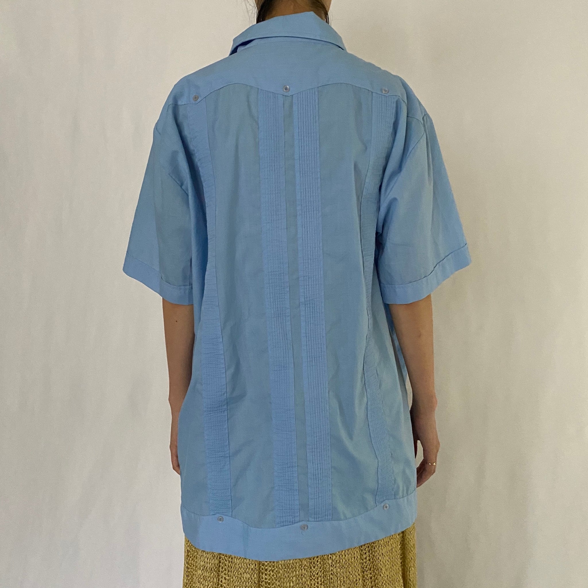 縦のプリーツが特徴のキューバシャツ。