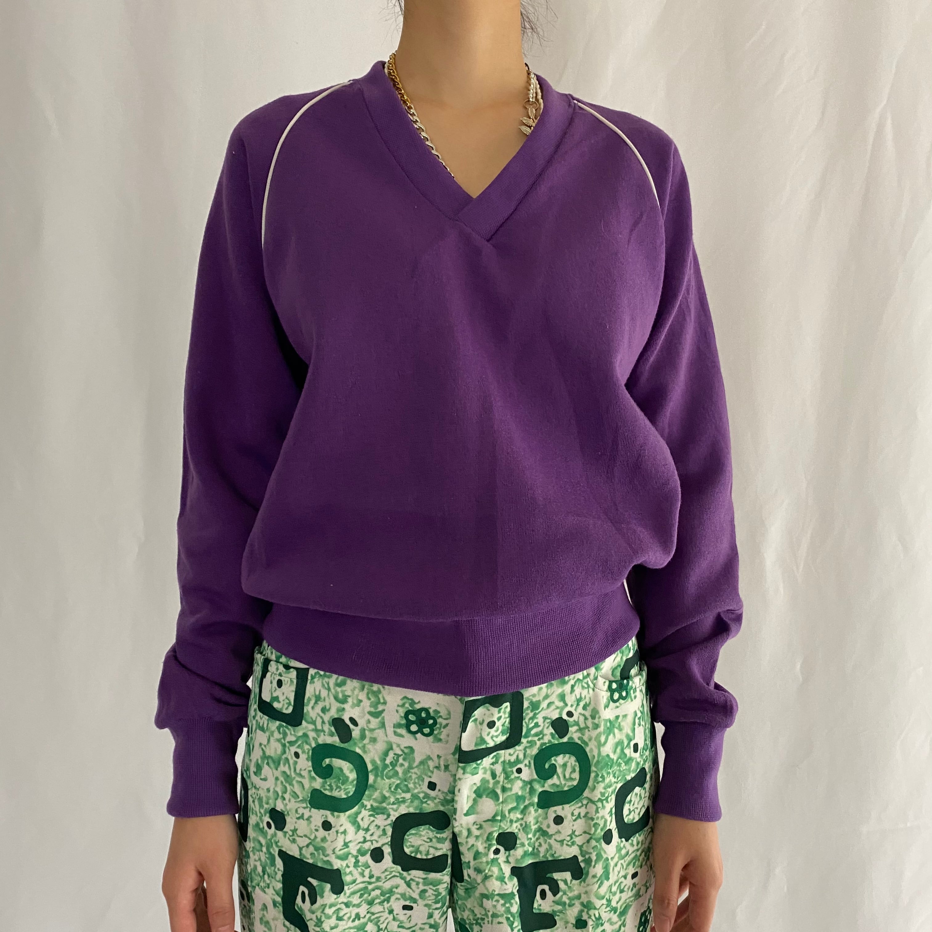 70〜80年代スポーツウェアのVネックラグランスリーブスウェット。