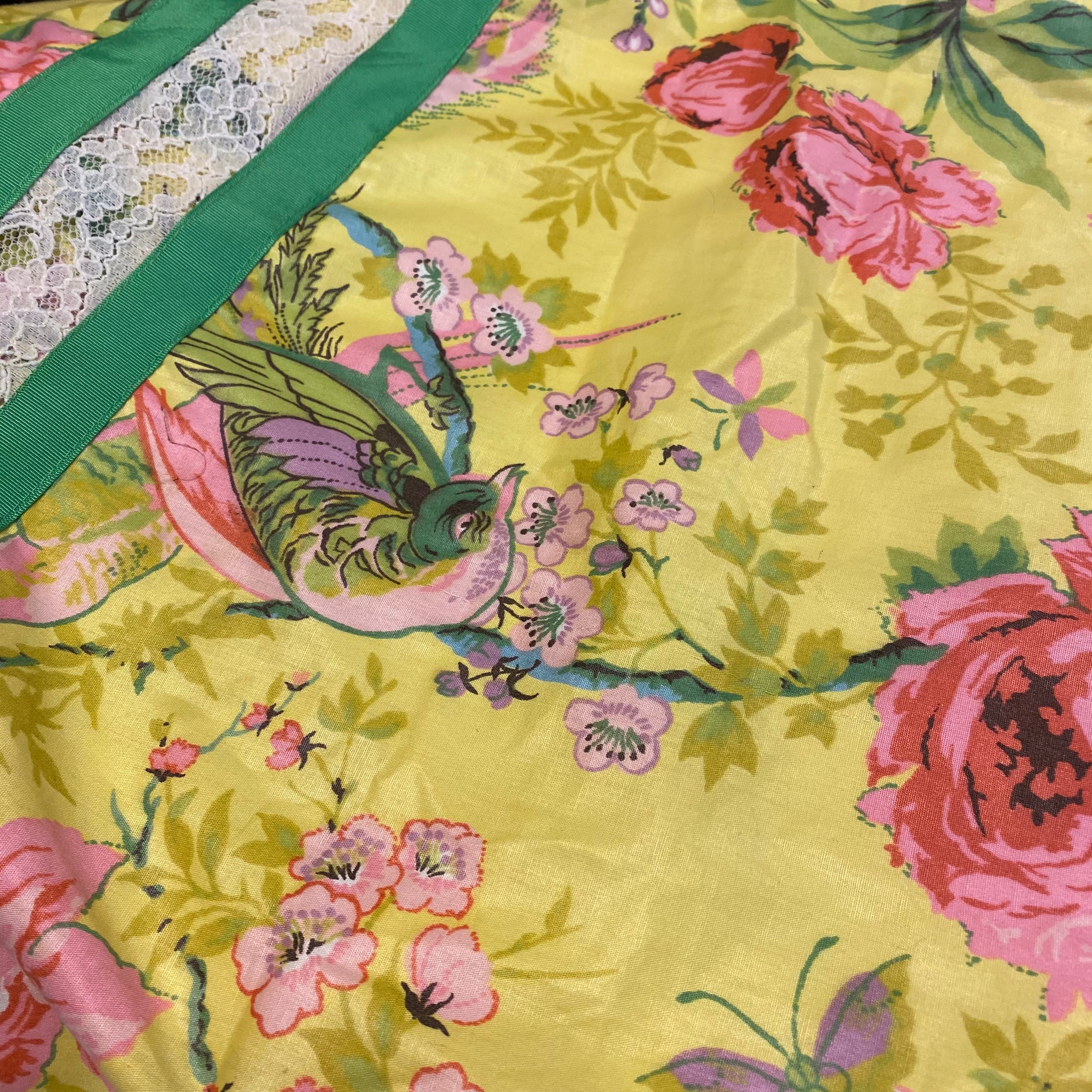 大輪の花に鳥が止まっている美しいテキスタイル。