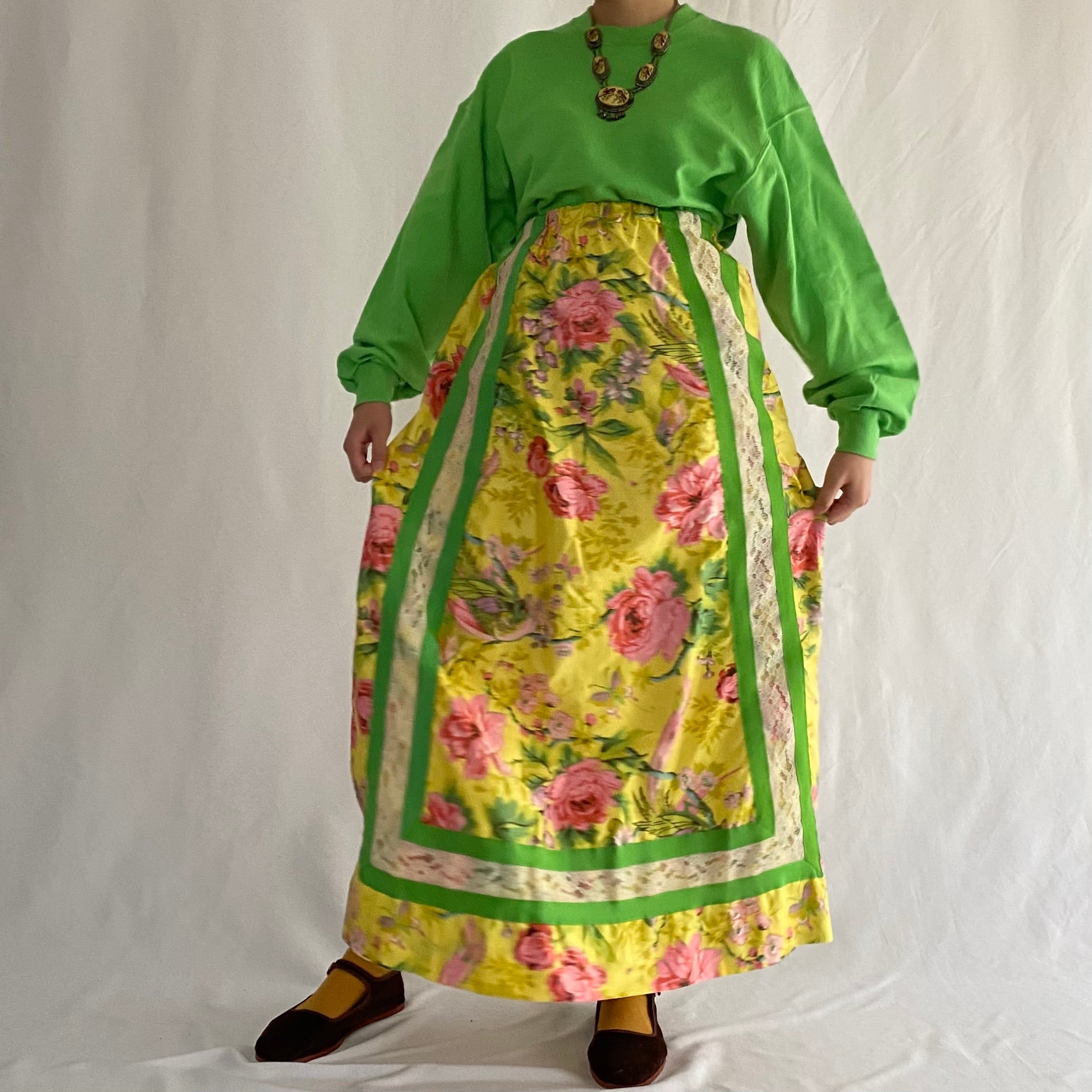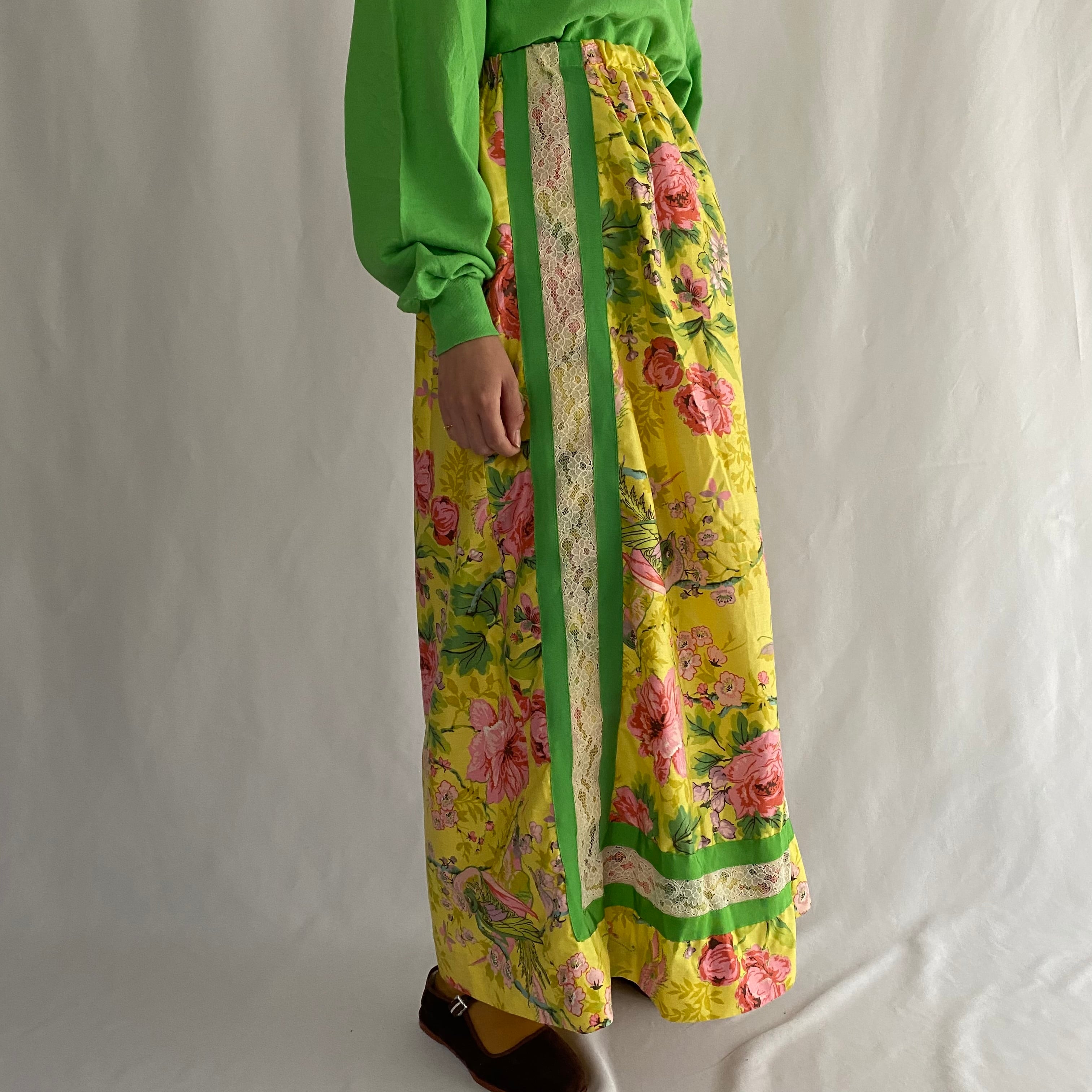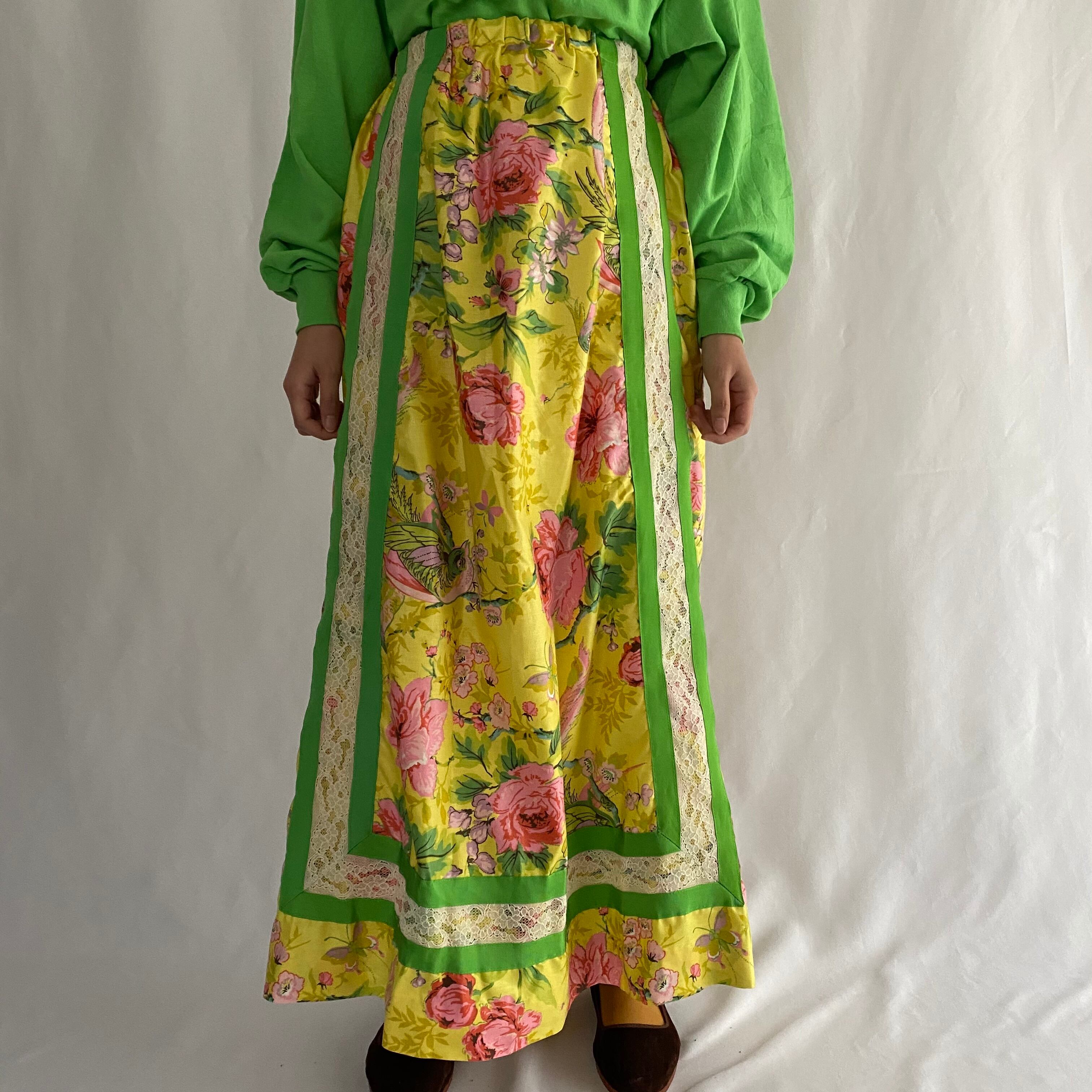 〜70's I.MAGNIN | lace decoration botanical long skirt