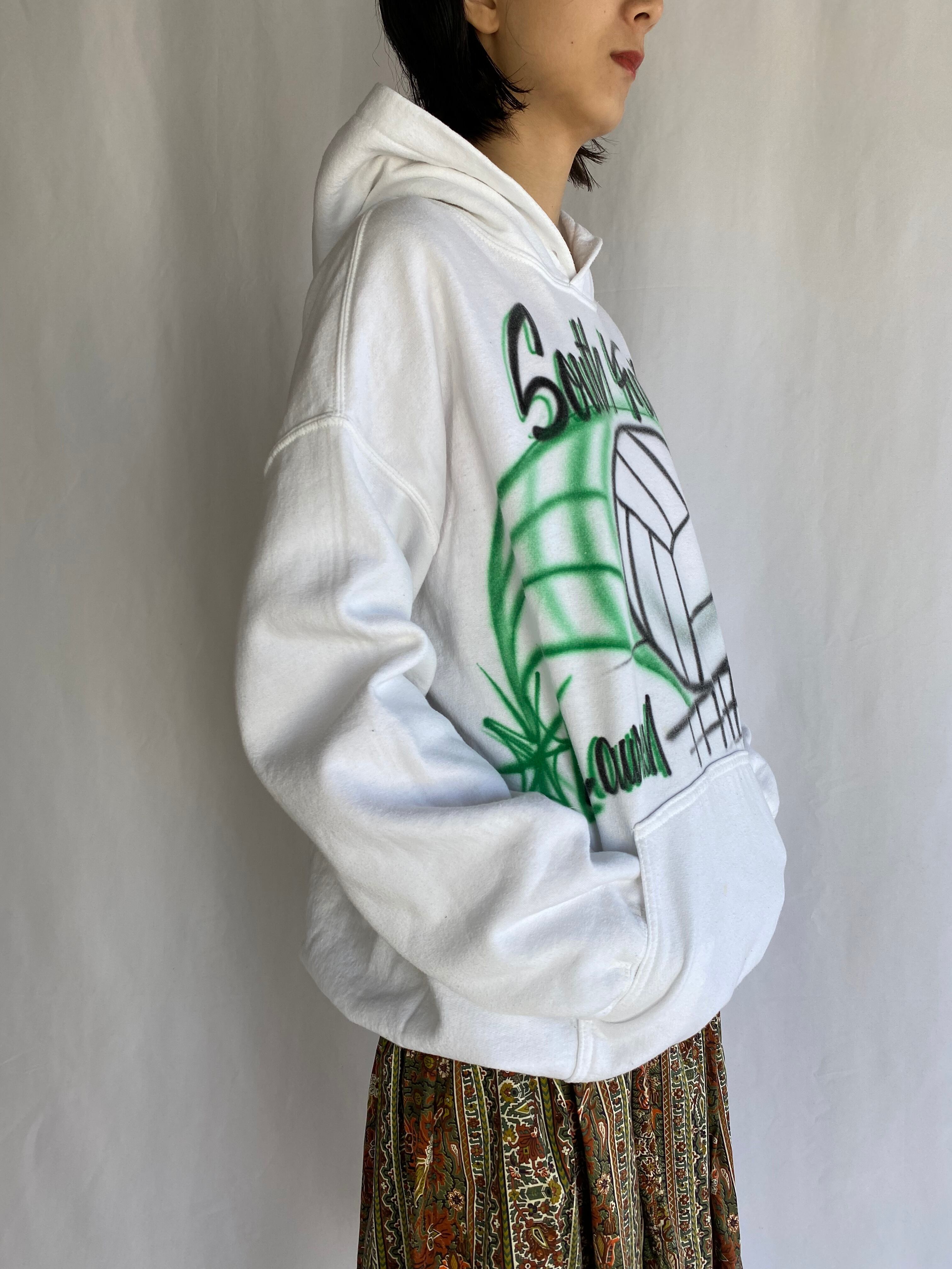 ハンドペイントのスウェットパーカー。
