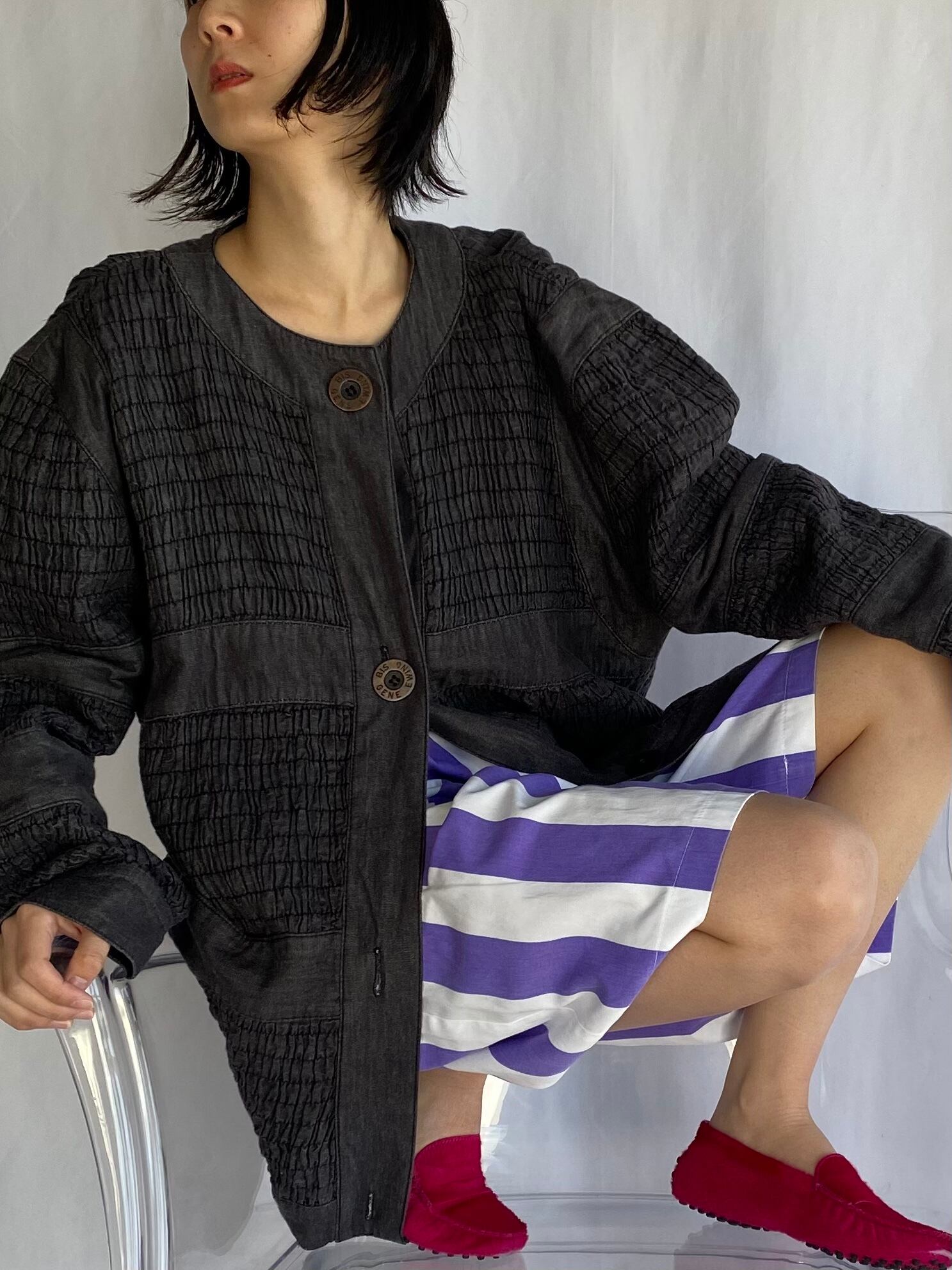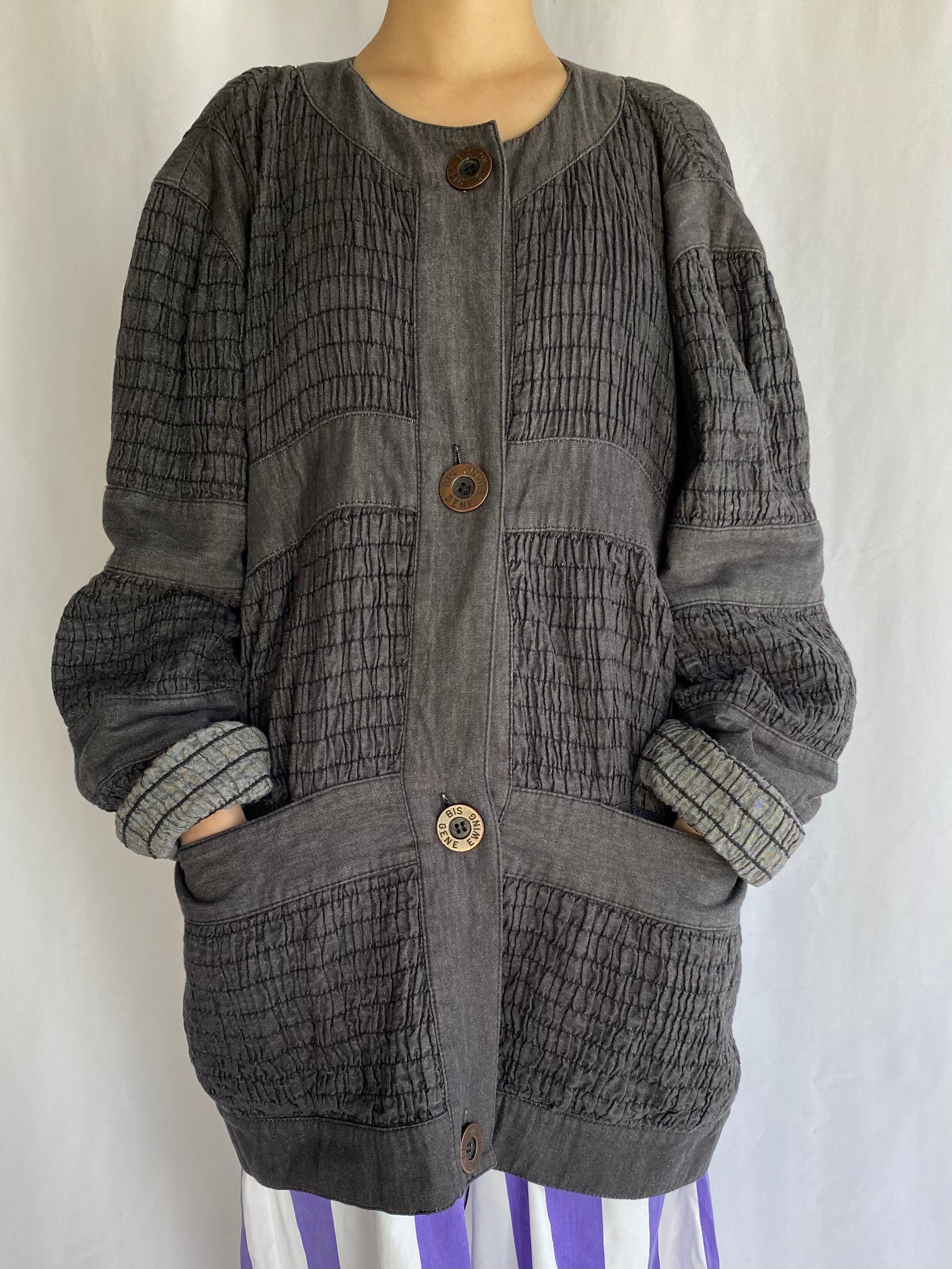 80's BIS | black denim gather jacket