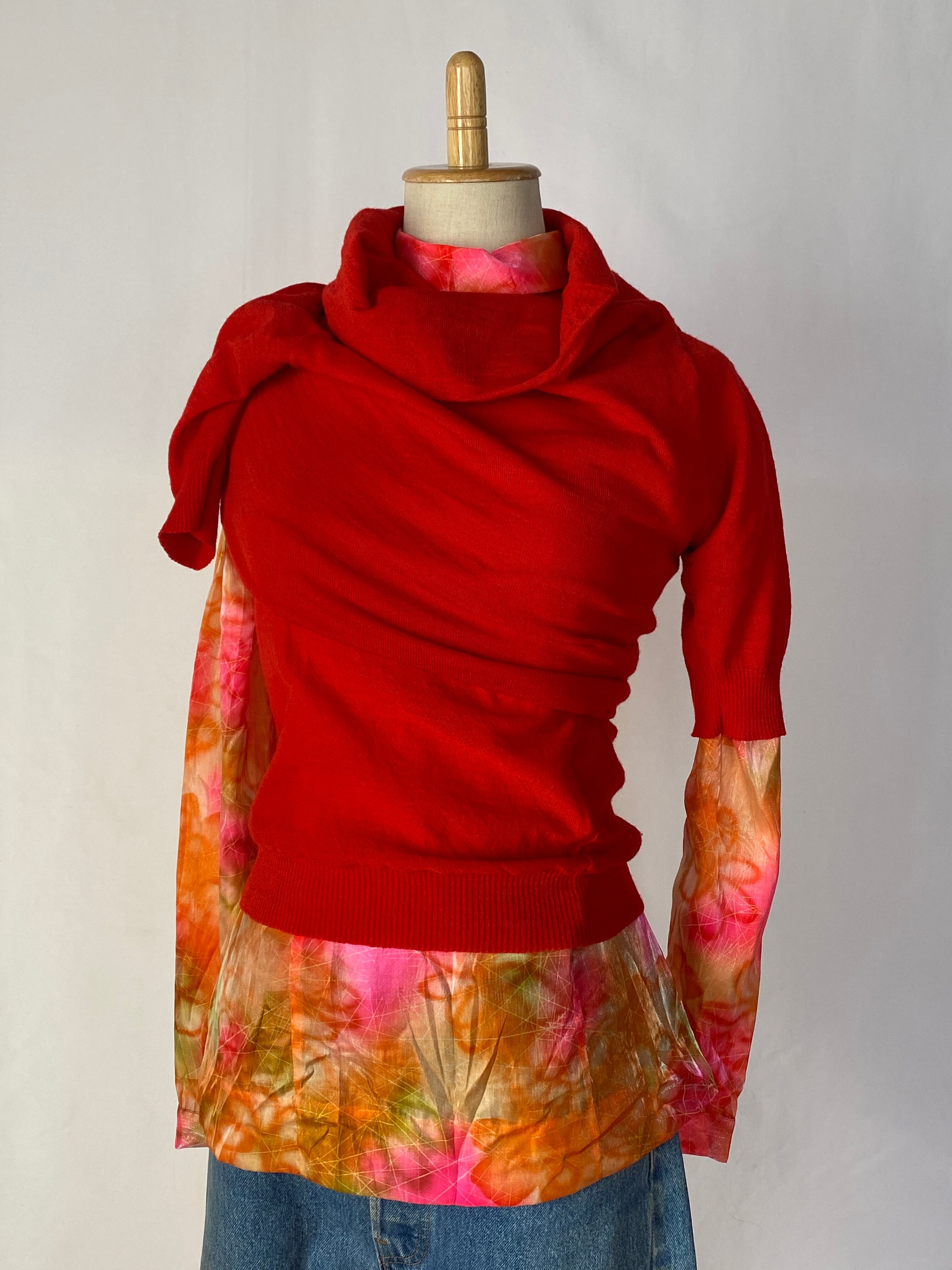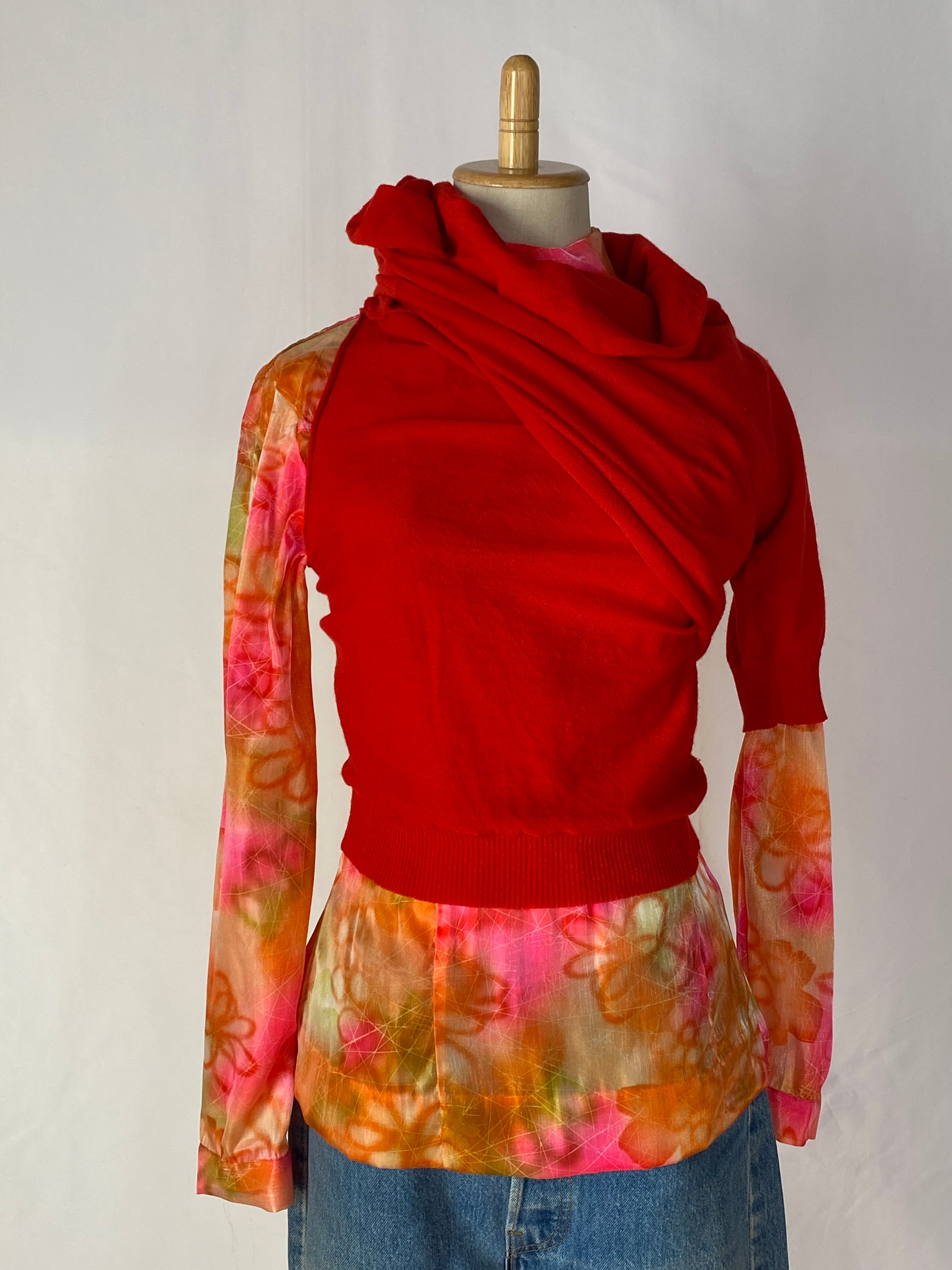 tricot COMME des GARCONS のレイヤードニットトップス。