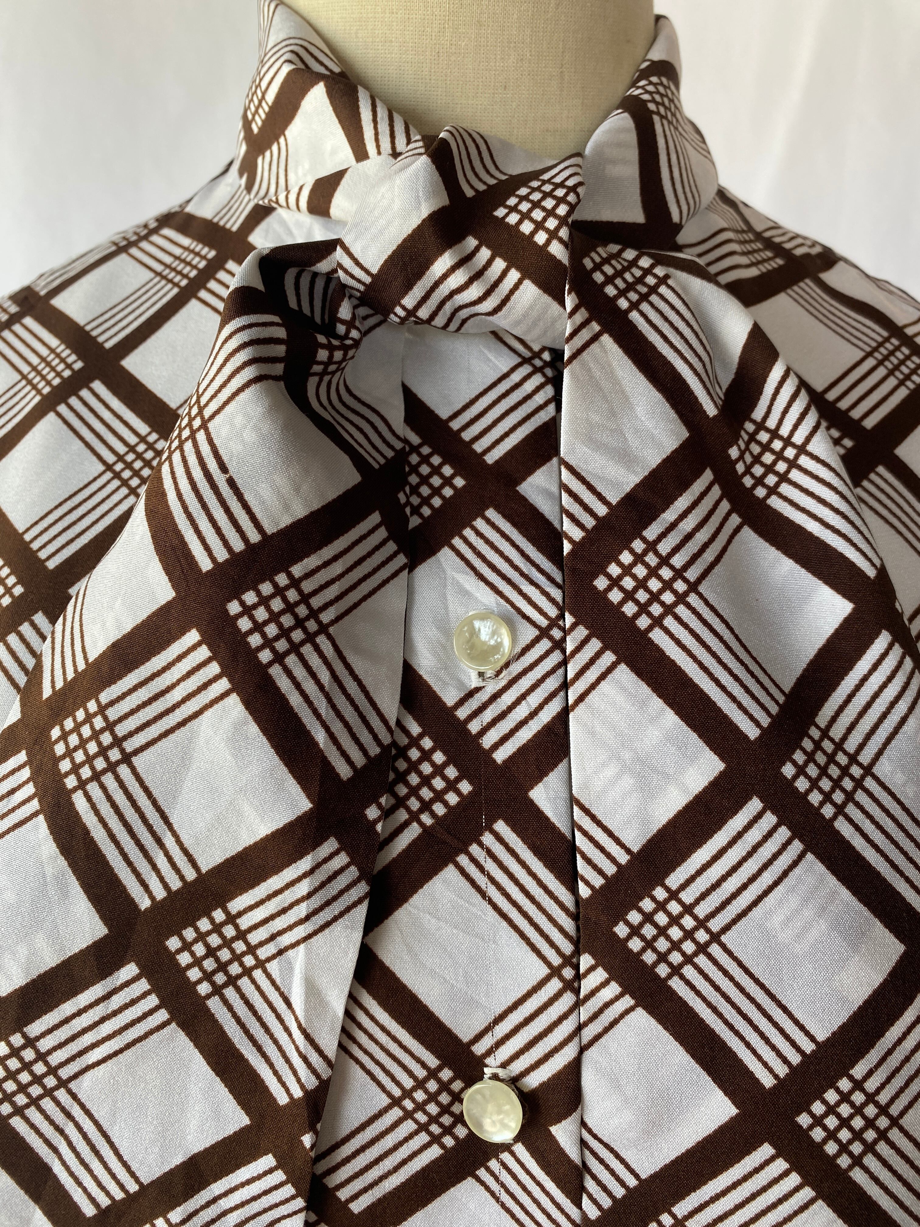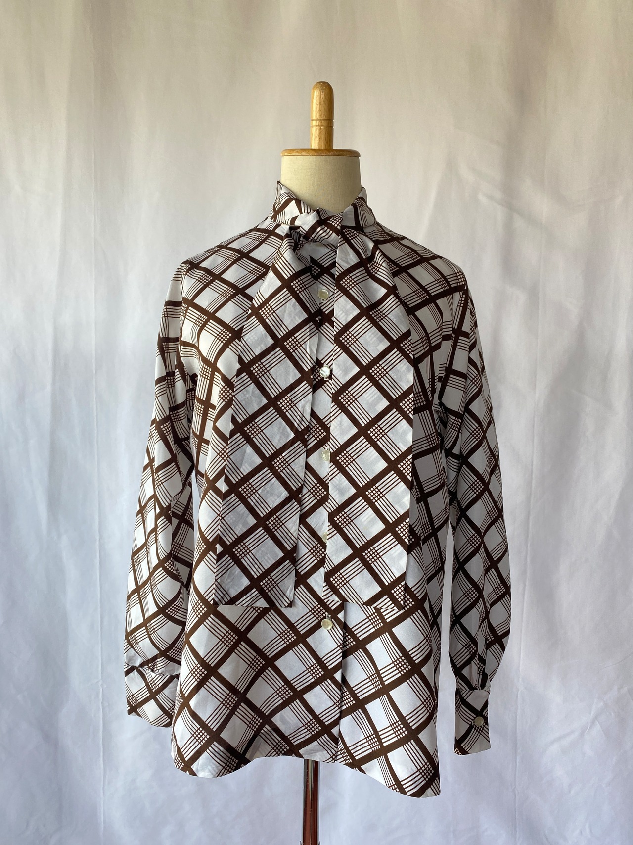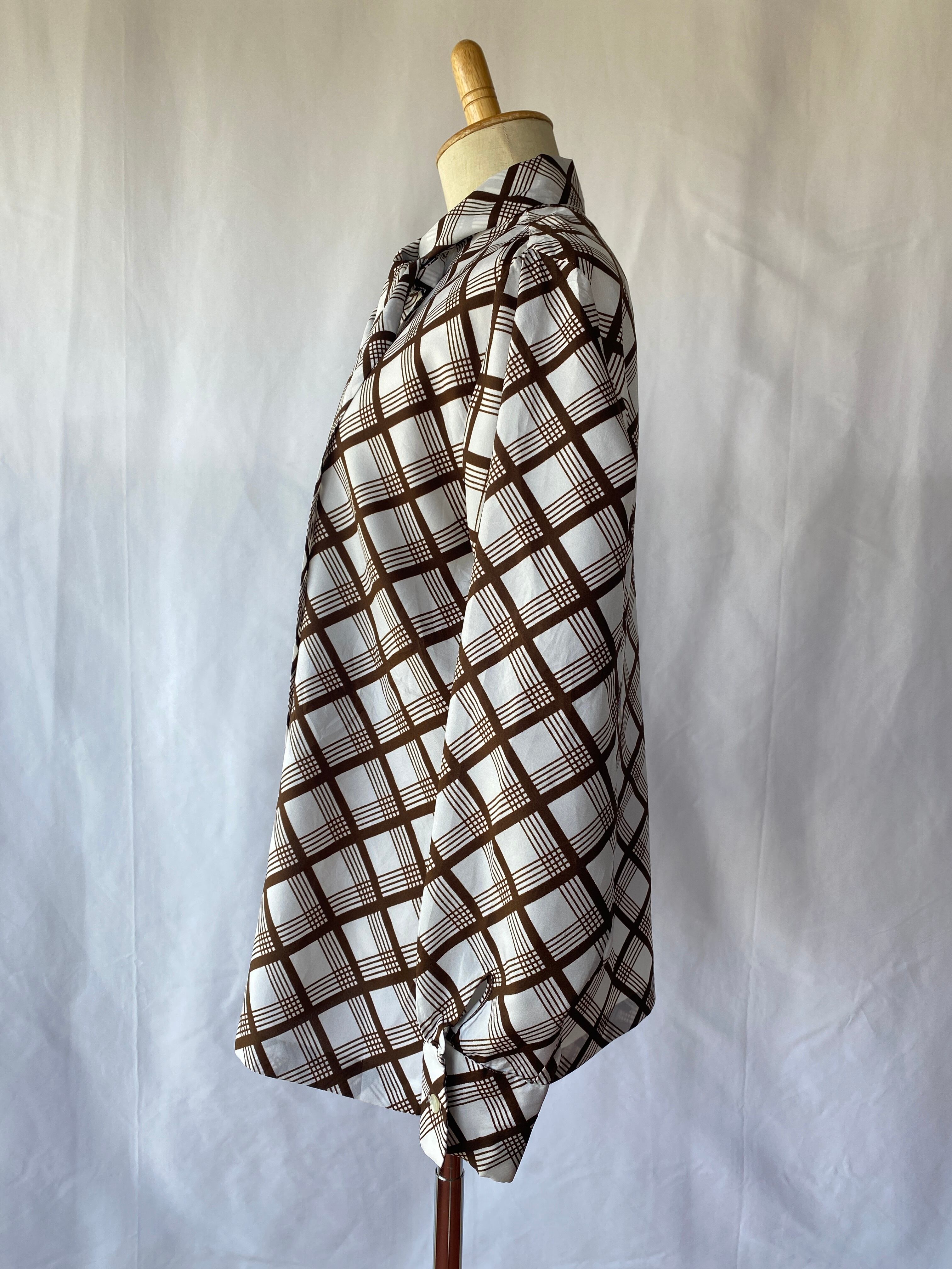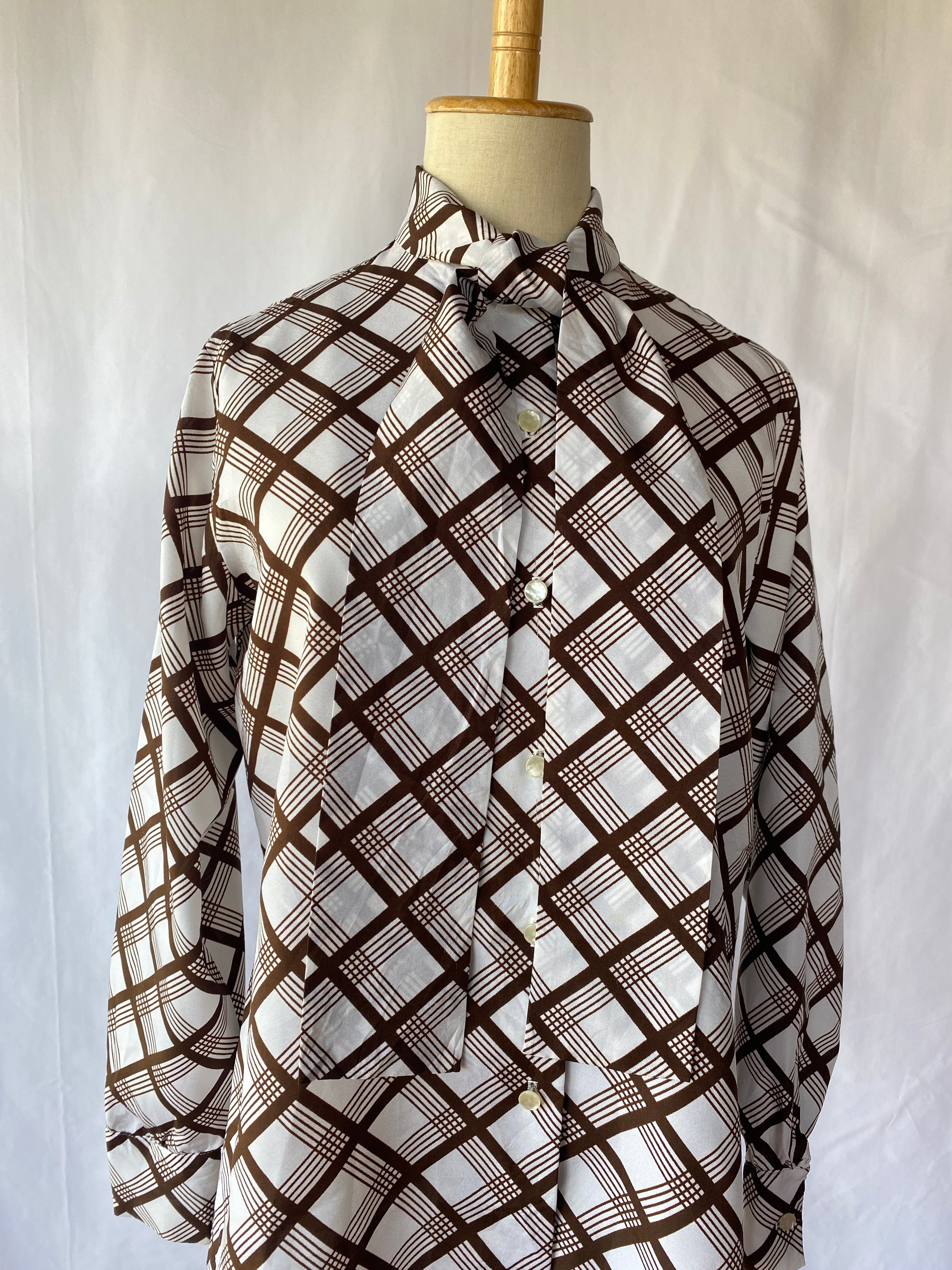 plaid ribbon tie blouse