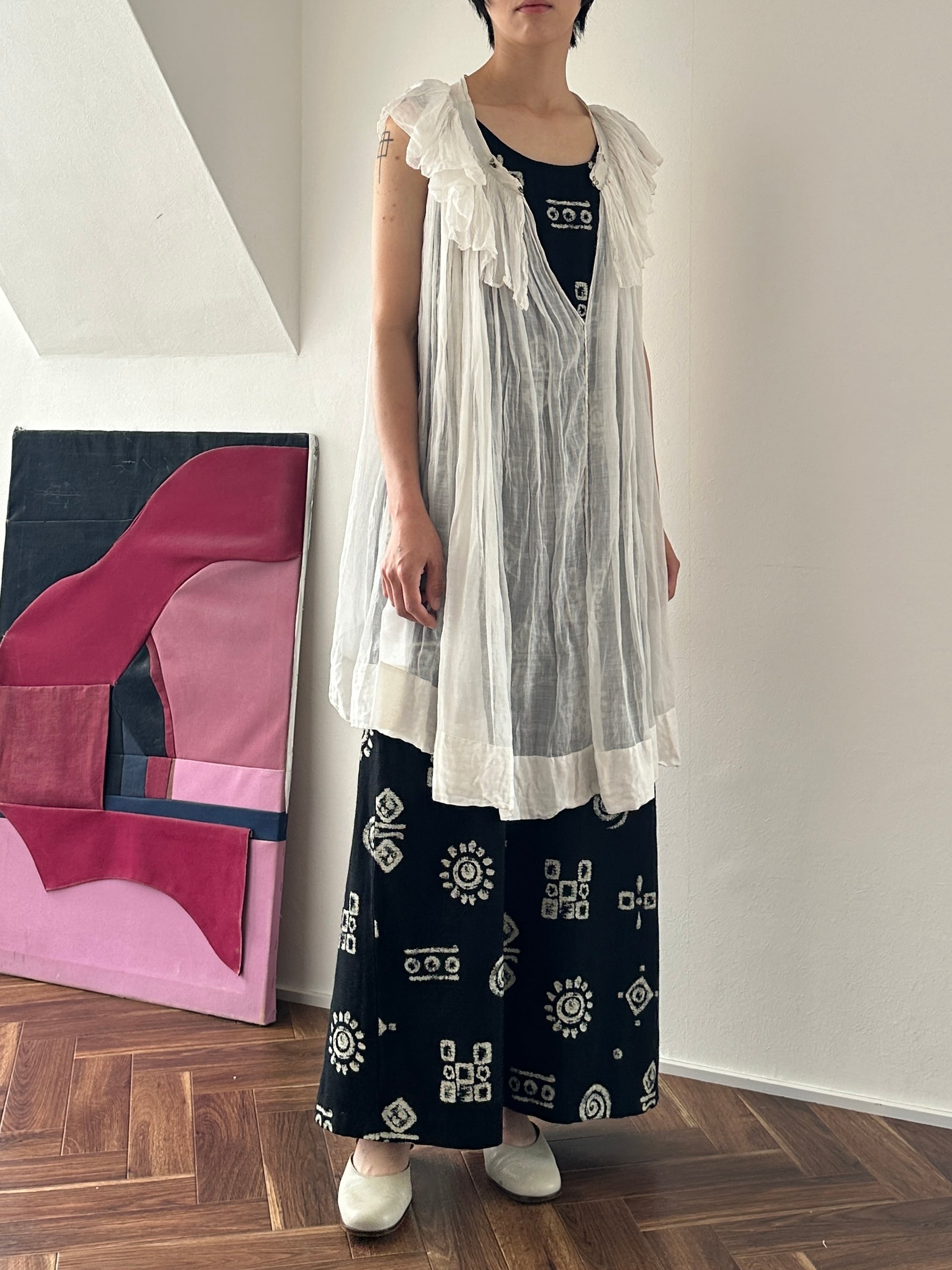 90's modern textile sleeve less dress