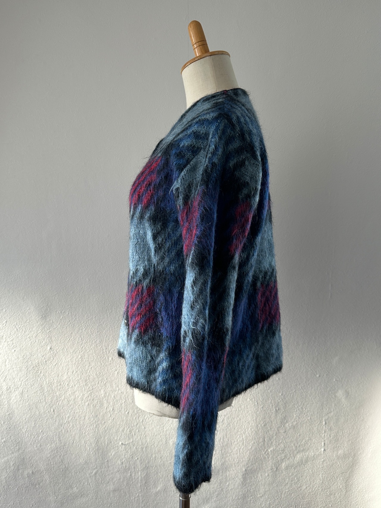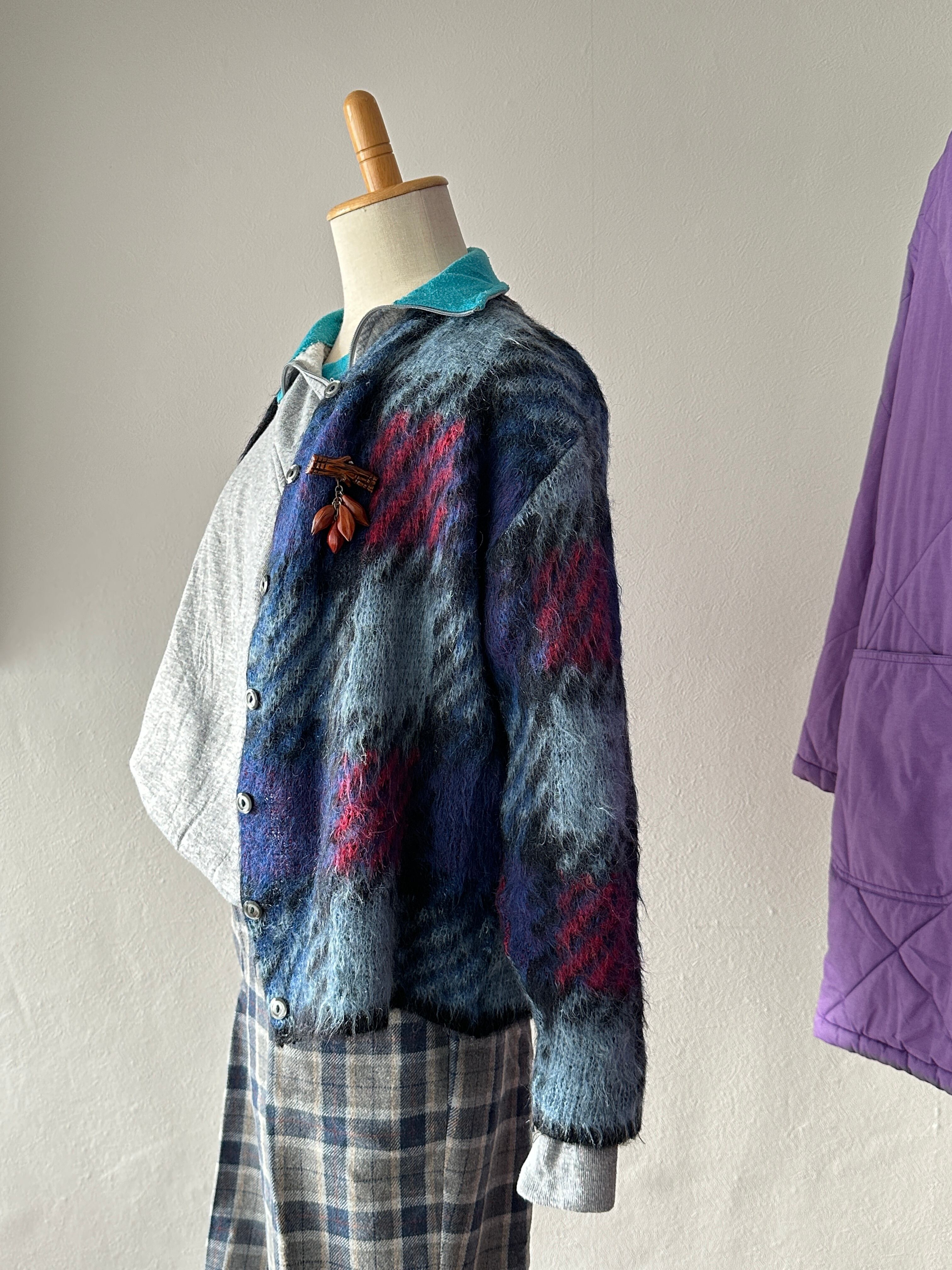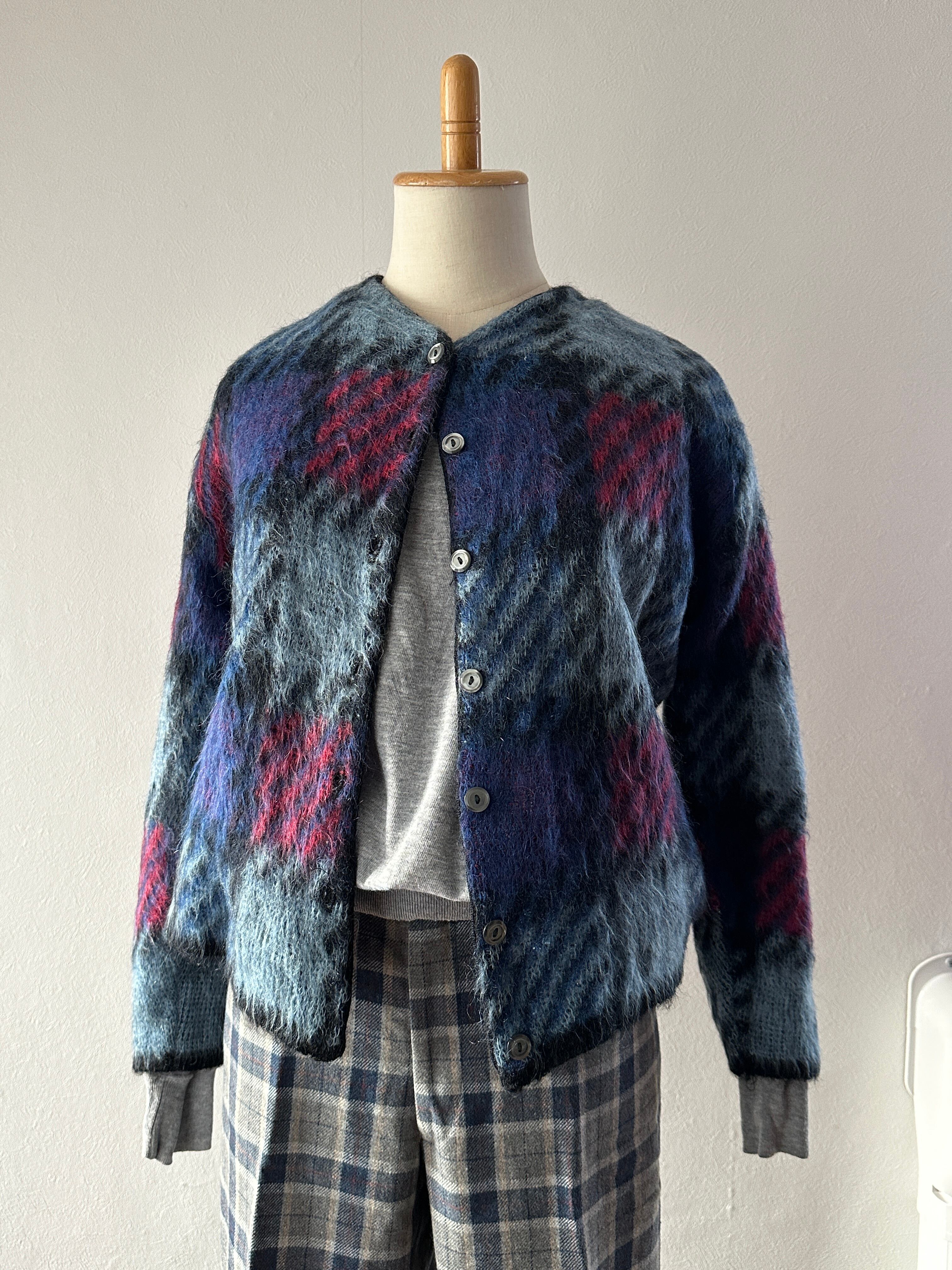 チェックモヘアカーディガン。