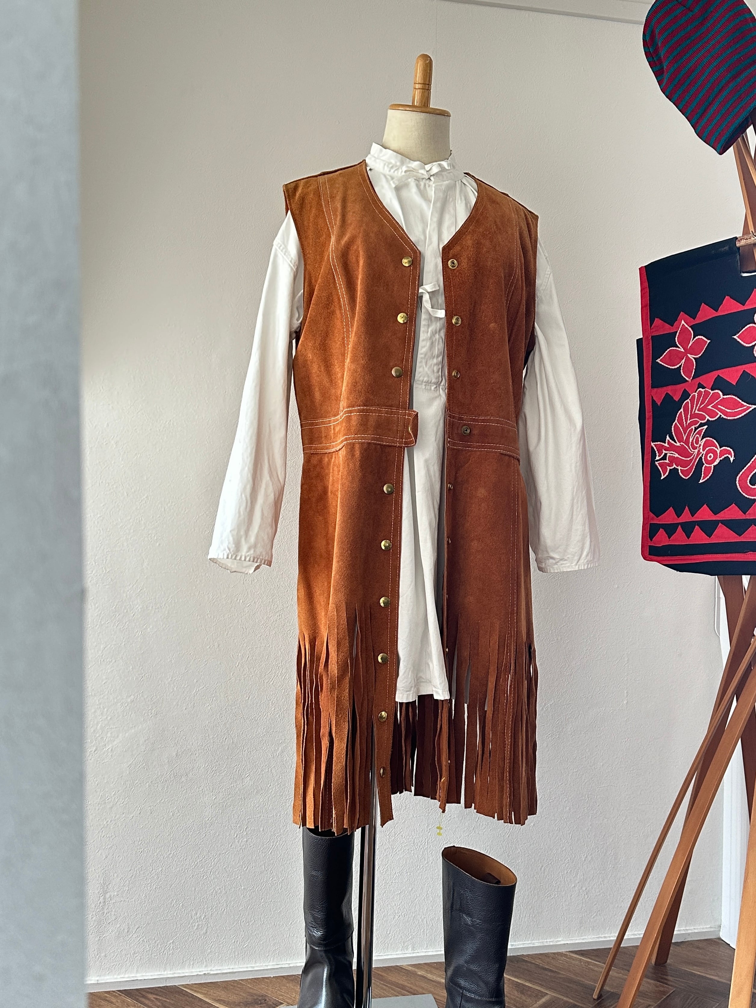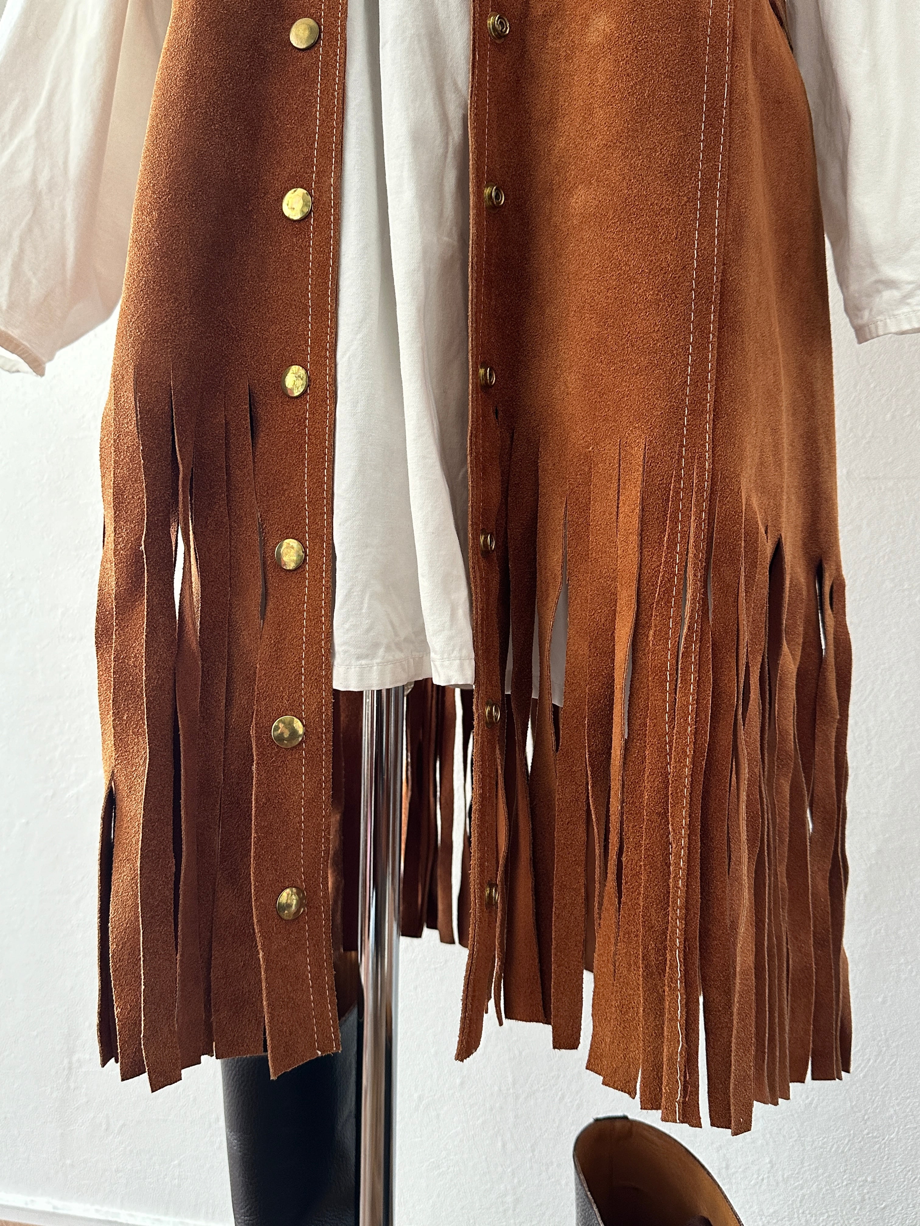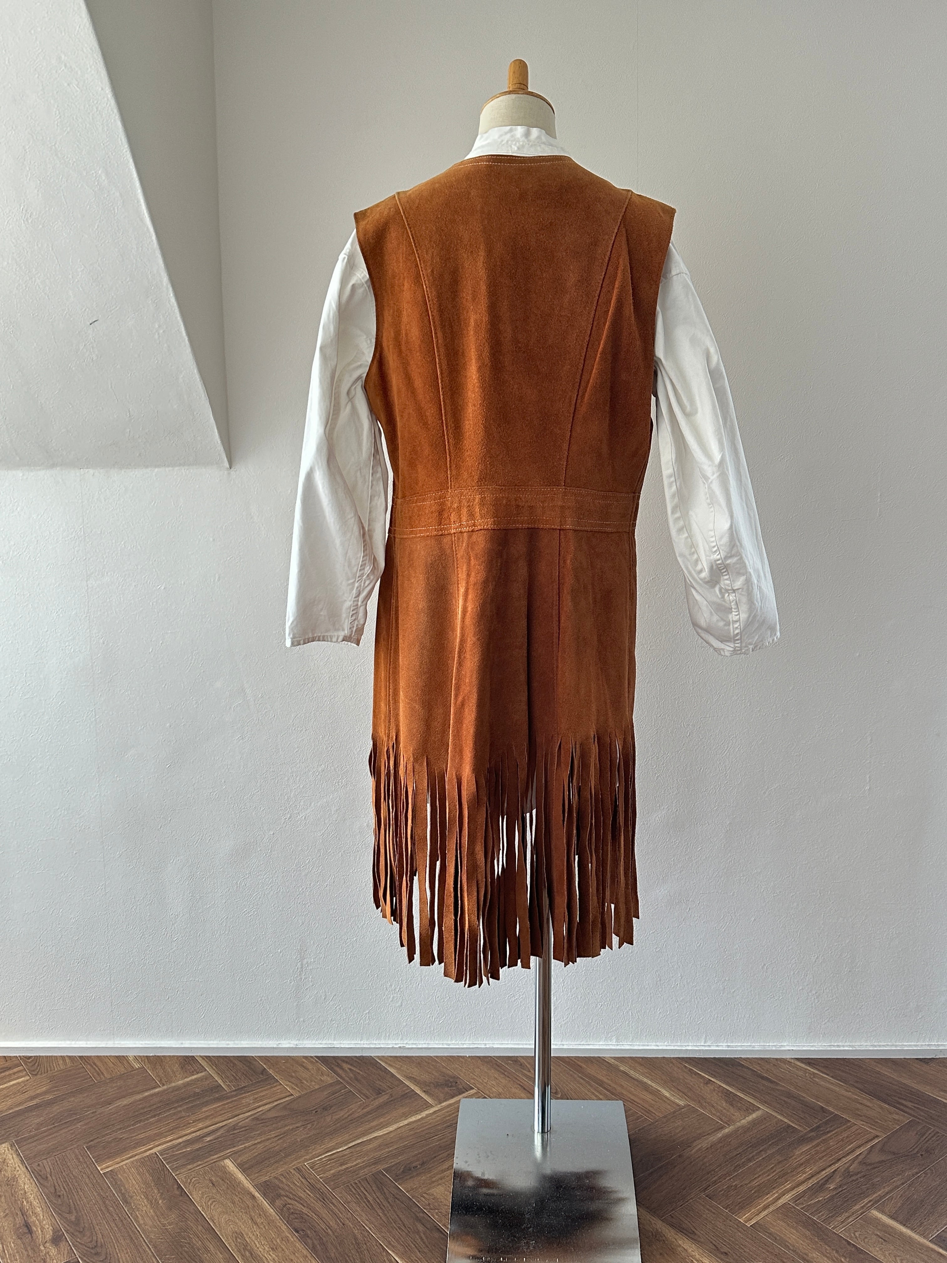 60-70's suède fringe long vest