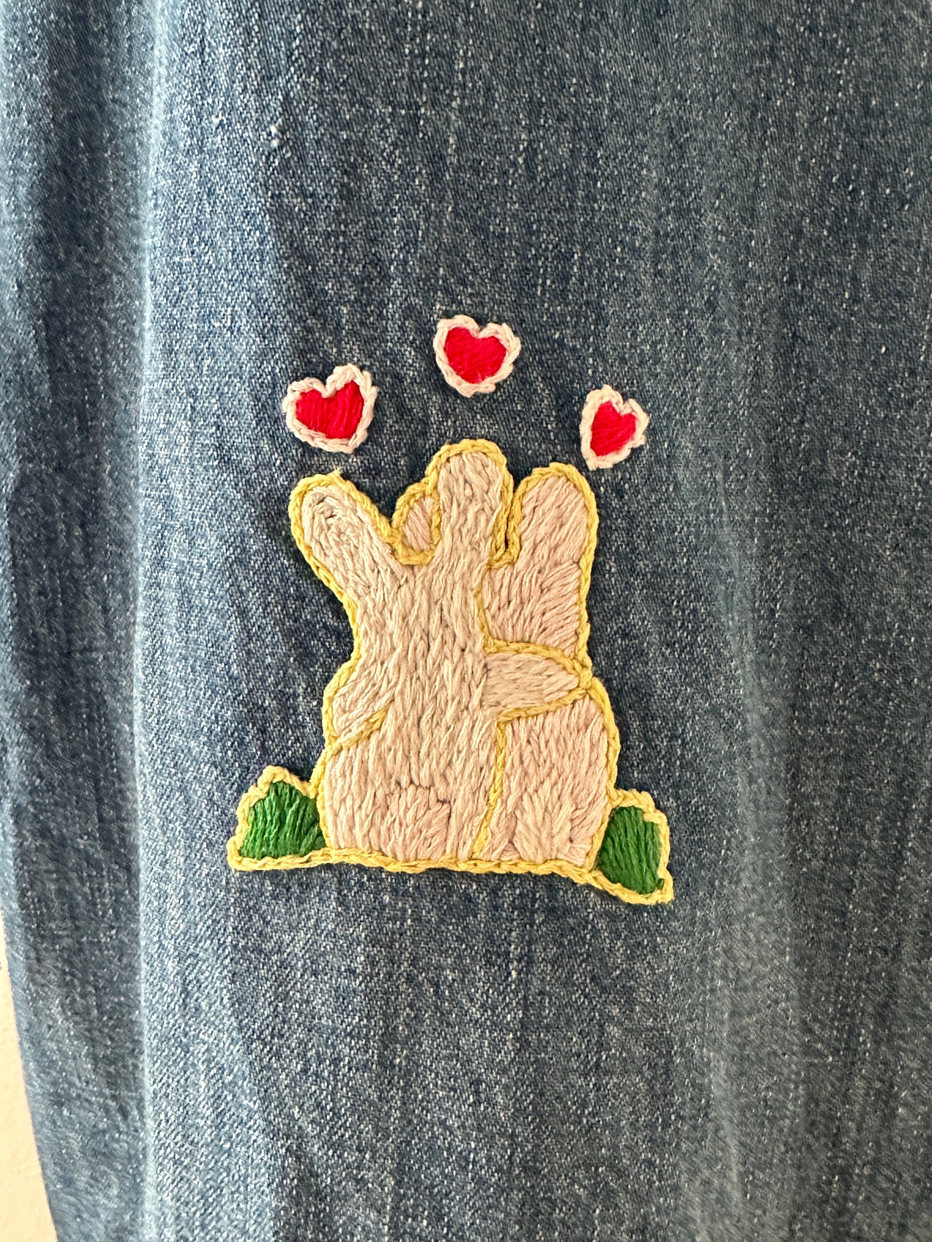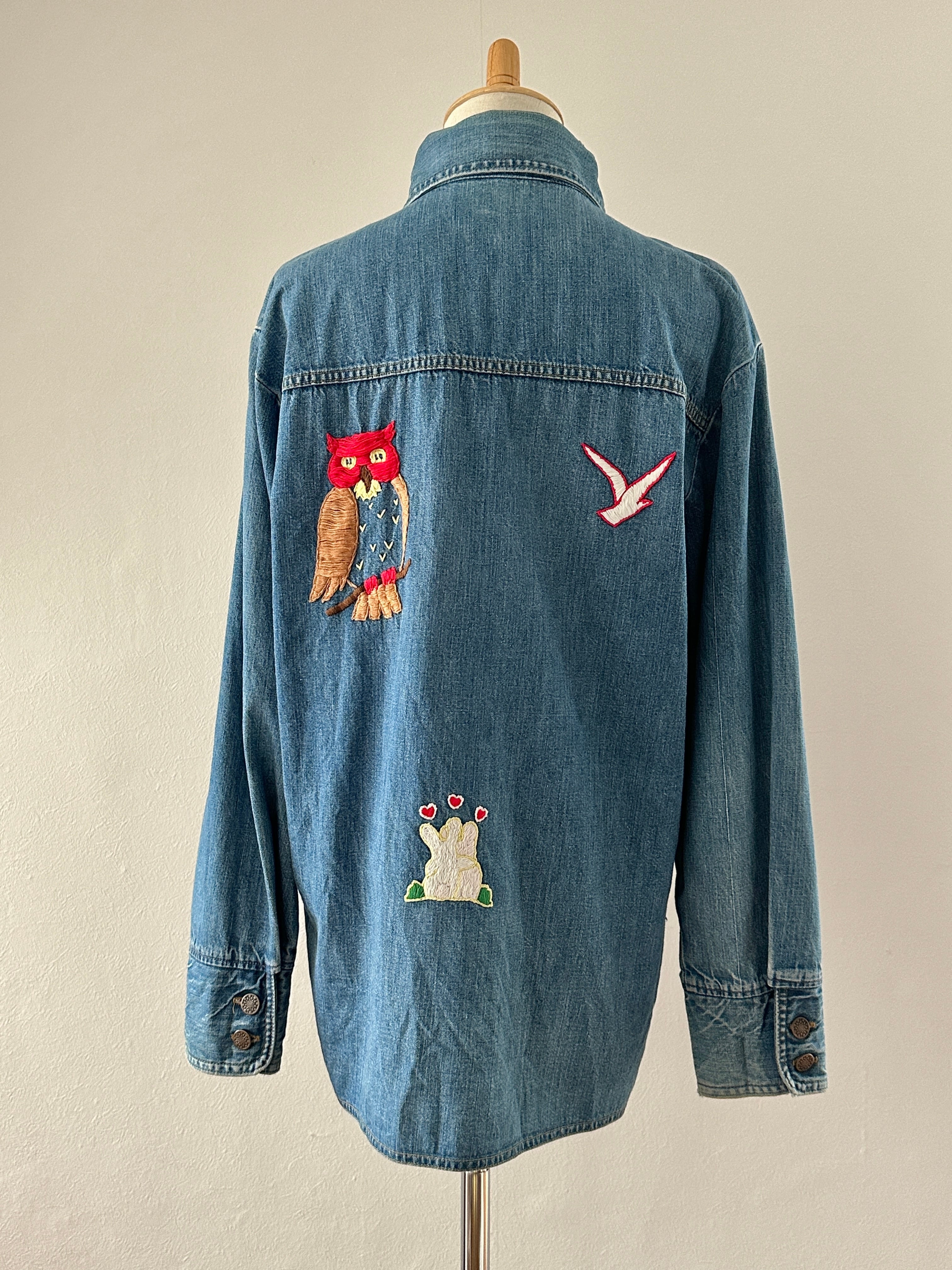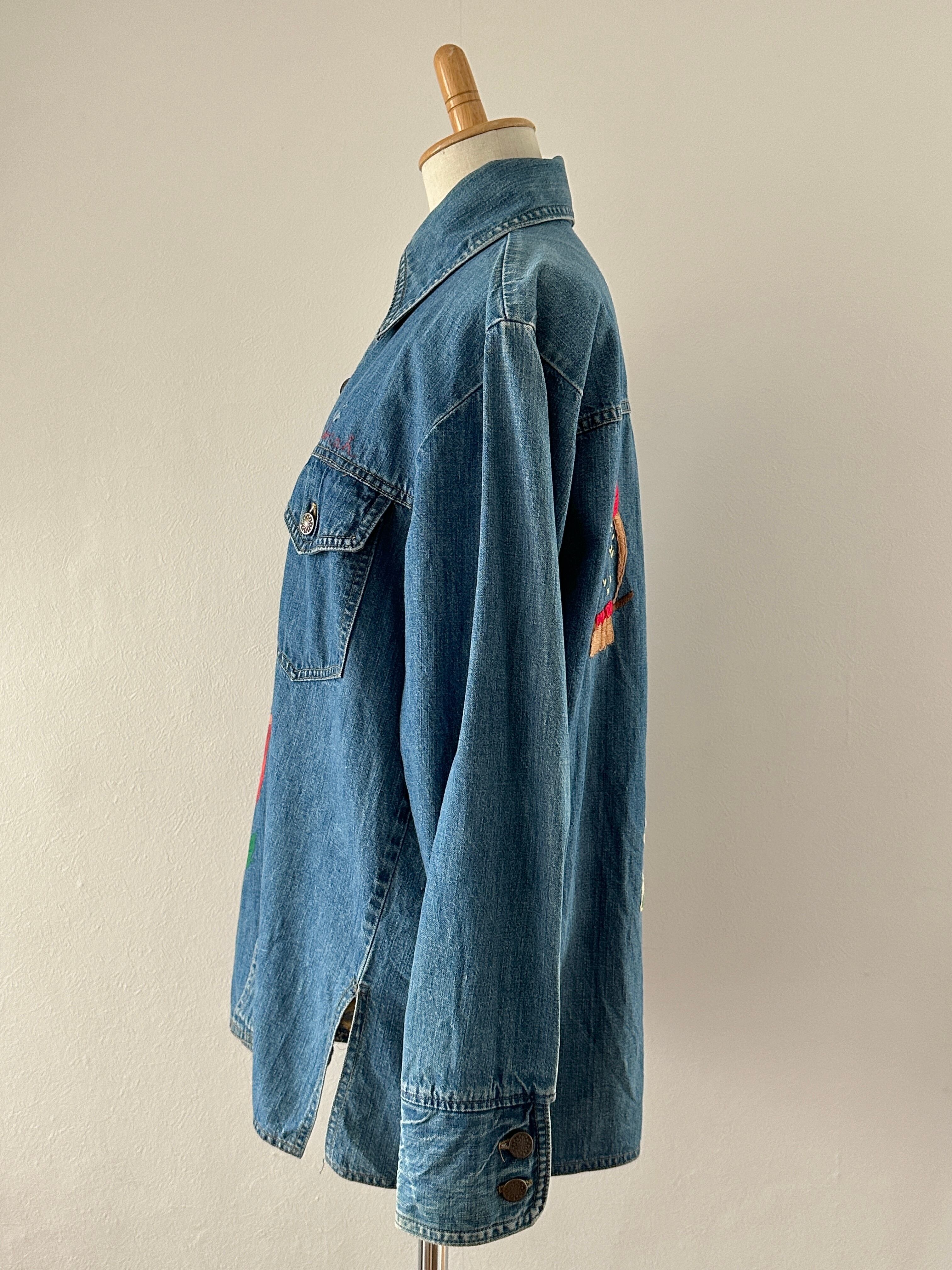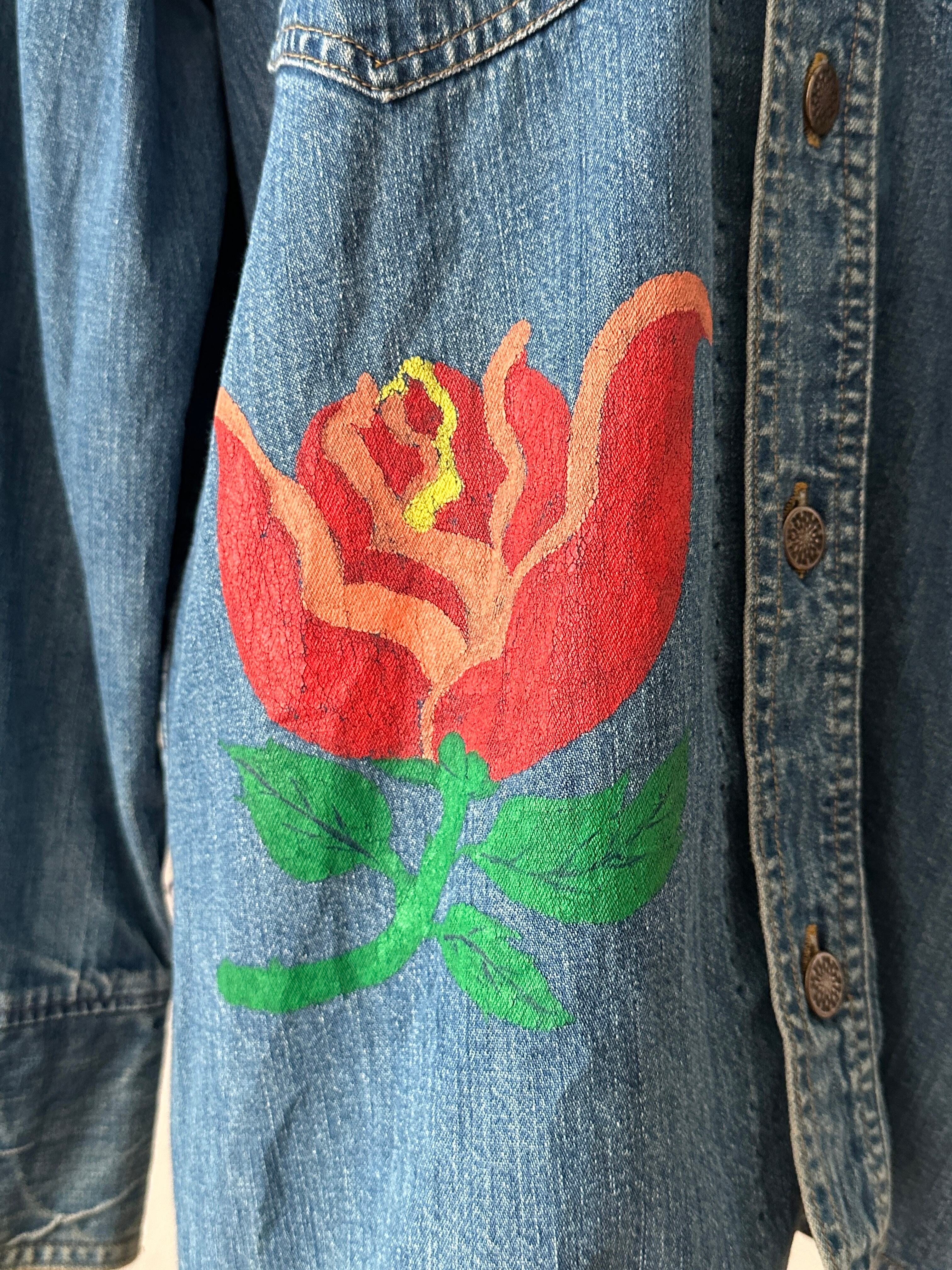 ハンド刺繍とハンドペイントでデコレーションされたデニムジャケット。