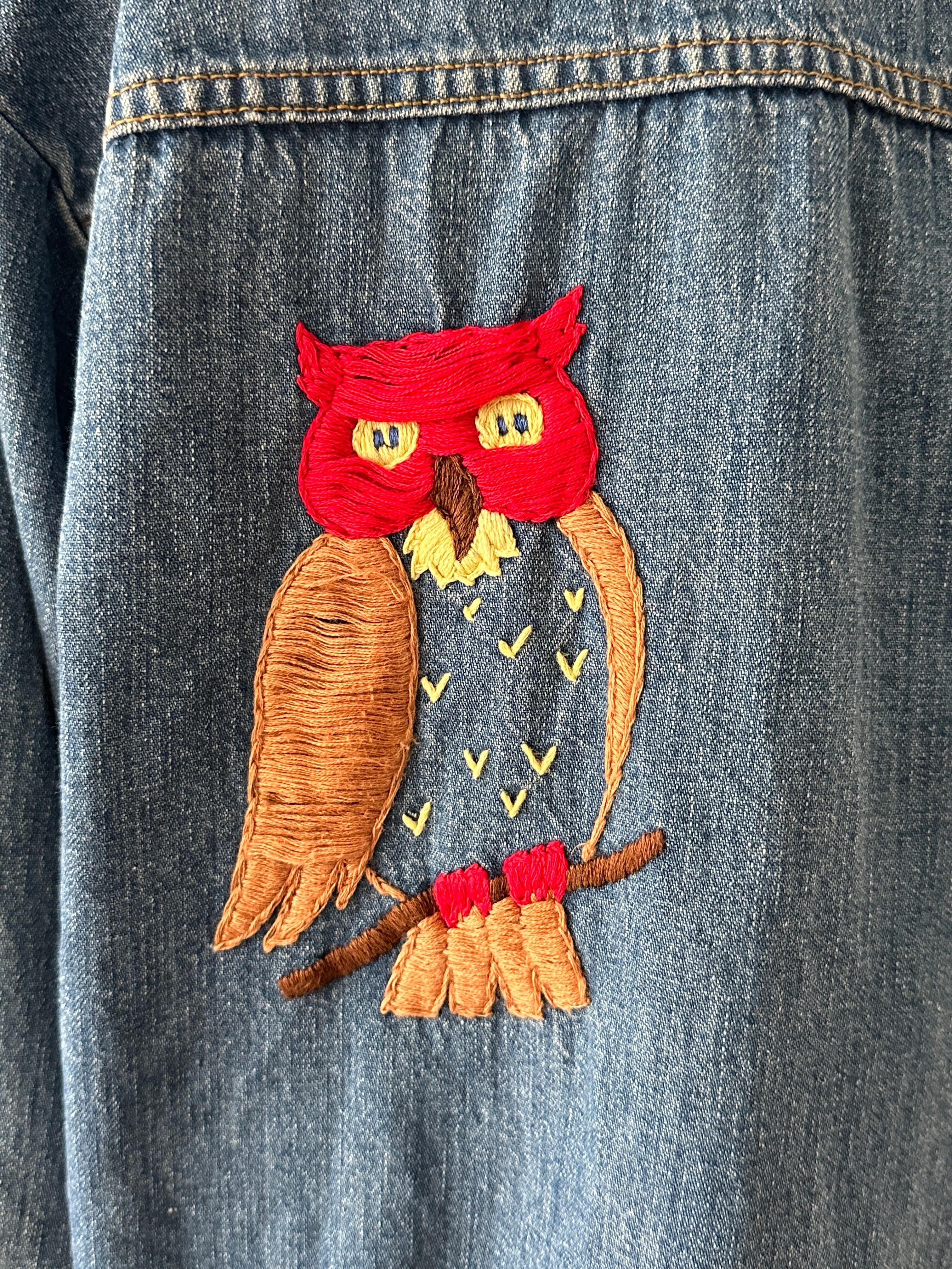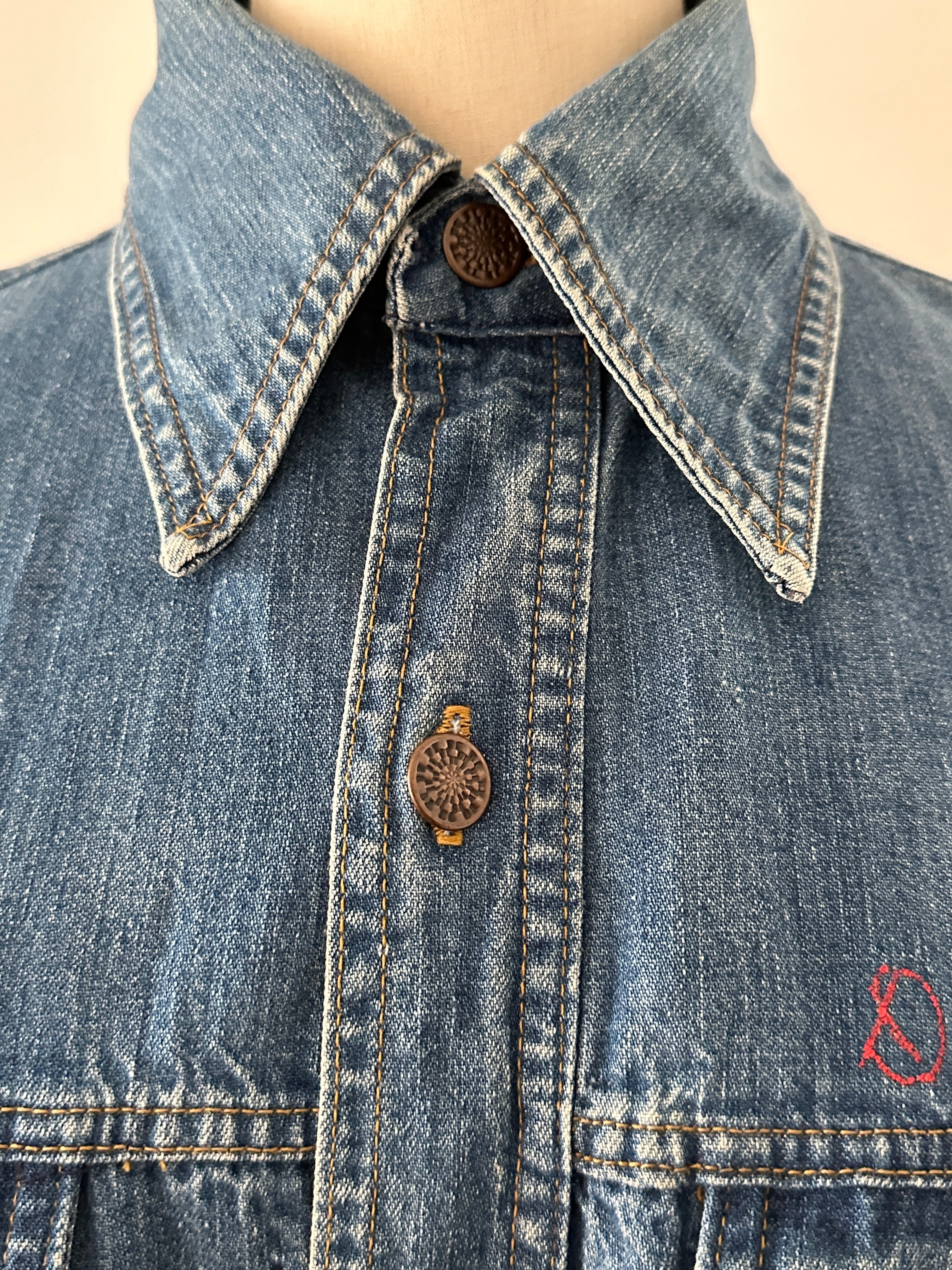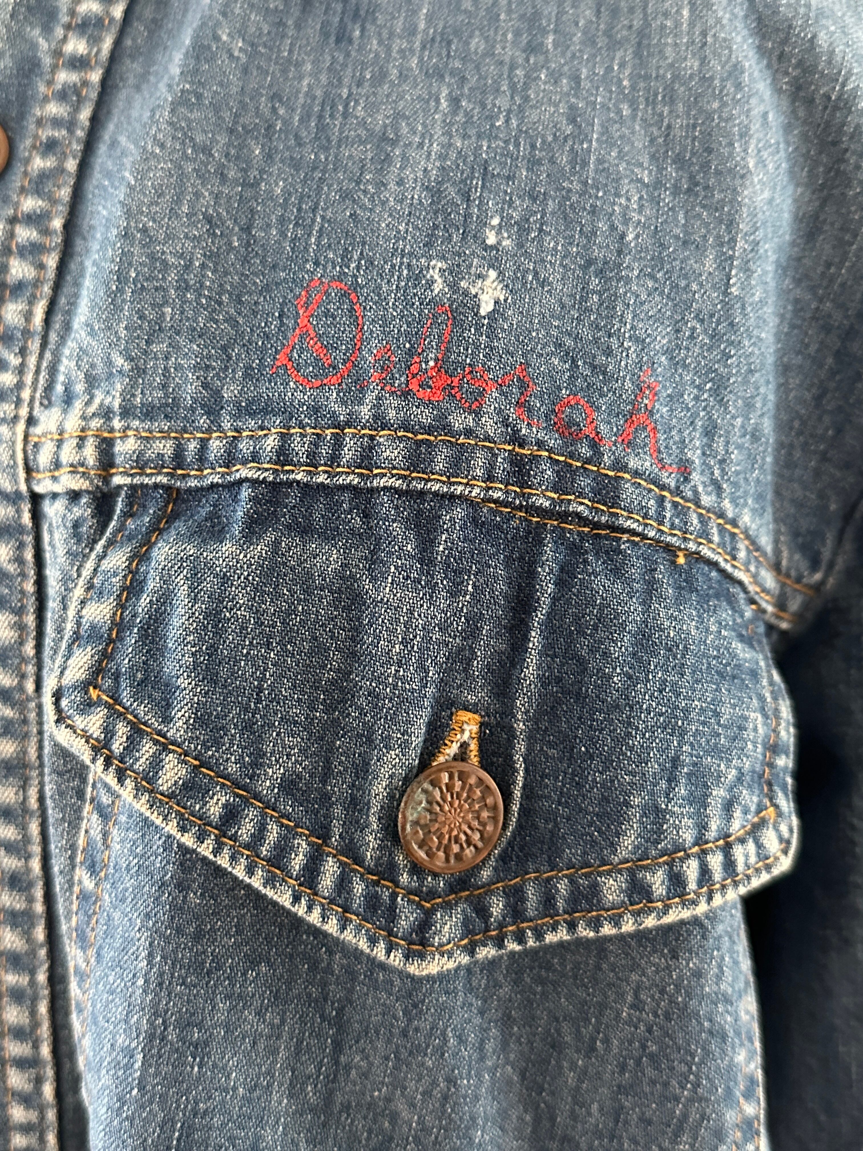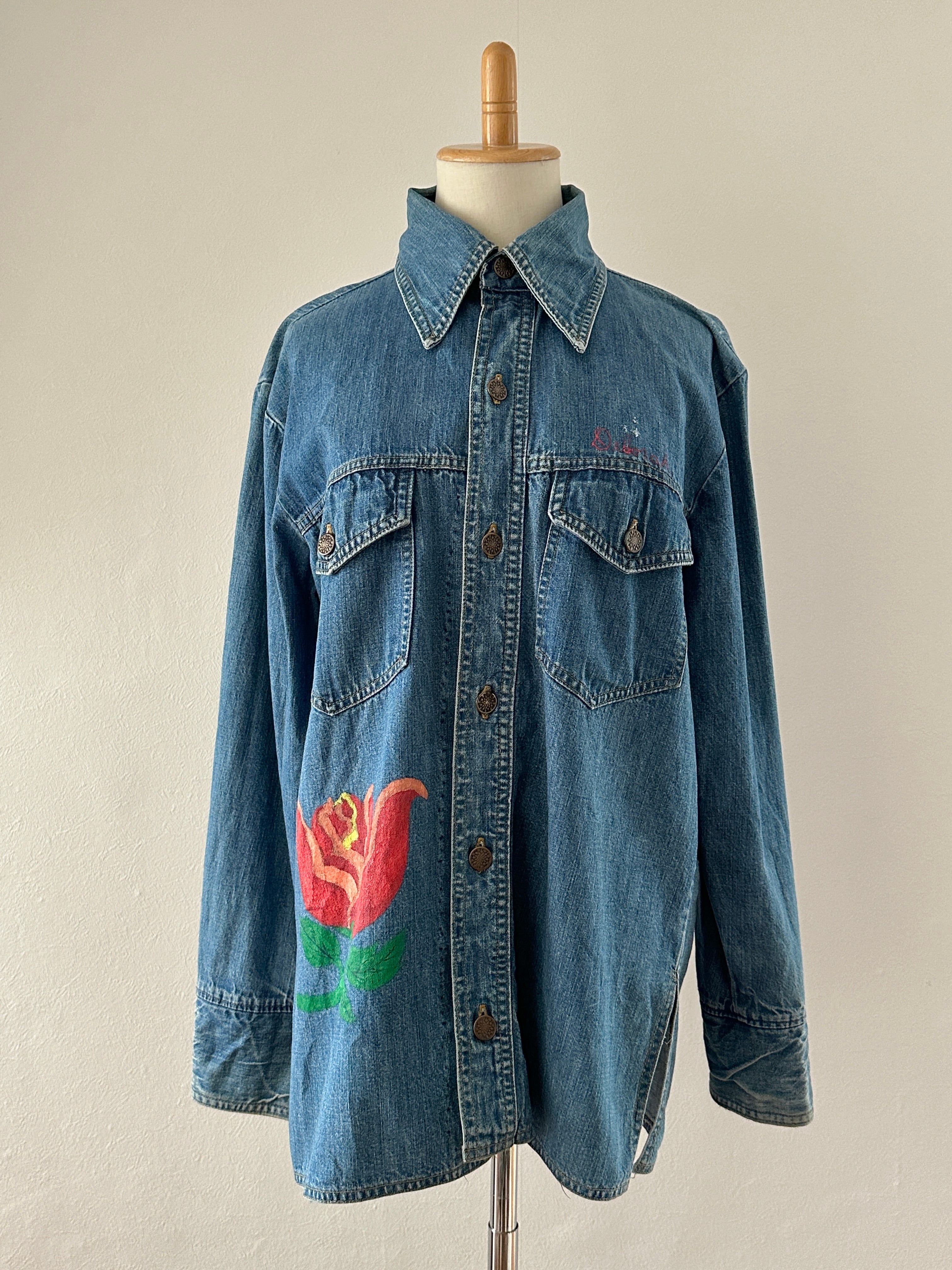 ハンド刺繍とハンドペイントでデコレーションされたデニムジャケット。