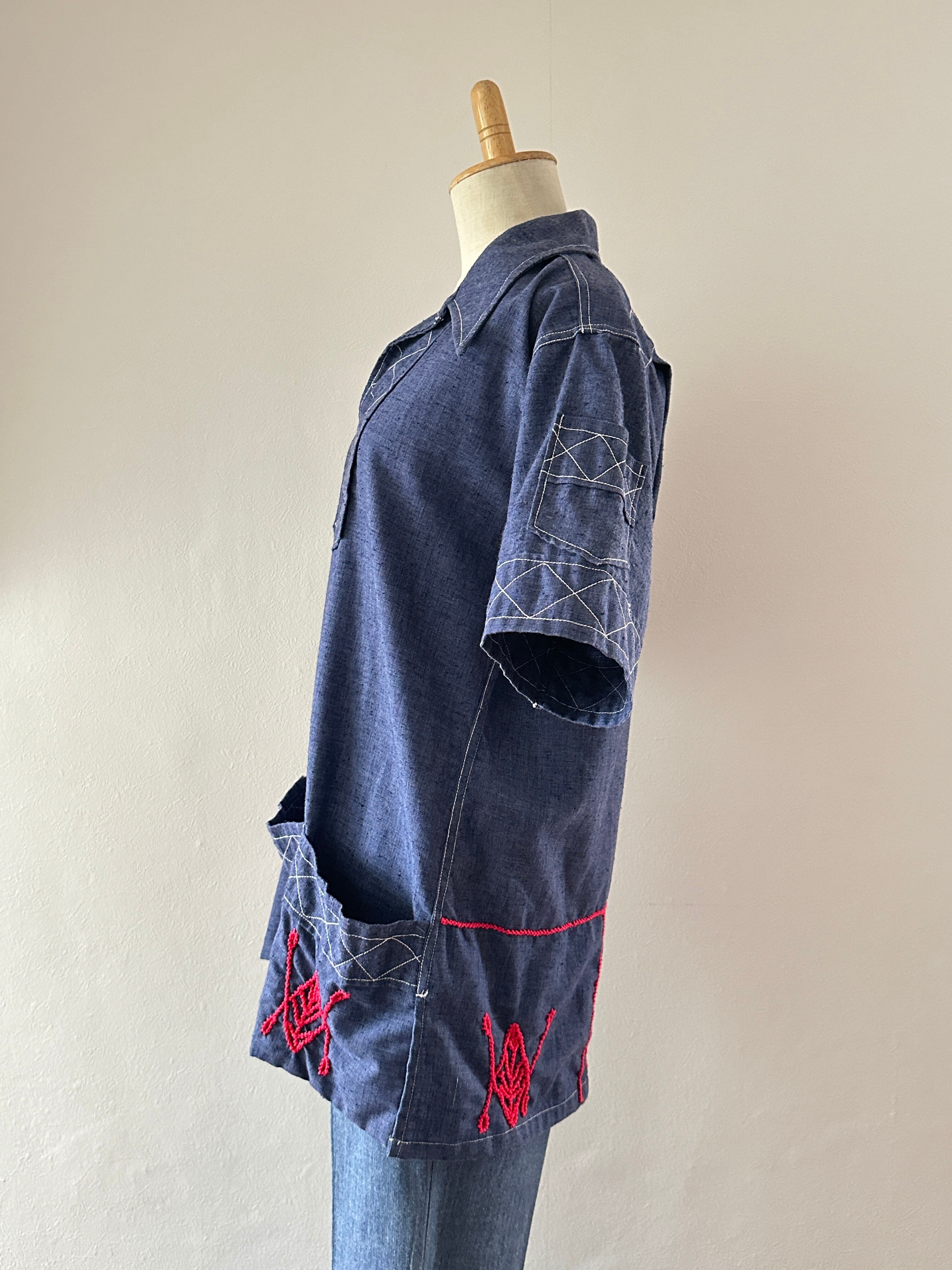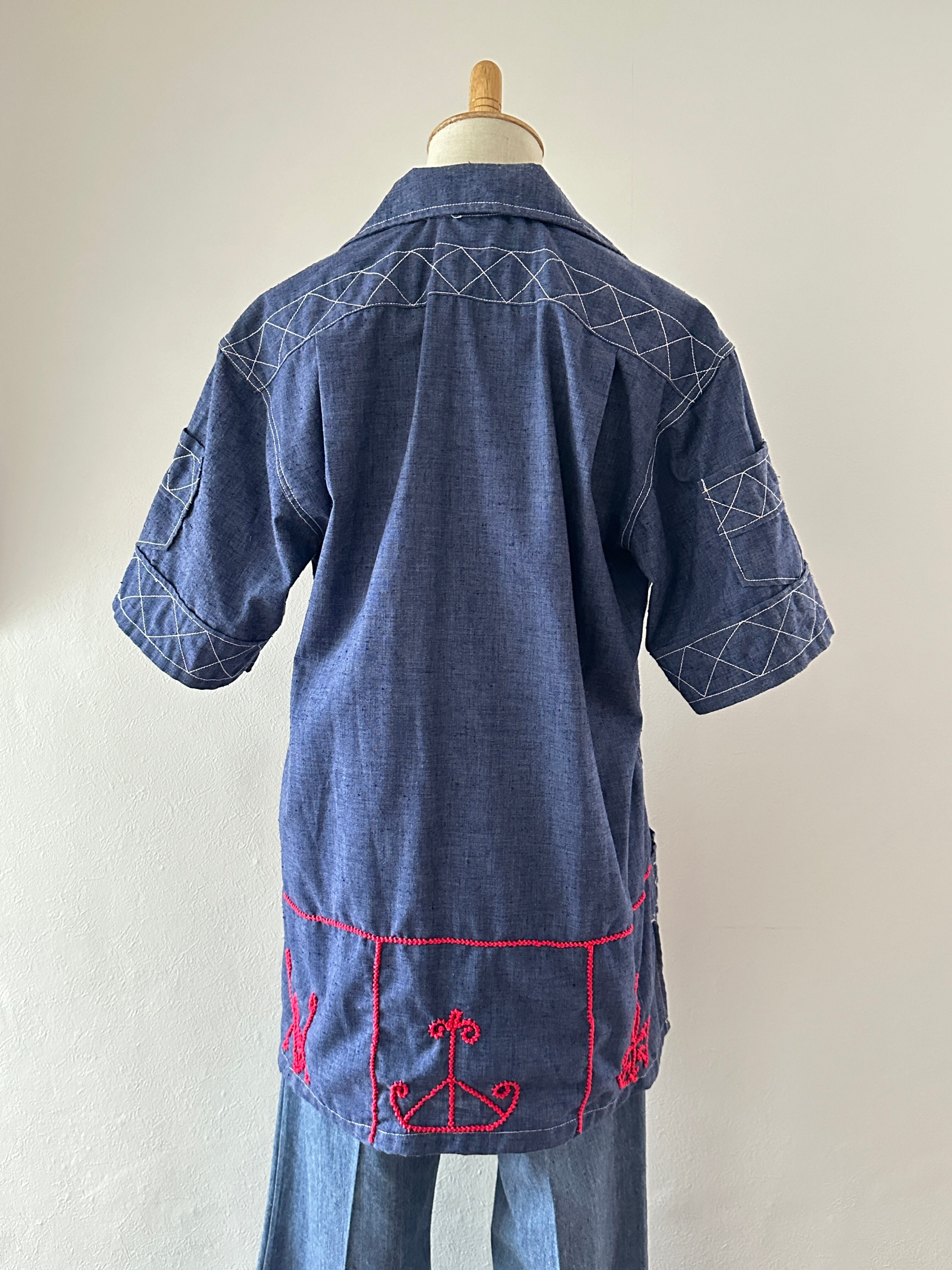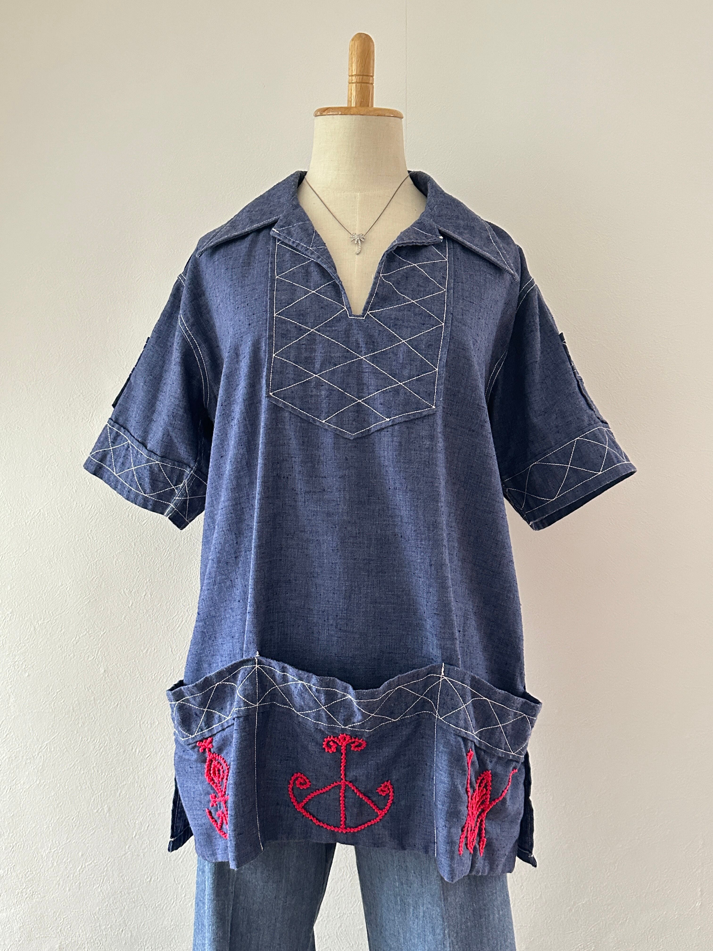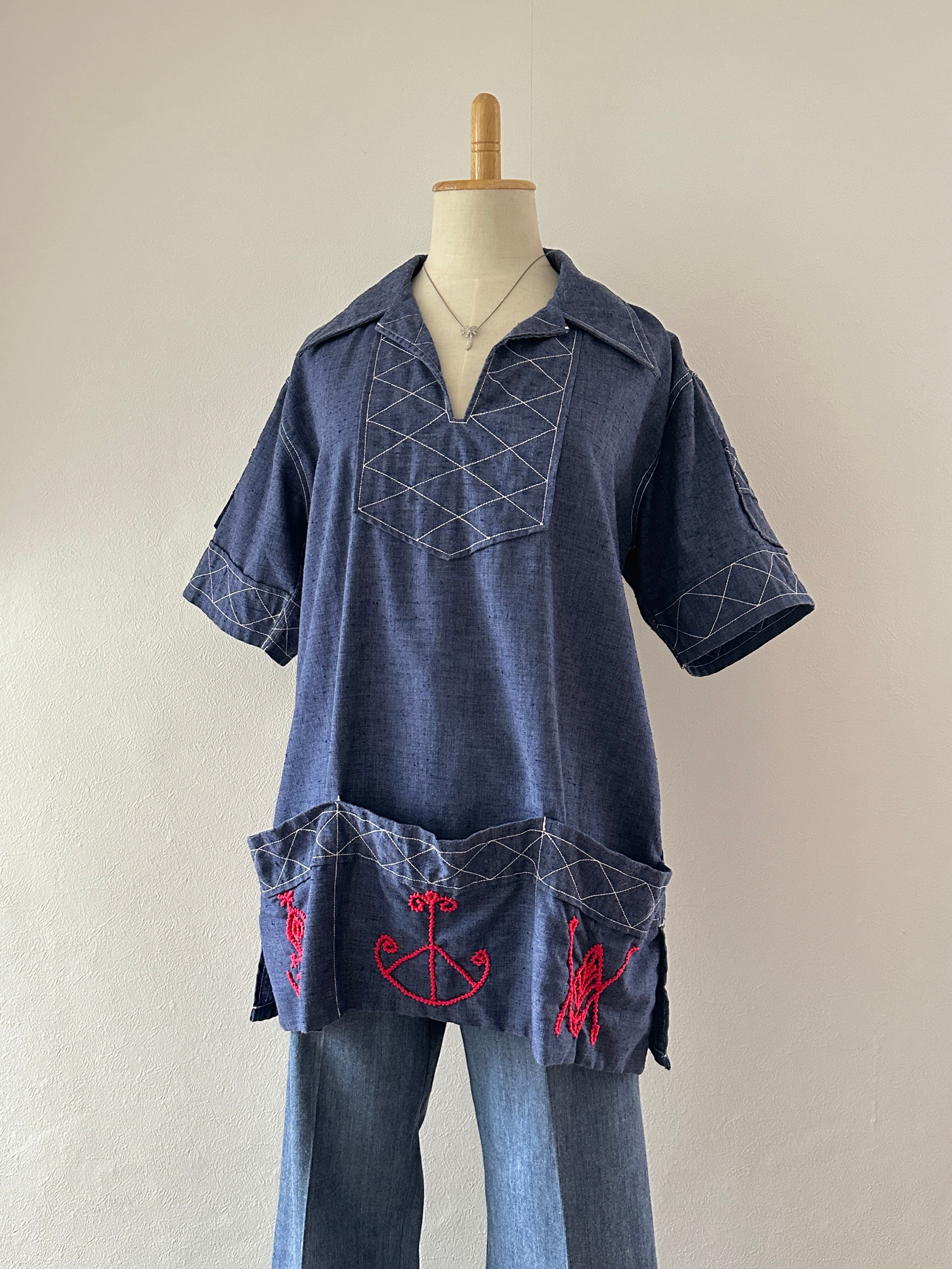 70's many pocket pullover half sleeve shirt