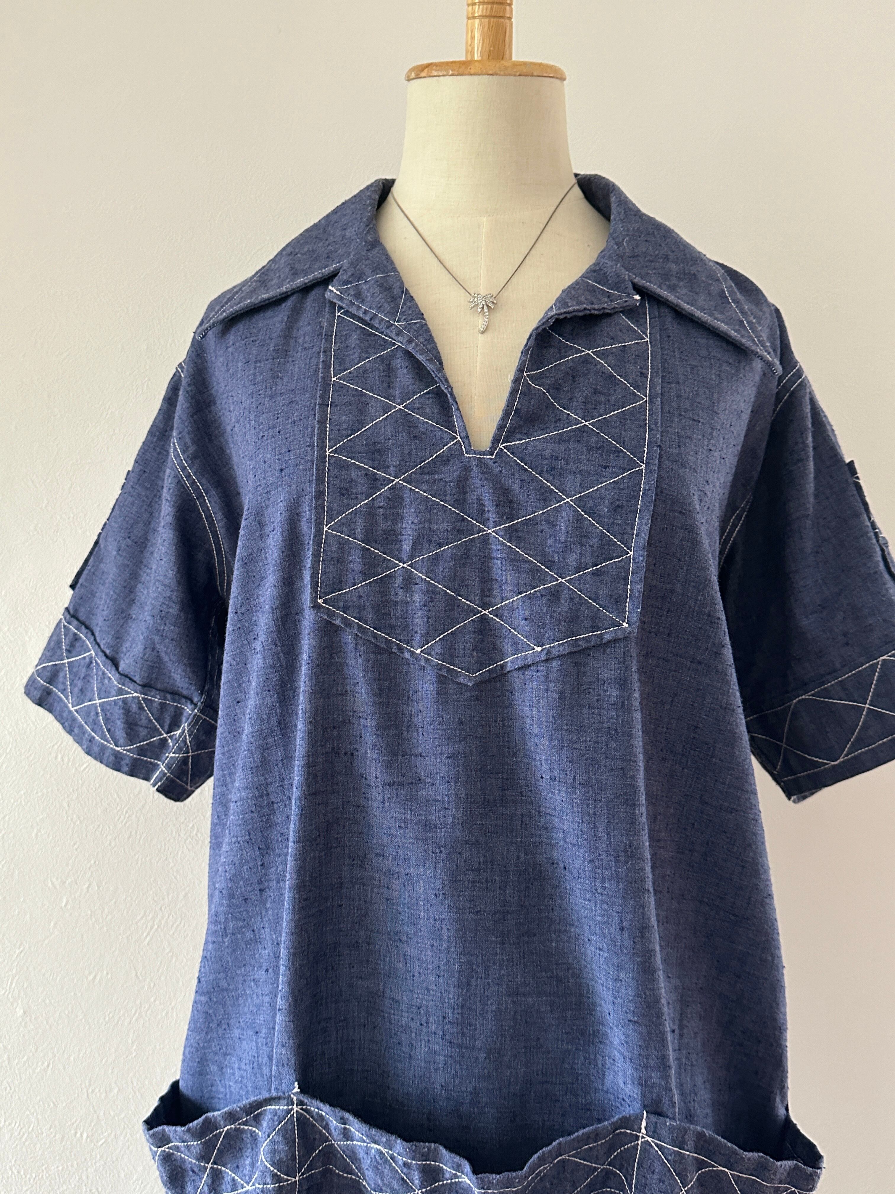 エプロンのように3つのポケットが並んでついている半袖シャツ。