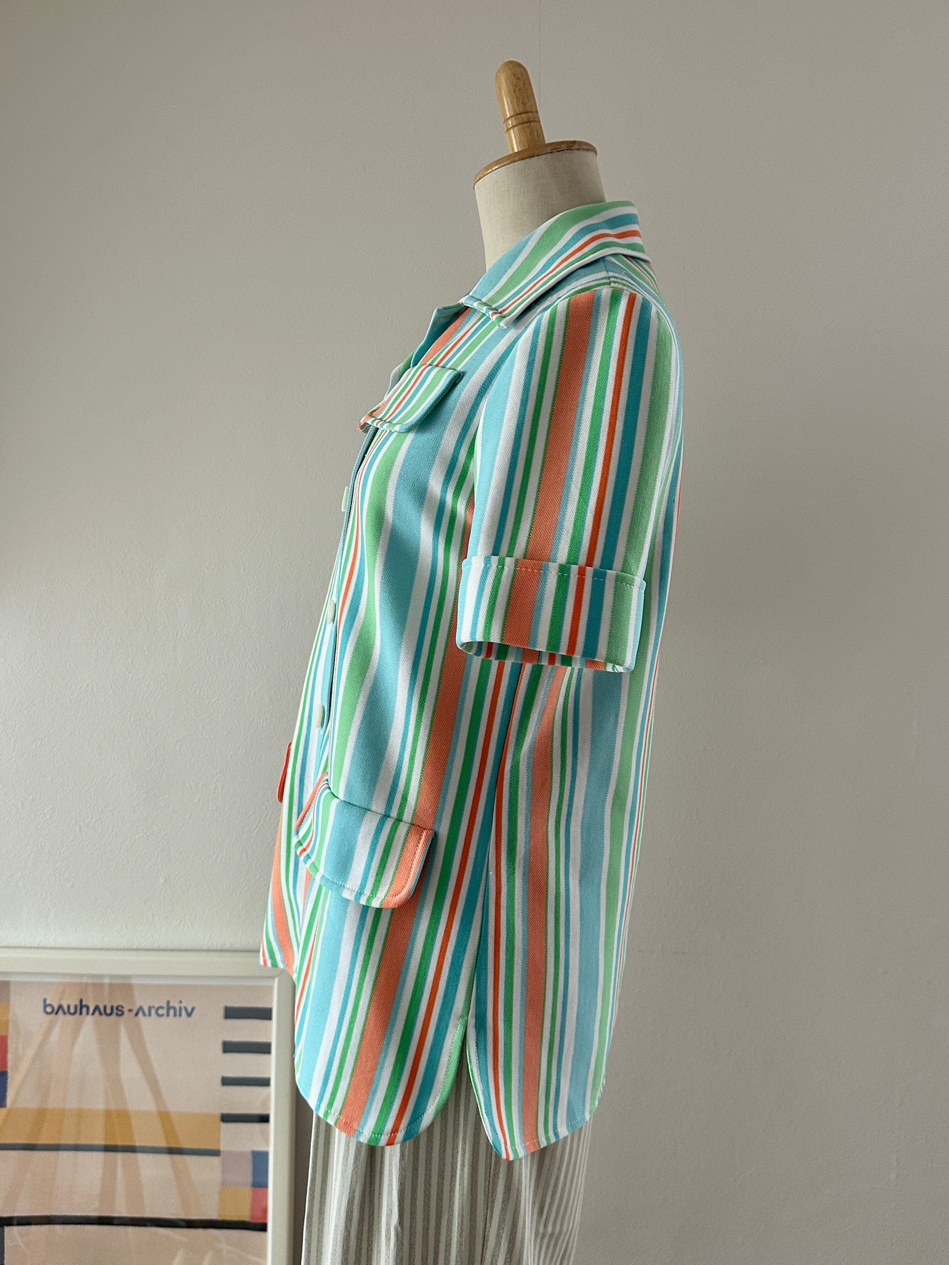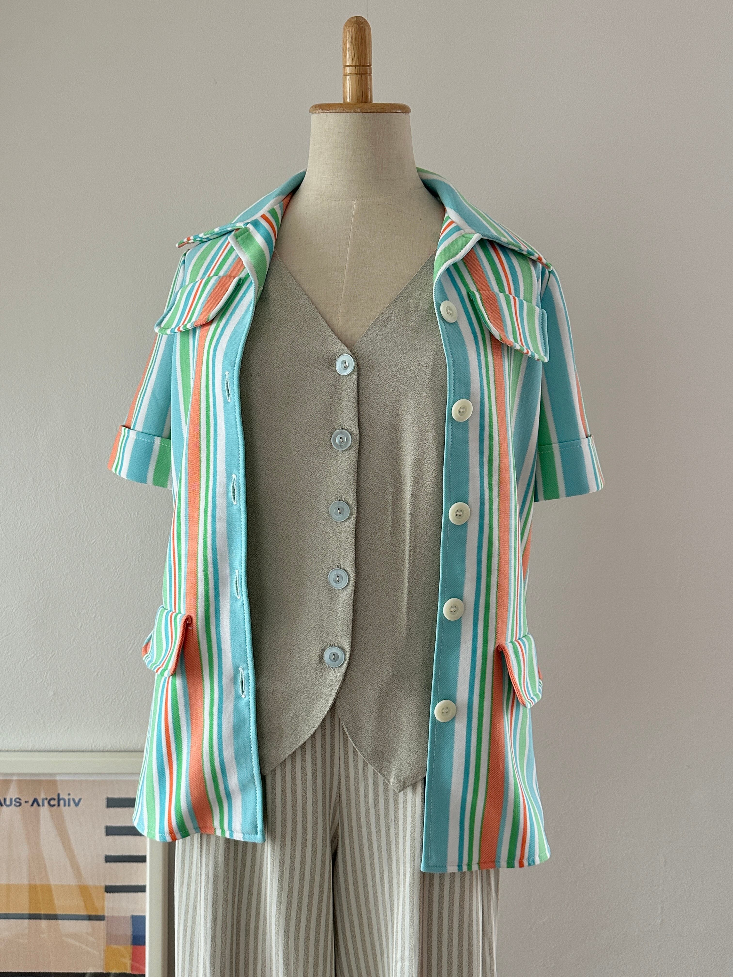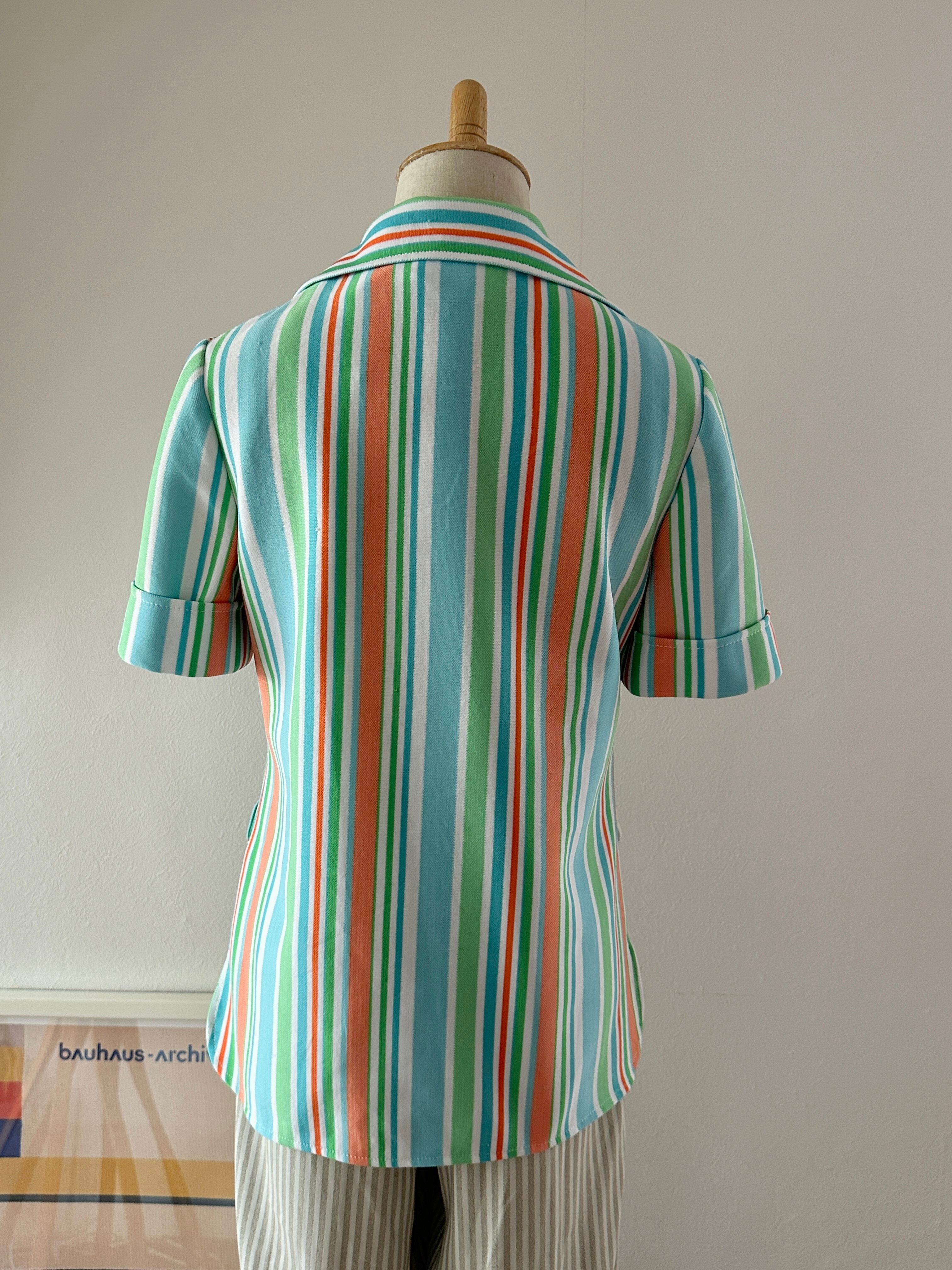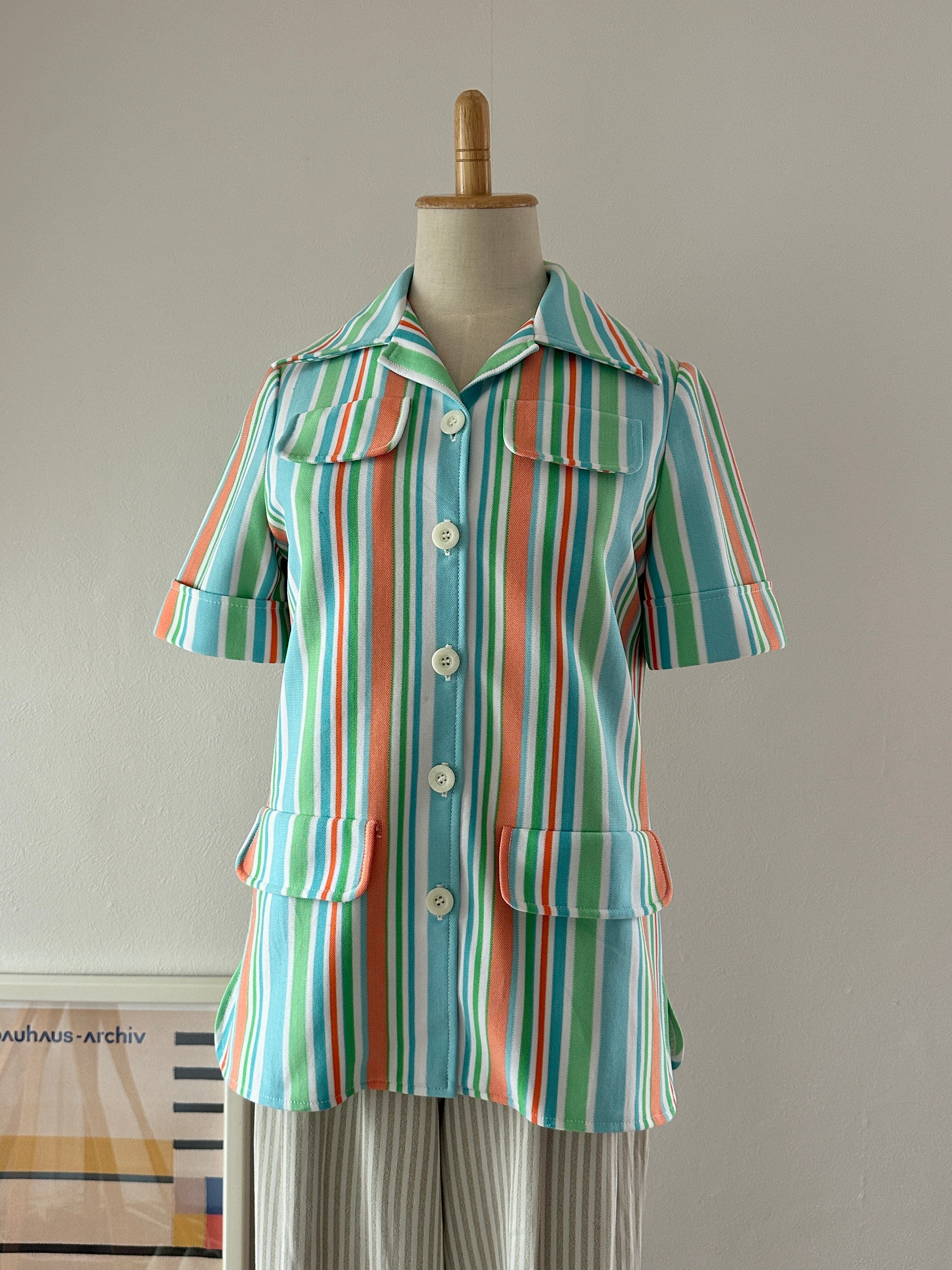 60's stripe polyester S/S shirt