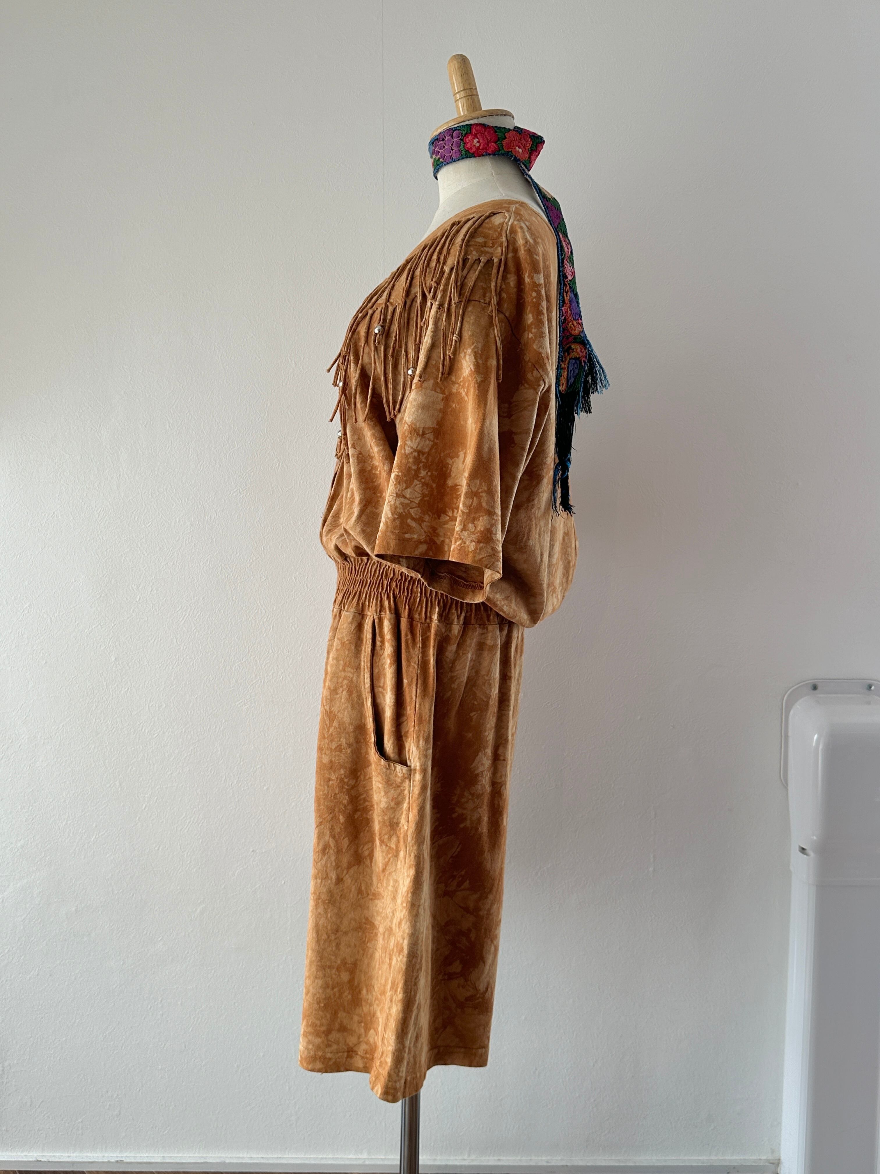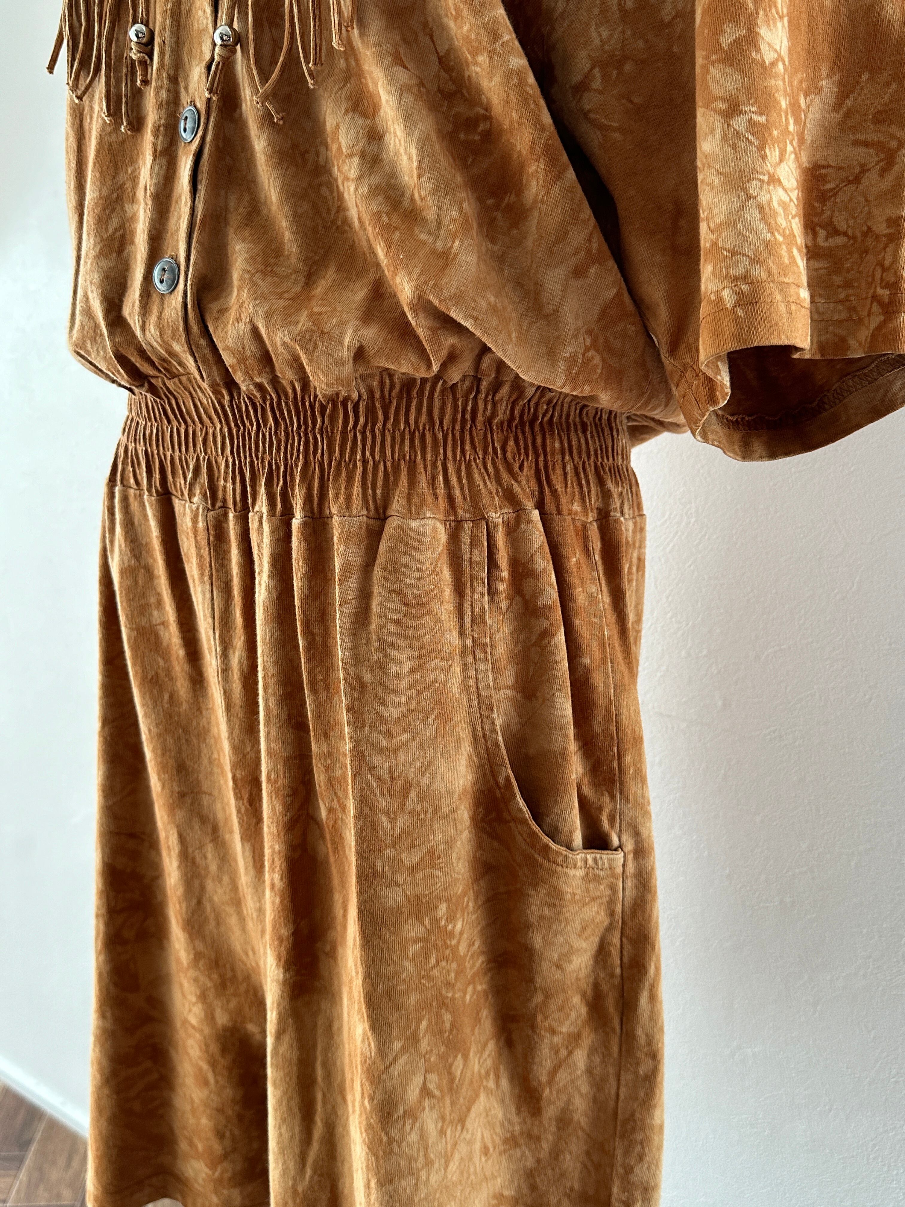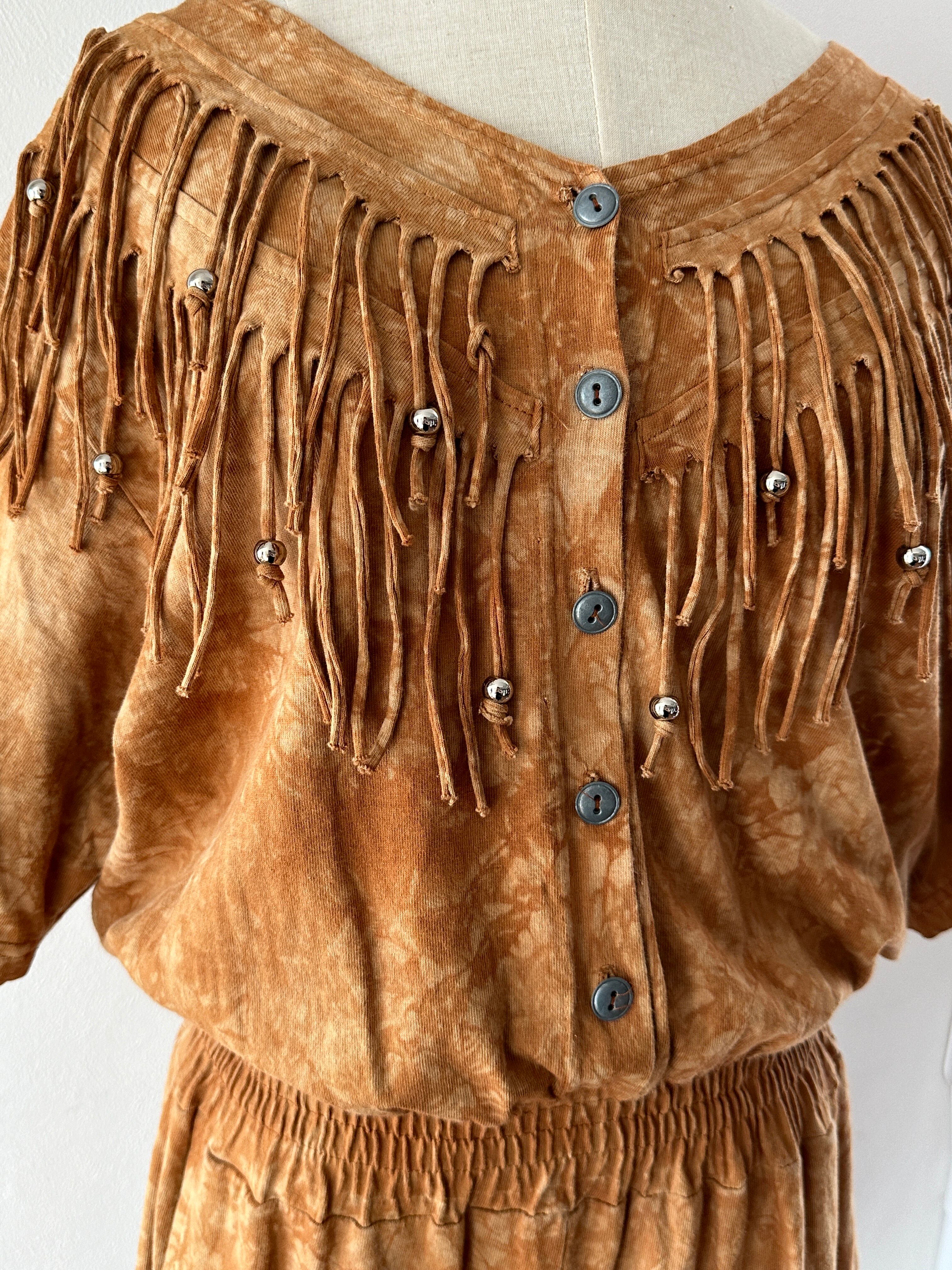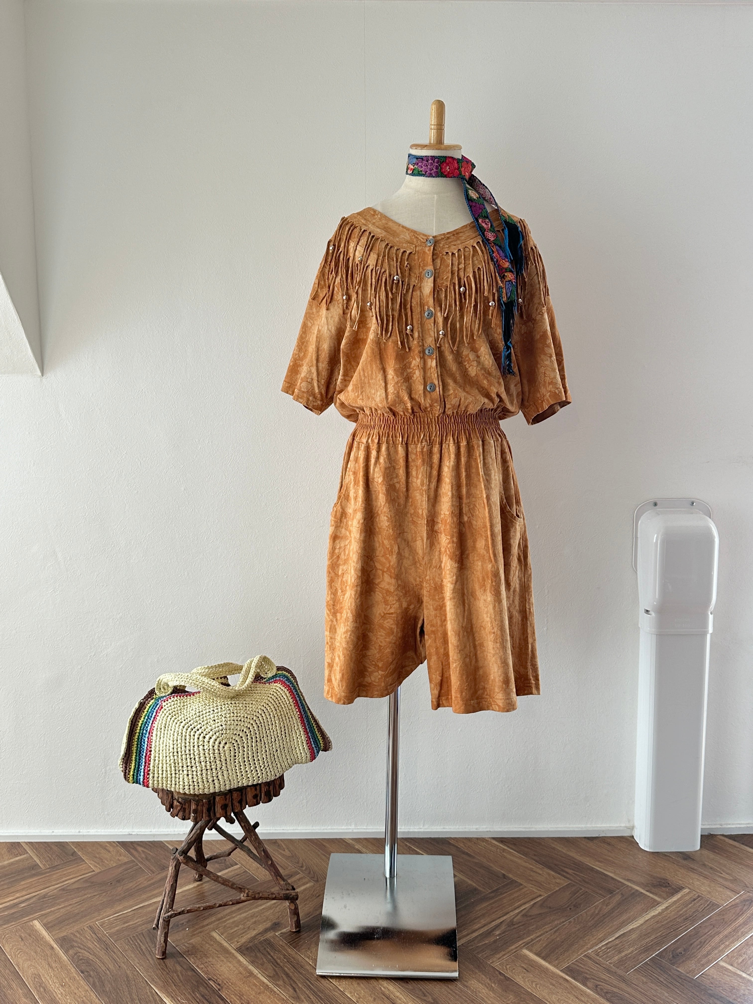 80's tie-dye fringe short jumpsuit
