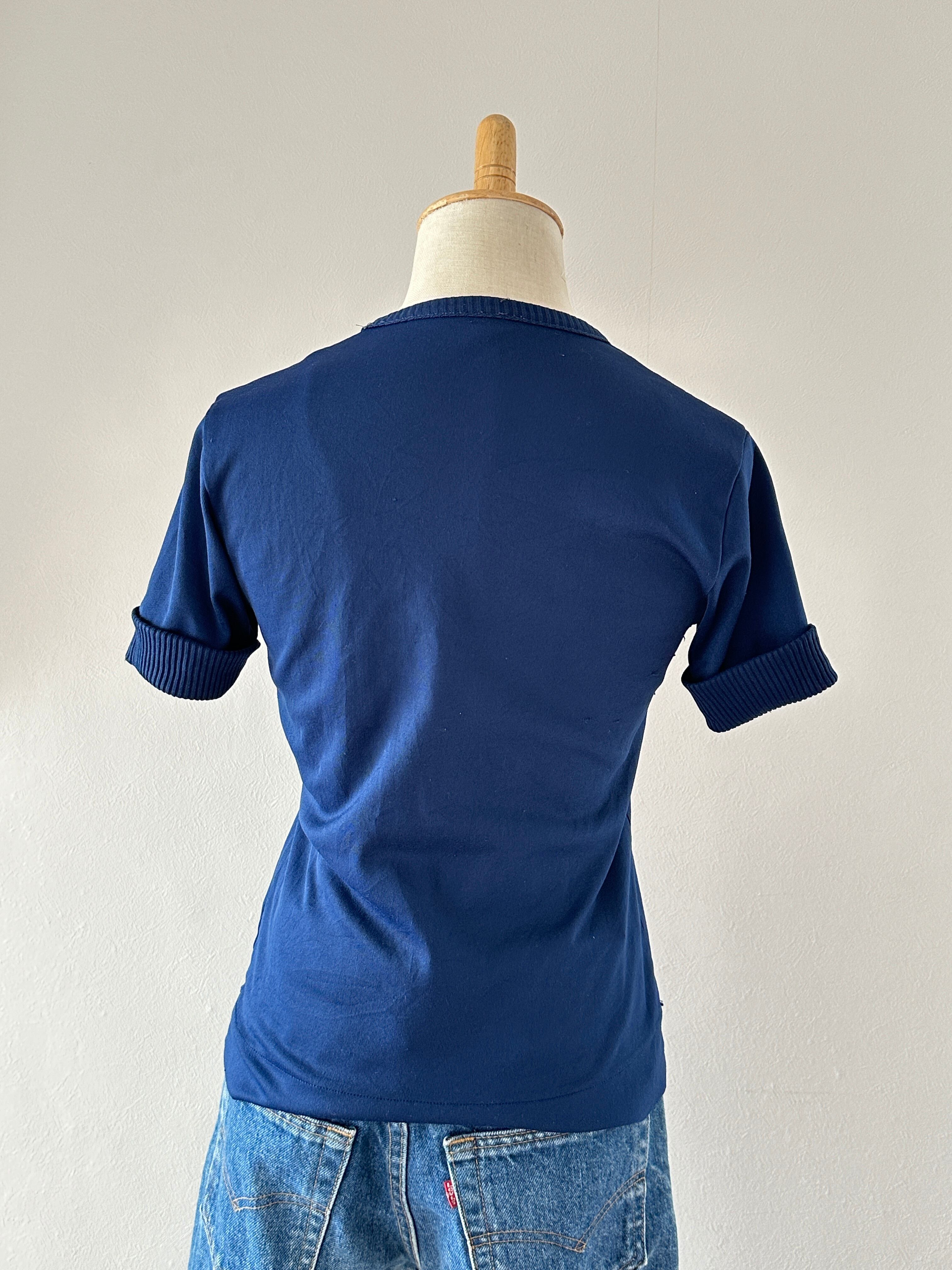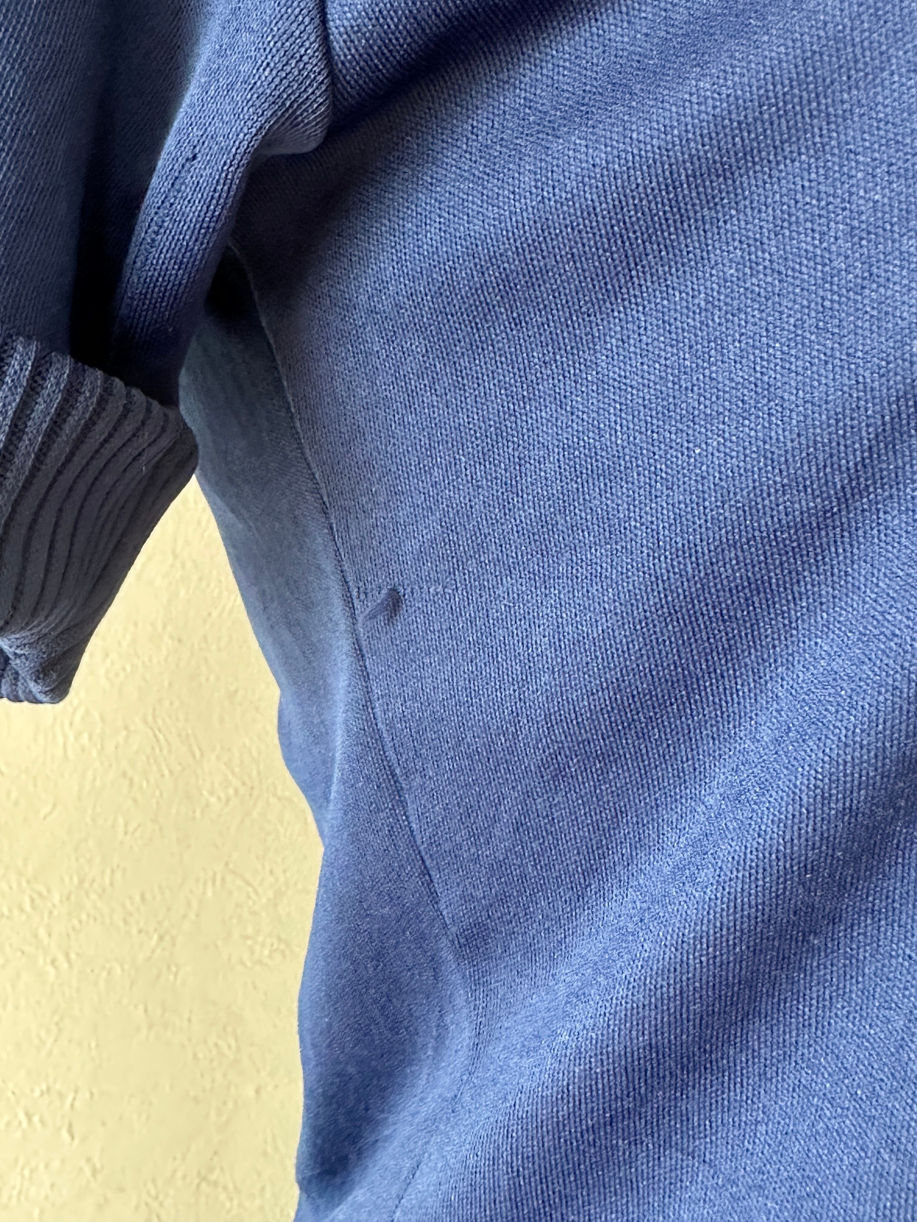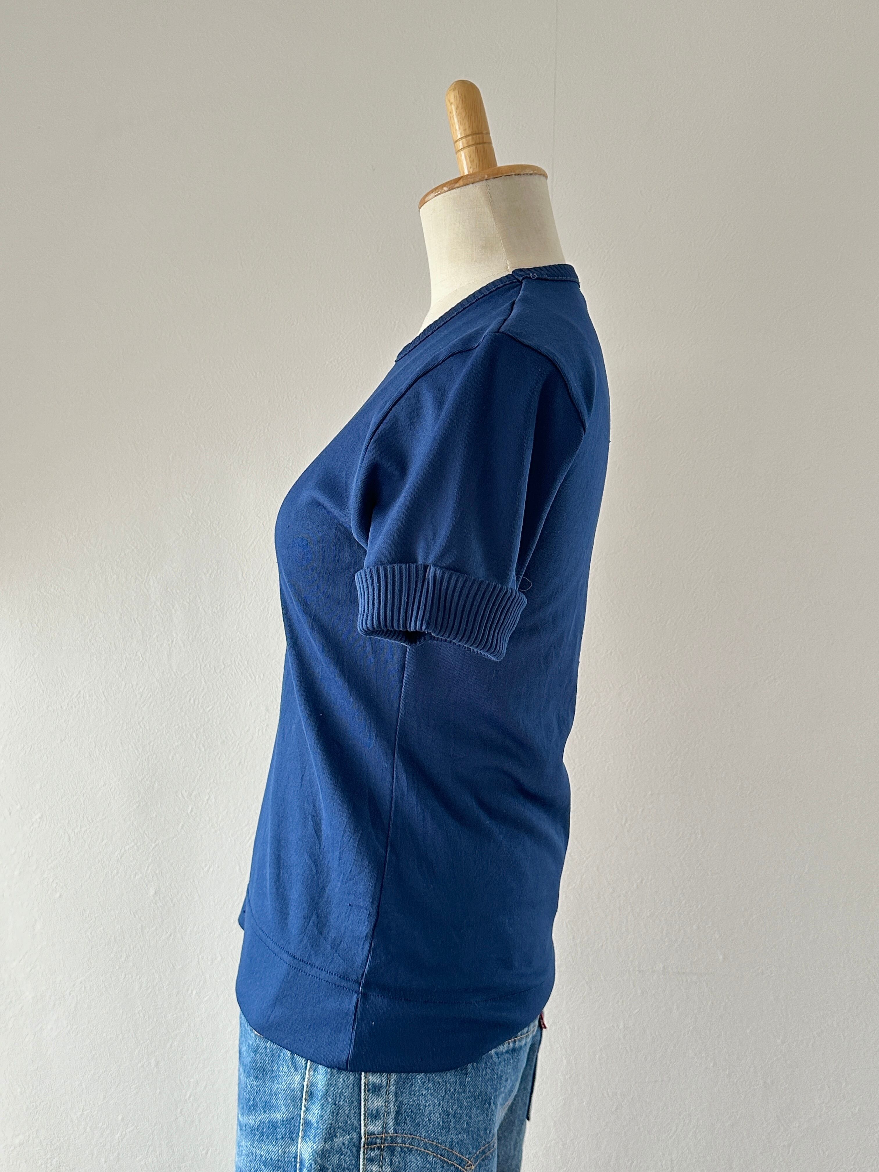 プレーンな中にもネックのあきや、袖口の折り返しリブ等ディテールの凝った一枚◎